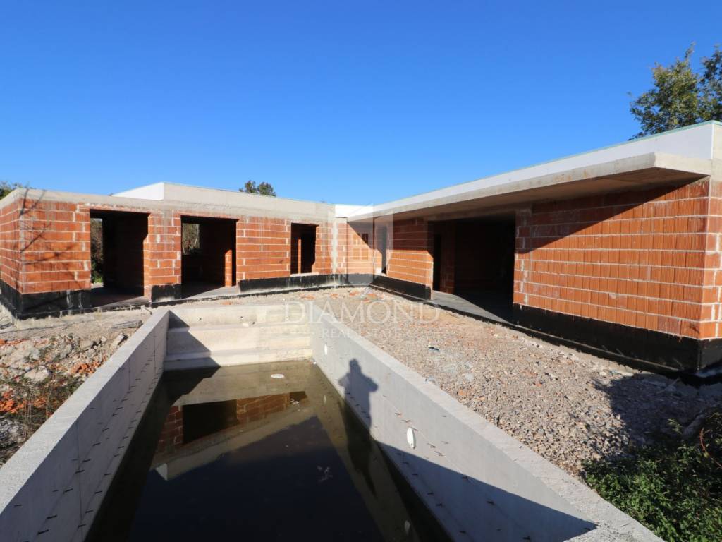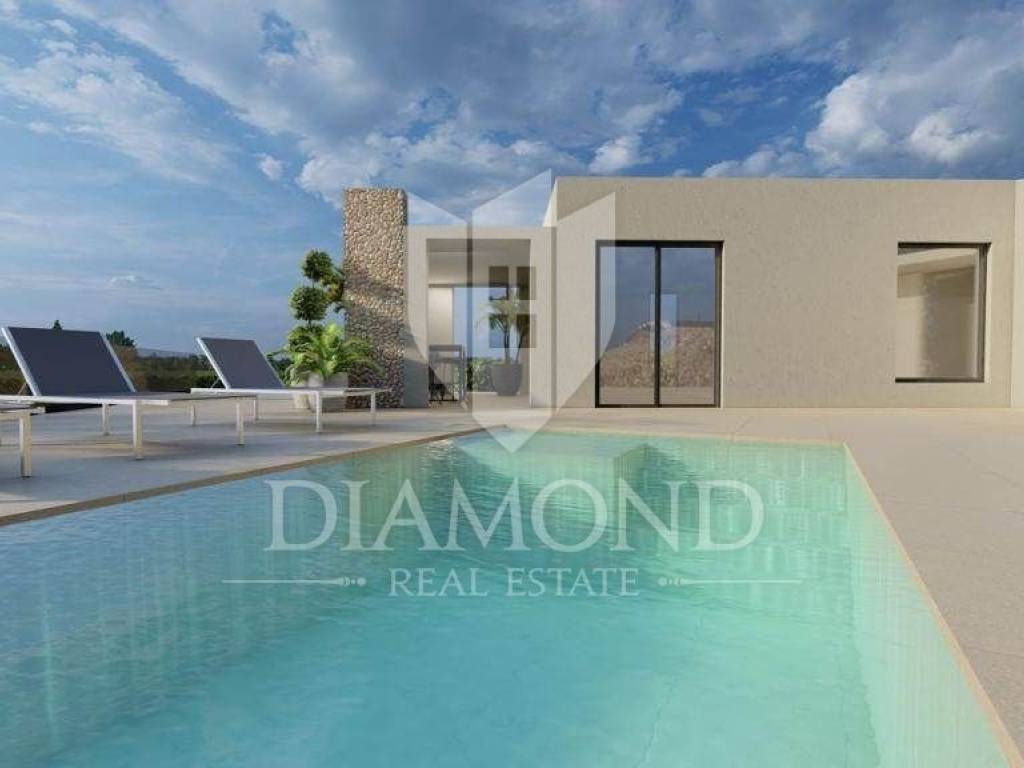 Labin, surroundings, newly built, holiday home with swimming pool in a beautiful location. The ground floor of a modern design has a total square footage of 142 m2 and consists of three bedrooms, two bathrooms, a technical room, a storage room and a spacious living area that combines the kitchen, dining room and living room with access to a covered terrace. The house is sold completely finished with a landscaped yard and without furniture, which leaves the new owner to choose the interior decoration and furnishing of the property according to his own wishes and tastes. The issue of heating and cooling is solved with air conditioners installed in all rooms, and floor heating is installed throughout the entire property, which allows for a pleasant stay in this property throughout the year. The spacious 974 m2 garden is fenced and landscaped with secured parking spaces, beautiful green areas, and the crown of the garden is certainly the 28 m2 swimming pool with an arranged sunbathing area. There is also a summer kitchen and a dining area with a view of the pool and garden. The location of this property offers perfect privacy and peace, it is located on the edge of a small newly built settlement with a beautiful view of the surrounding forest landscape and the mountain Učka. It is also well connected by road, it is located only 8 kilometers from the center of Labin, where there are all the facilities necessary for life, while the first beach in Rabac is 13 kilometers away. The first shop, restaurant and cafe are located even closer, only a 5-minute drive away. This very high-quality property in a top location represents an excellent opportunity for investment in the tourist rental business, but we can also imagine it as a luxurious family home within easy reach of all the necessary amenities for a permanent and quality life in the peace of beautiful green Istria.