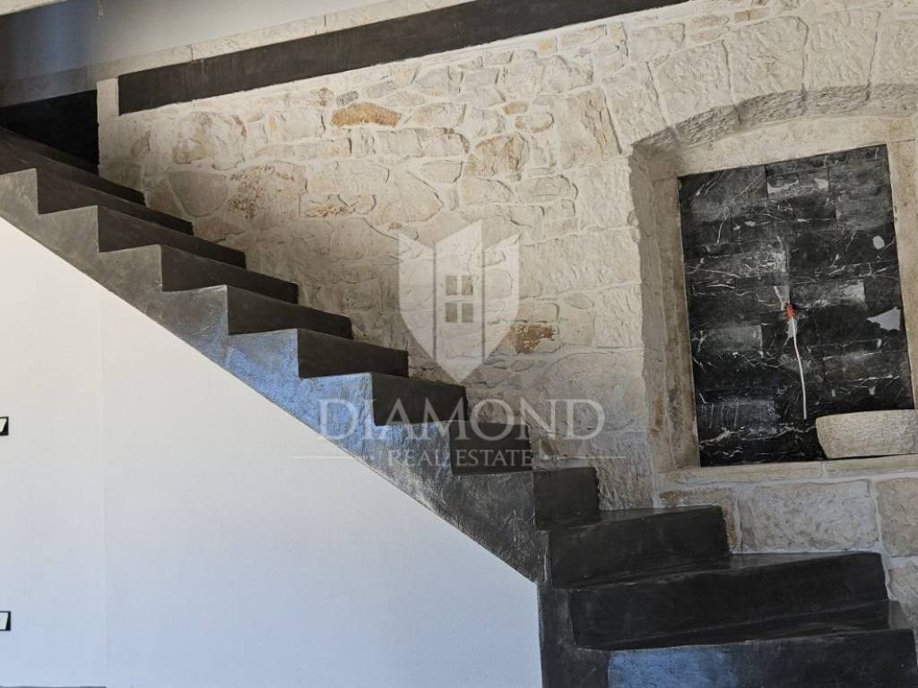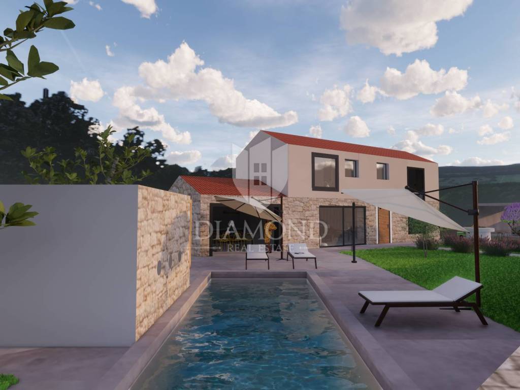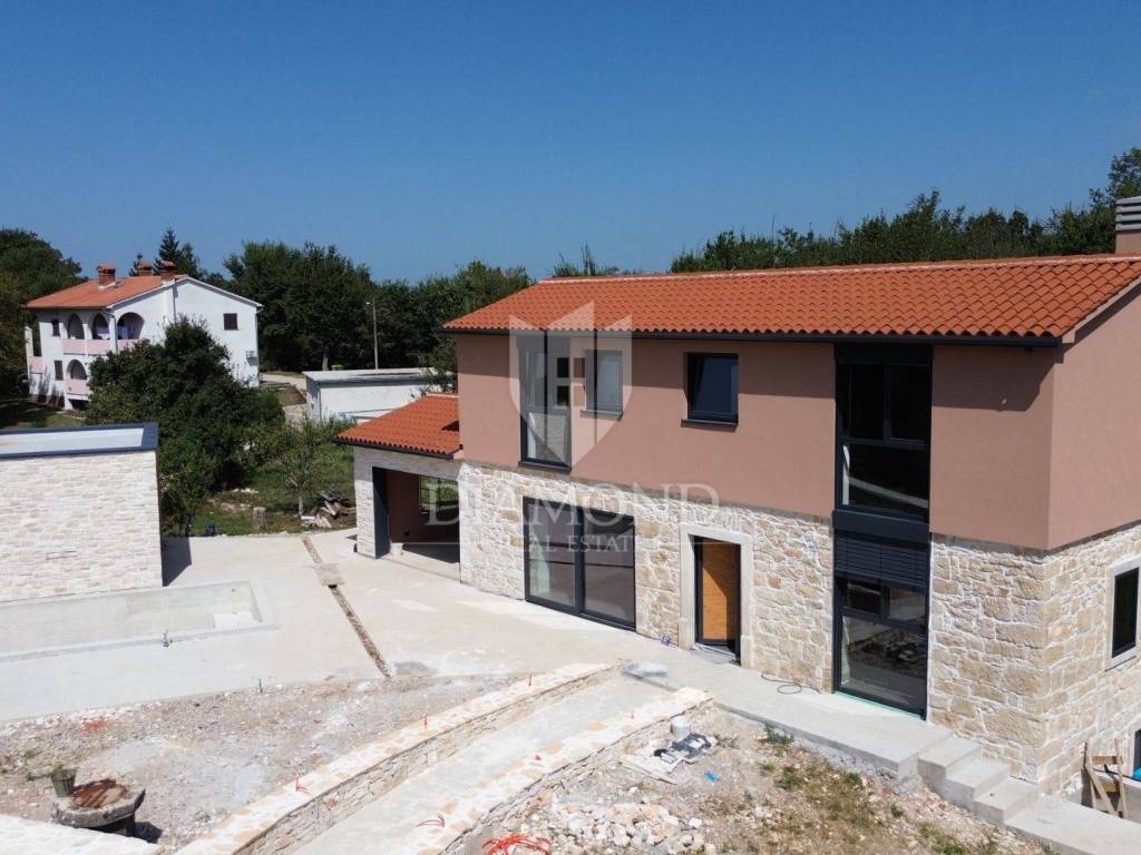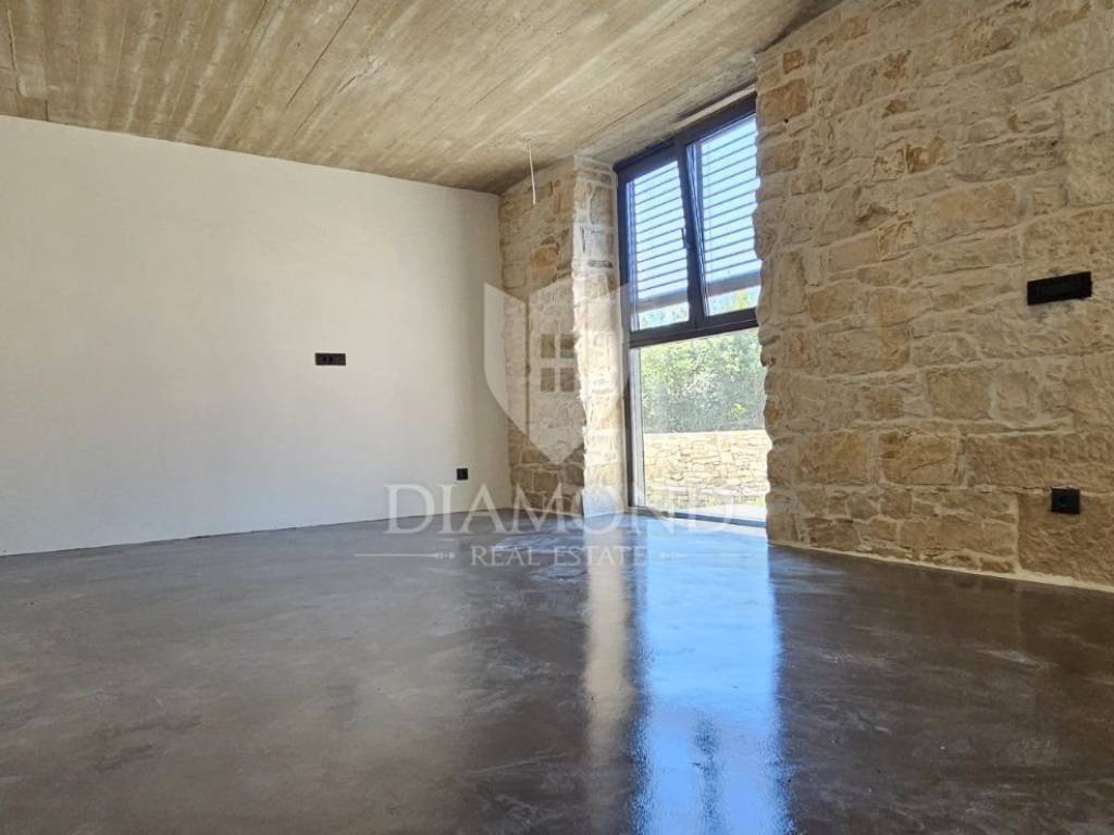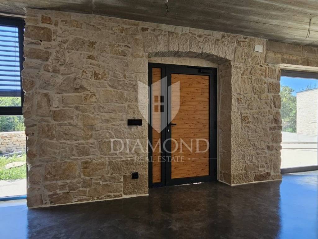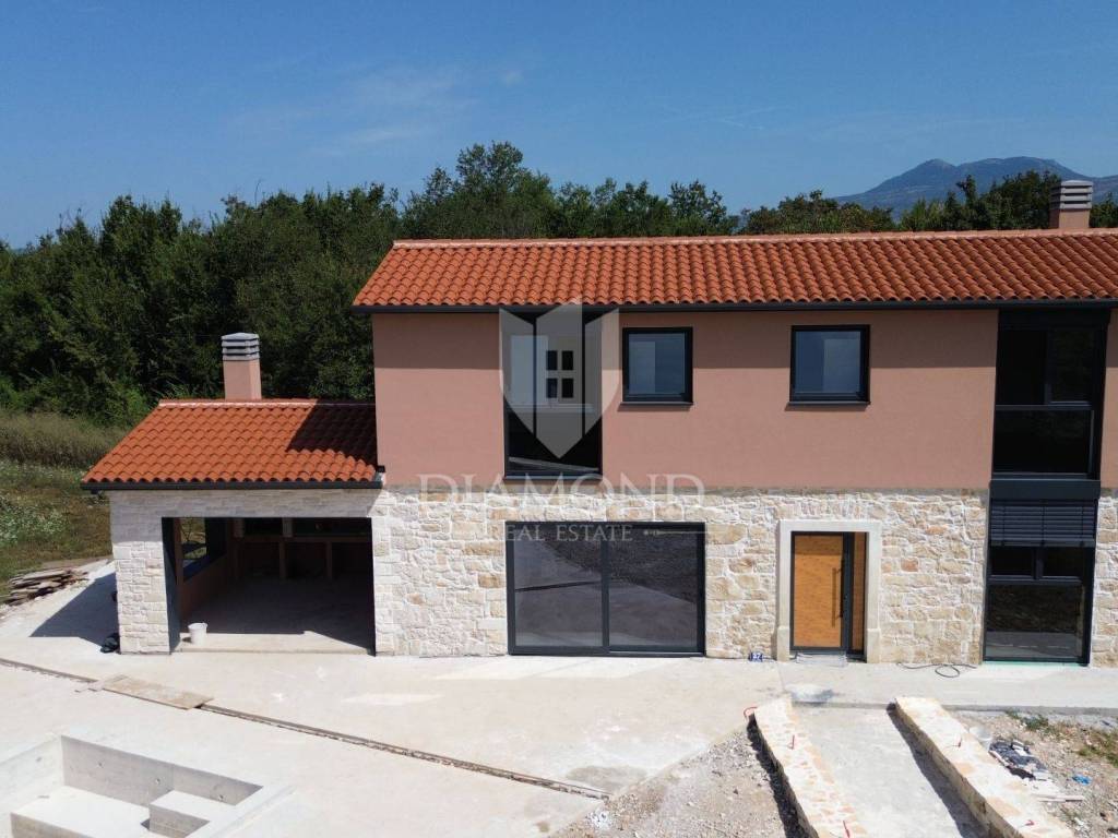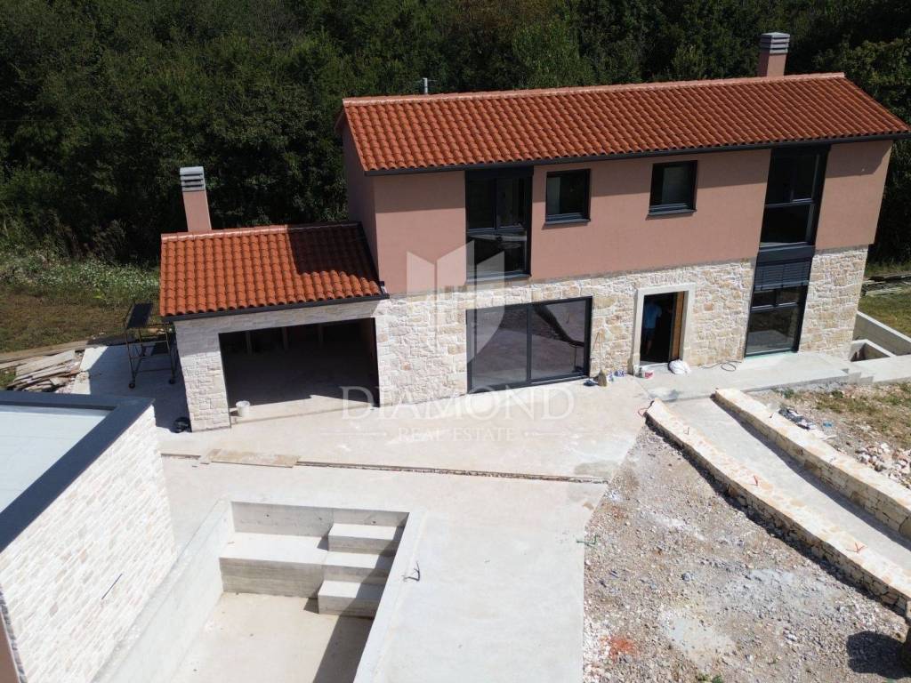 Labin, surroundings, new stone construction with a modern look Here is an opportunity to own an incredible Istrian stone house, renovated and upgraded with love and attention by a renowned architectural studio. This unique property shines with a combination of traditional Istrian charm and modern design. It is located in a quiet location near Labin, providing the perfect place to relax and enjoy privacy. This villa offers a comfortable and luxurious living space, with a spacious open space area that includes a kitchen, dining room and living room. On the first floor there are two spacious bedrooms, each with its own bathroom, providing comfort and intimacy. A special addition is the frameless sliding rocks that open the space to the outside, creating a feeling of connection with nature. The villa also comes with an outdoor summer kitchen, perfect for socializing and having fun outdoors, as well as a sauna area and a wonderful pool, ideal for refreshment and relaxation. All this is located on a spacious plot of 1295 m2 with a beautiful Istrian barn as an additional artistic detail. Do not miss the opportunity to become the owner of this beautiful Istrian stone villa. Contact us today to find out more and arrange a viewing.