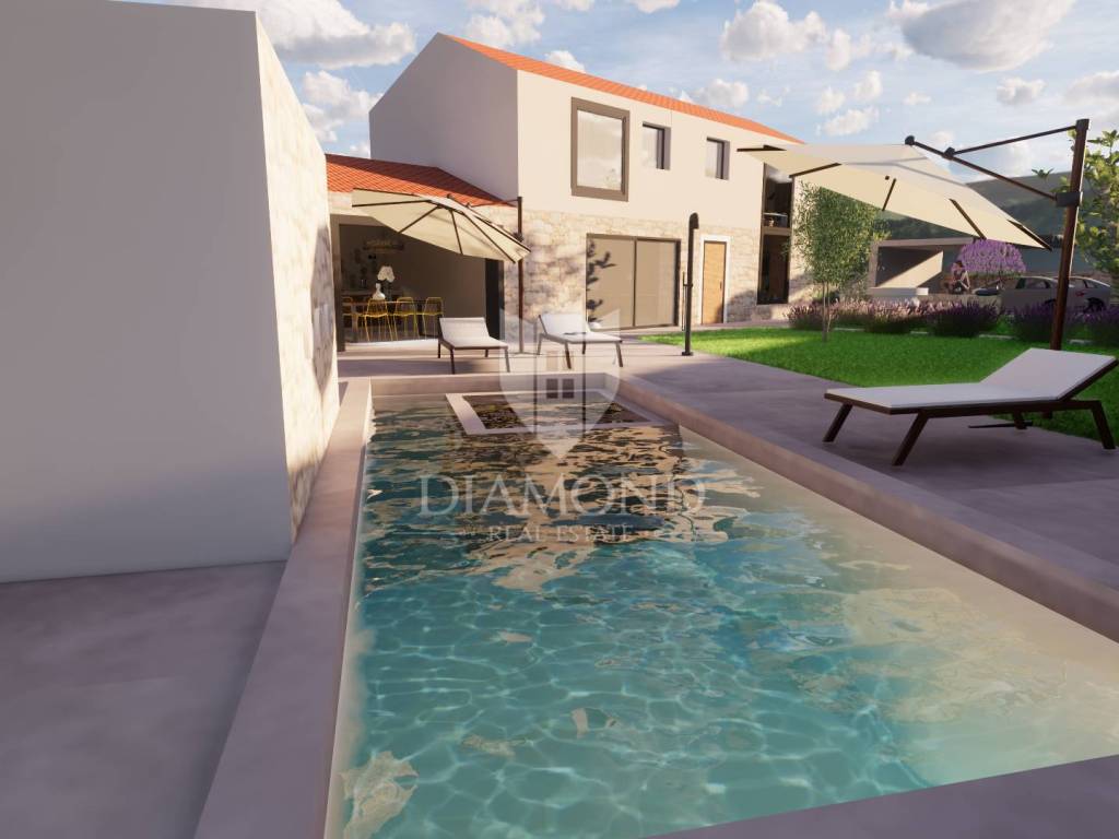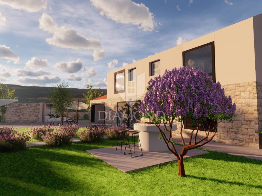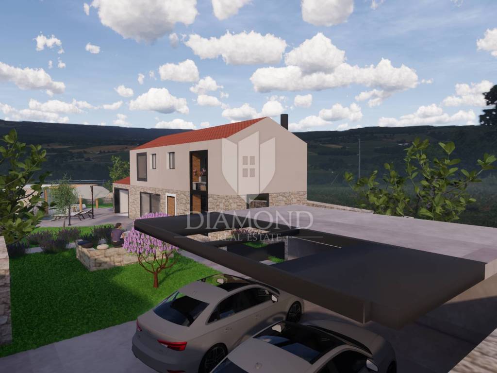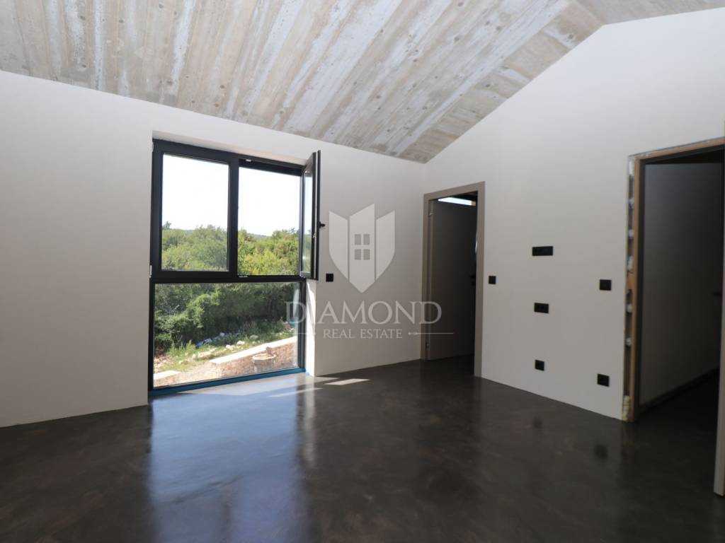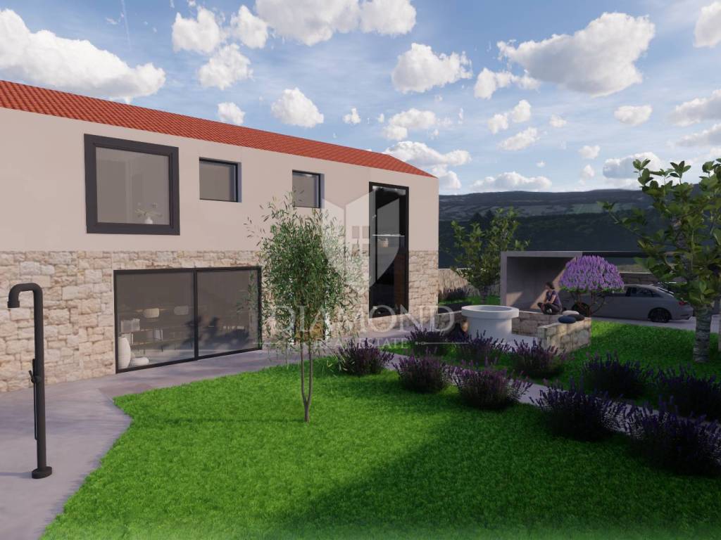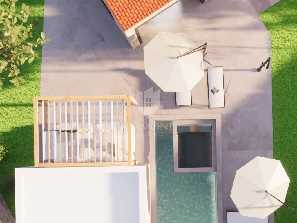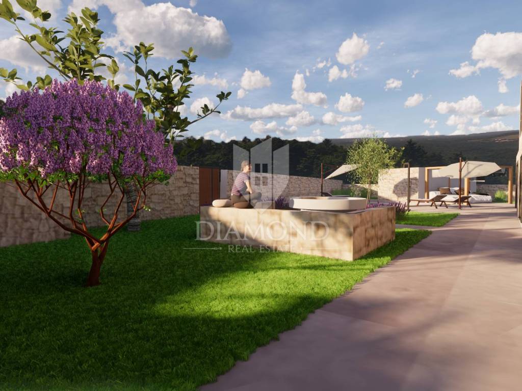 Labin, surroundings, new stone construction with a modern look Here is an opportunity to own an incredible Istrian stone house, renovated and upgraded with love and attention by a renowned architectural studio. This unique property shines with a combination of traditional Istrian charm and modern design. It is located in a quiet location near Labin, providing the perfect place to relax and enjoy privacy. This villa offers a comfortable and luxurious living space, with a spacious open space area that includes a kitchen, dining room and living room. On the first floor there are two spacious bedrooms, each with its own bathroom, providing comfort and intimacy. A special addition is the frameless sliding rocks that open the space to the outside, creating a feeling of connection with nature. The villa also comes with an outdoor summer kitchen, perfect for socializing and having fun outdoors, as well as a sauna area and a wonderful pool, ideal for refreshment and relaxation. All this is located on a spacious plot of 1295 m2 with a beautiful Istrian barn as an additional artistic detail. Do not miss the opportunity to become the owner of this beautiful Istrian stone villa. Contact us today to find out more and arrange a viewing.
