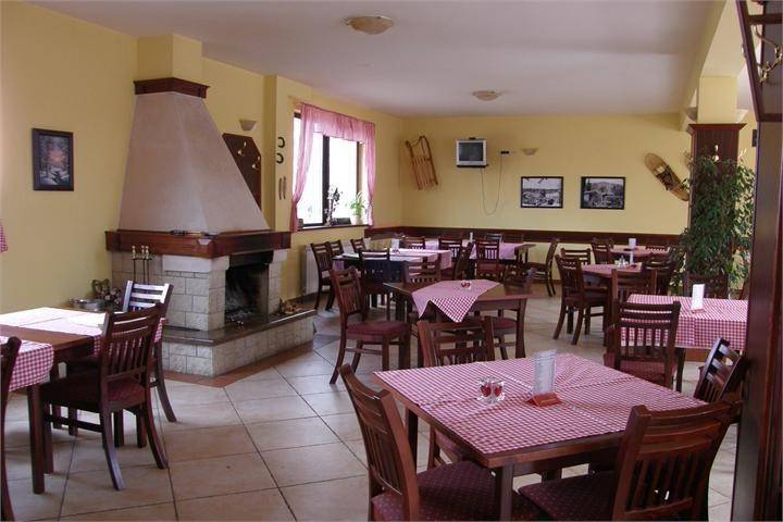 Na prvom katu zgrade nalazi se recepcija, kuhinja, toaleti za goste, restoran, vanjska natkrivena i velika otvorena terasa. Restoran je kapaciteta za cca 100 osoba u unutarnjem zatvorenom prostoru i nerijetko se u njemu osim obiteljskih, sportskih i poslovnih druženja održavaju i razne svečanosti. Dodatni veći kapacitet se nalazi na vanjskim terasama.