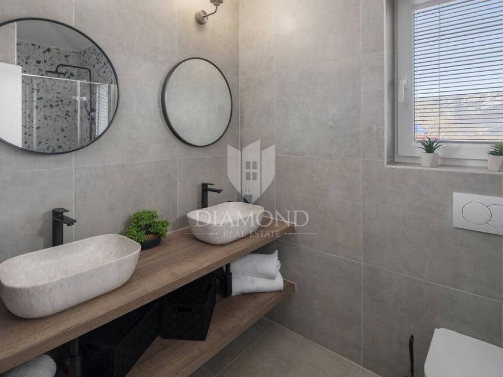 The villa is surrounded by beautiful relaxing greenery and untouched nature, and the concept and position of the house offer complete privacy and peace with a beautiful open view of the surrounding landscape and Mount Učka.