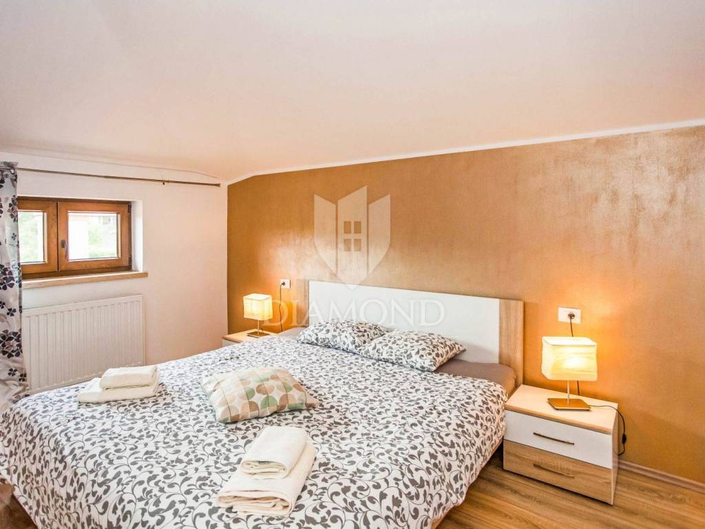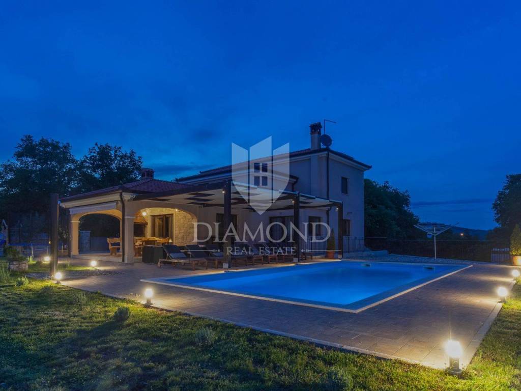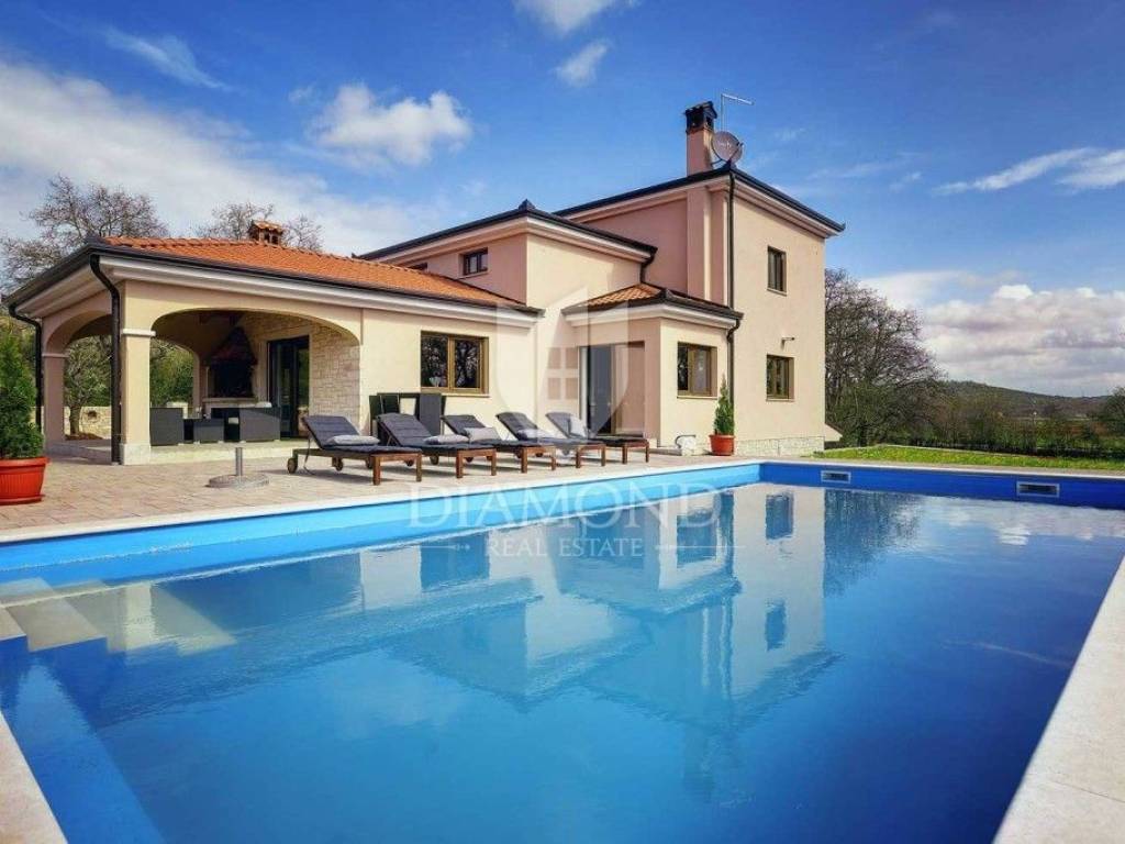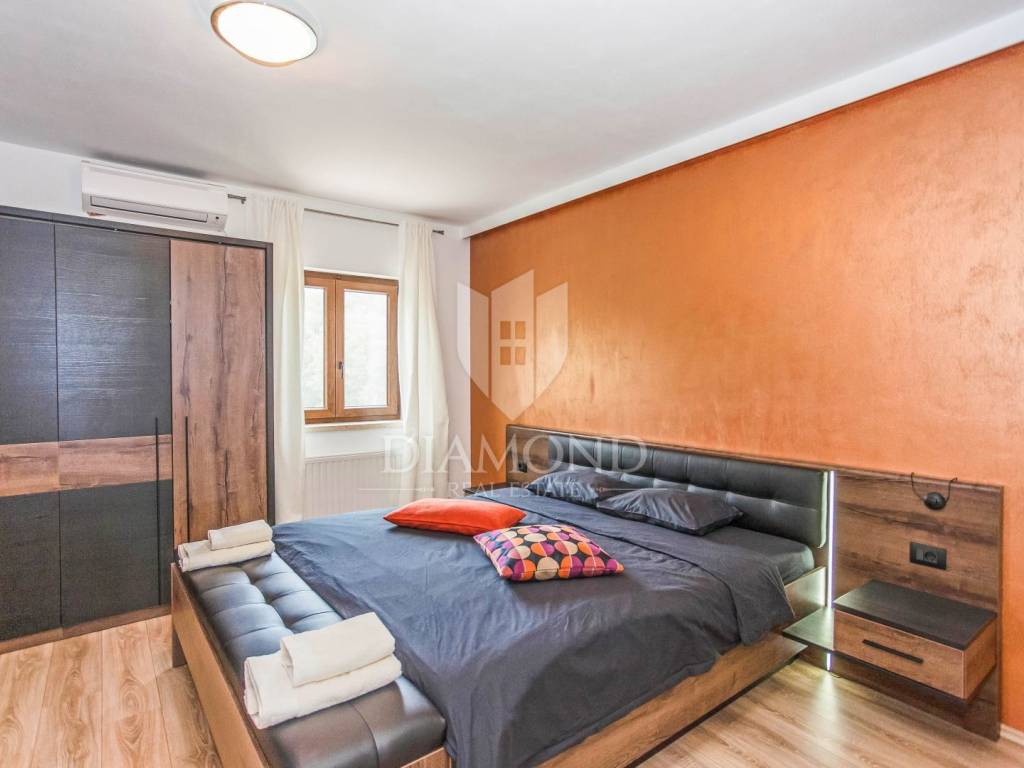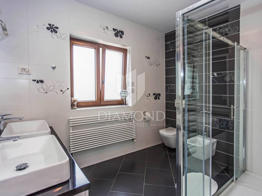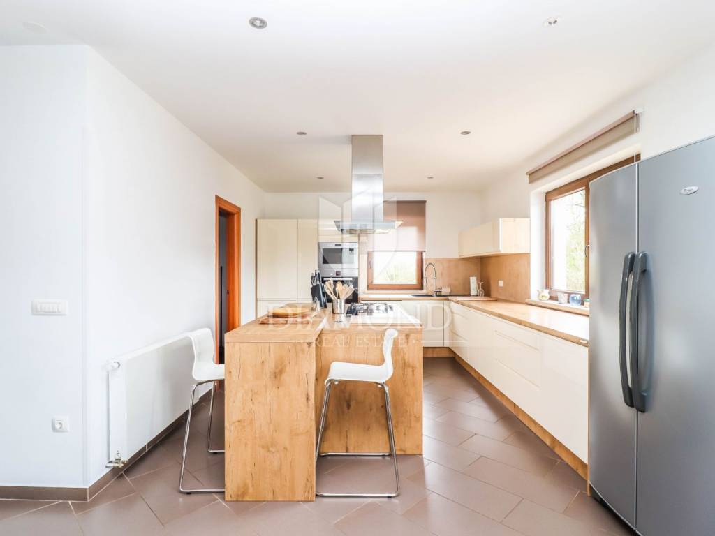 The house is located on a plot of 2500m2, which guarantees peace, and the house itself has 400m2 of living space divided into two floors and a basement. The ground floor has a living room that is in an open concept connected to the dining room and kitchen and pantry, one bedroom and bathroom. From each room in the living area there is a view of the pool and the beautiful garden. Upstairs, which is designed as a high attic, there are bedrooms with private bathrooms. Each room has its own air conditioning. The rooms are modernly decorated, with high quality furniture, appliances and toilets. In the basement there is a multipurpose room with a fireplace that is handmade in stone. Also, there is a laundry room and another small toilet. The yard and yard are arranged, the size of the plots was used to the maximum to make the greenery pleasing to the eye and to maintain privacy. The garage is located in the basement and can accommodate two vehicles.