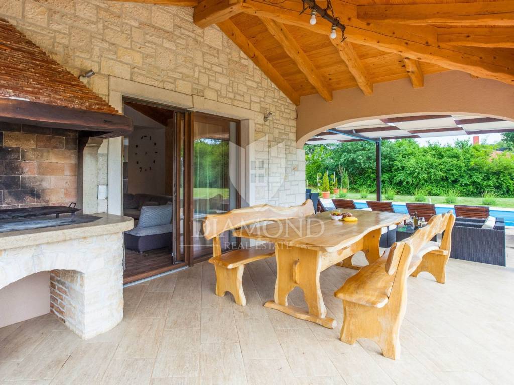 Not far from Rovinj, this beautiful detached holiday house decorated in a combination of rustic and modern style has found its place under the sun. It is located in a secluded area, but again close to all amenities needed for life such as shops, pharmacies and restaurants, while the city of Rovinj is 7 km away with its wide range.