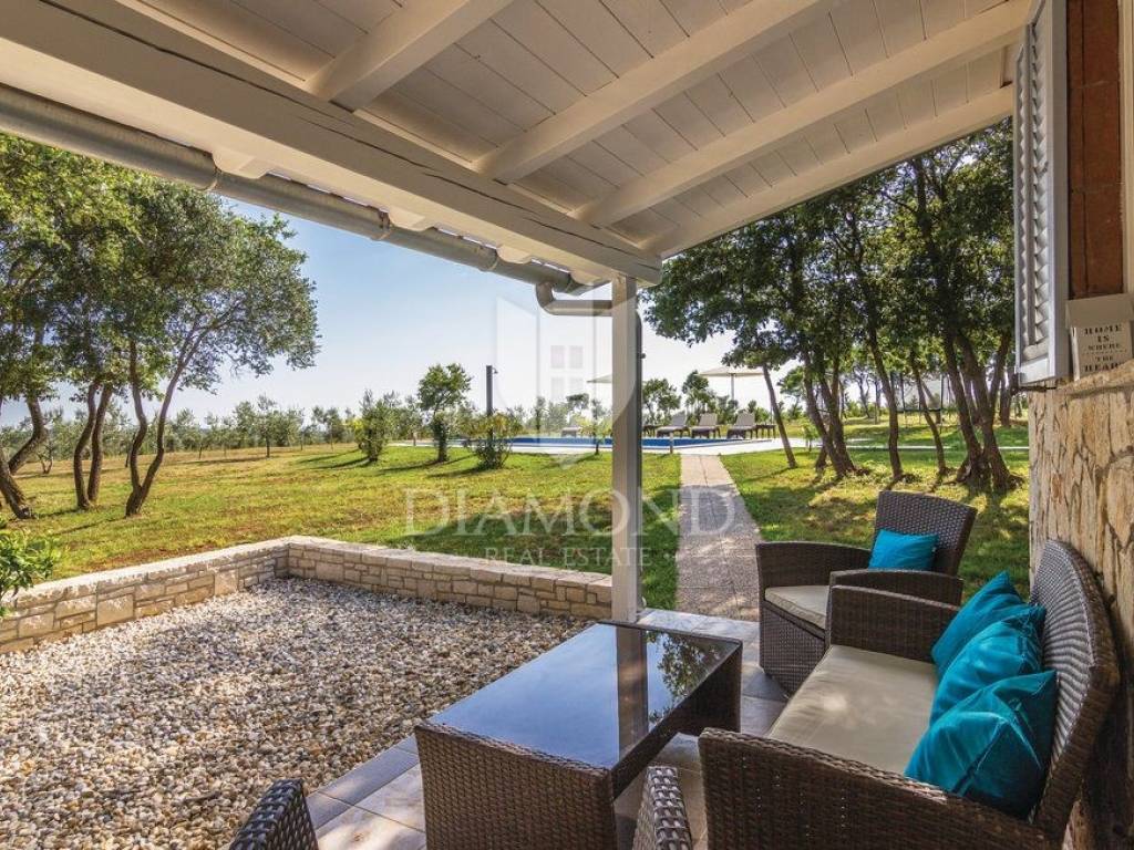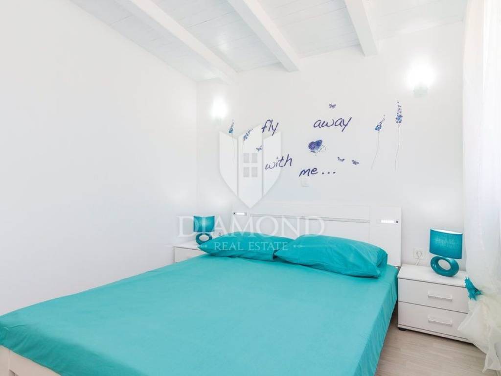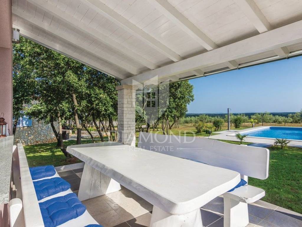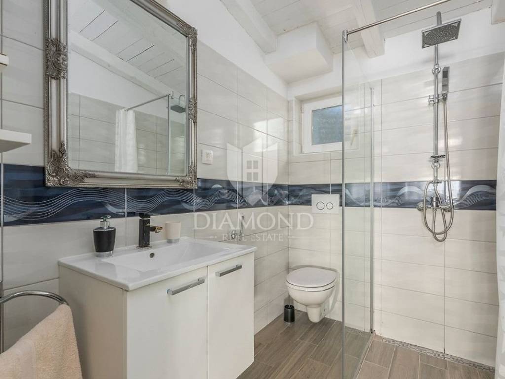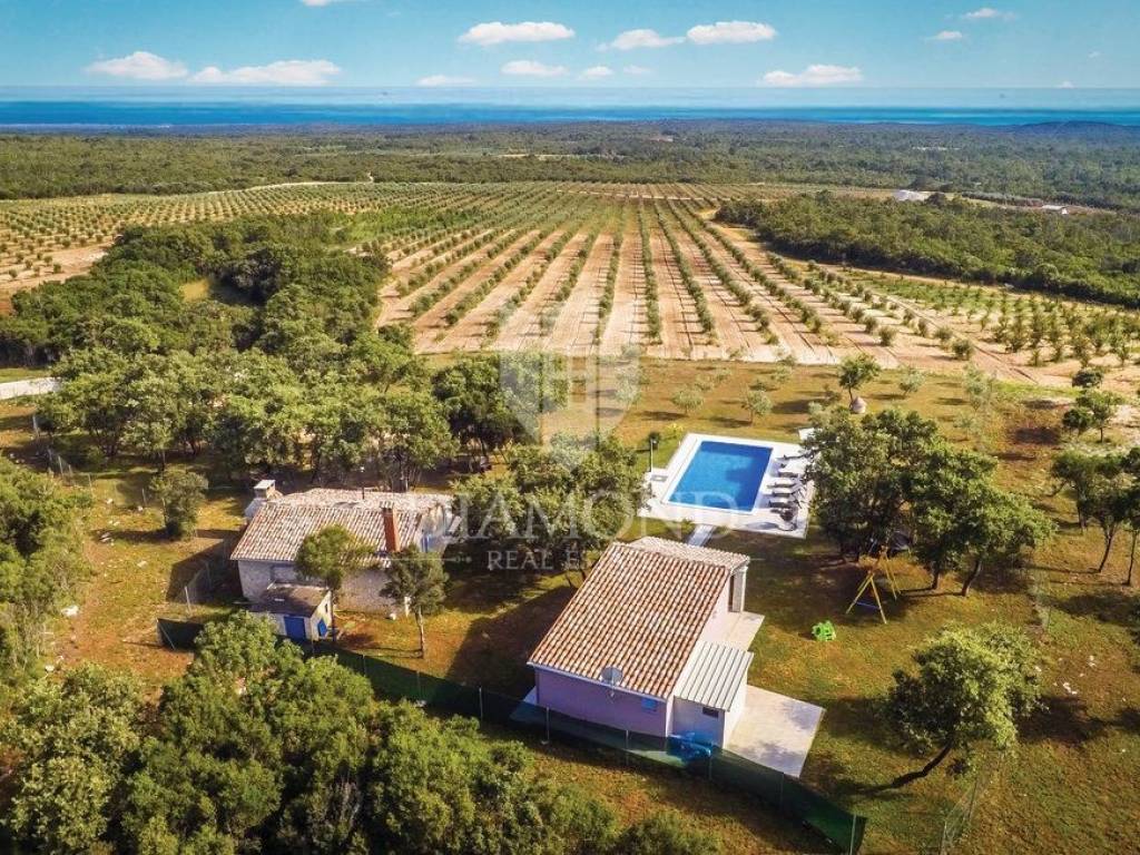 This property is located near the city of Rovinj, known for its title of champion of tourism and for the large number of visitors who come to see the old town center and the beautiful beaches that surround it. Its location is perfect, because it offers an escape from the hustle and bustle of the city, but only a few minutes' drive away are shops, post office, catering, school and kindergarten, and other facilities necessary for life.
