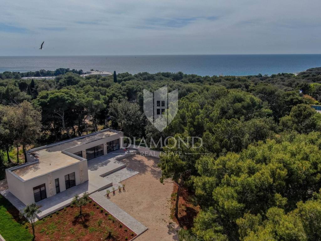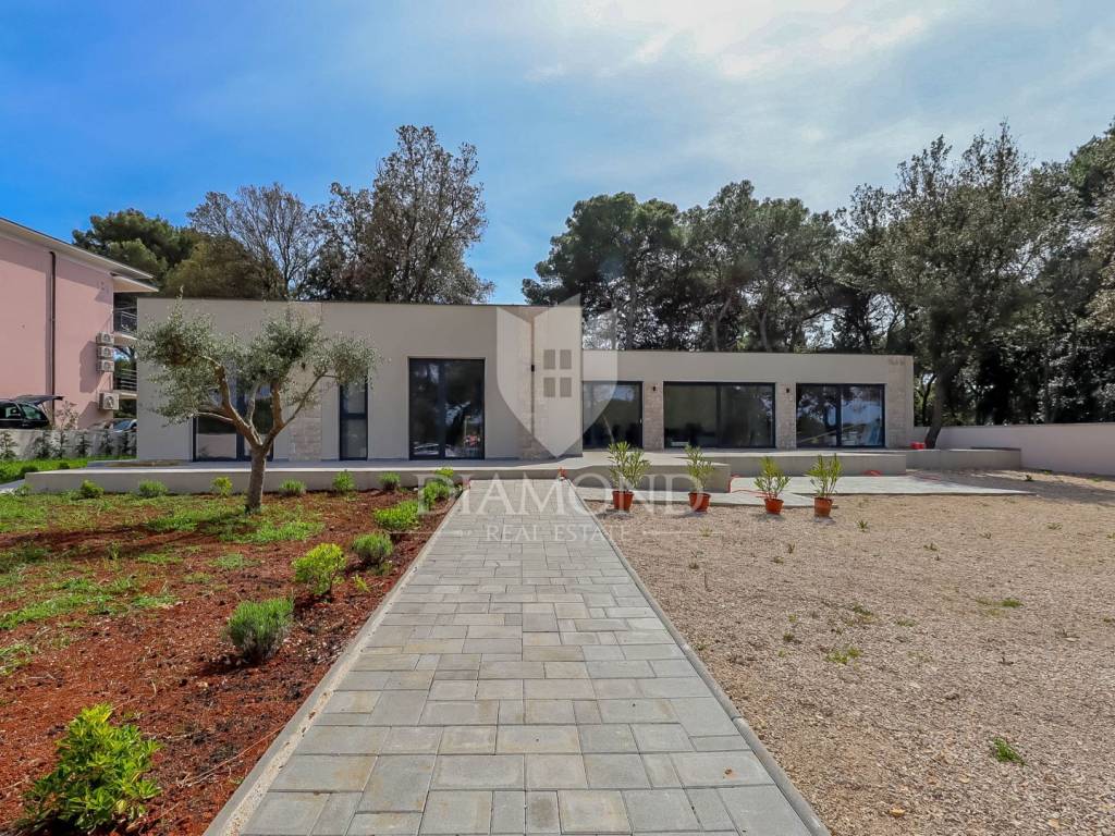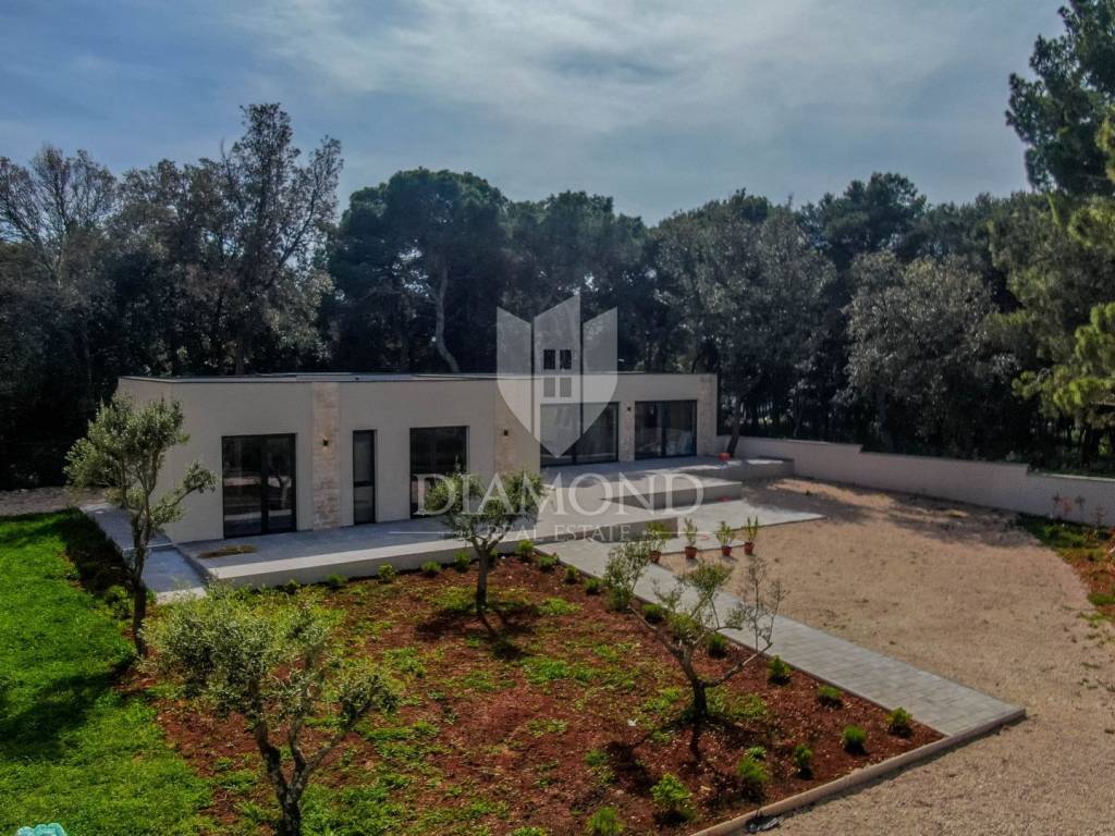 Rovinj is best known for its old part of town; winding romantic alleys, charming galleries and cafes, while locations near Rovinj are becoming more and more popular and sought-after destinations for rest and peace, where we sell this imposing villa for rest and living. The villa is located in a quiet street, surrounded by greenery, while the first beach is only a two to three minute walk away.
