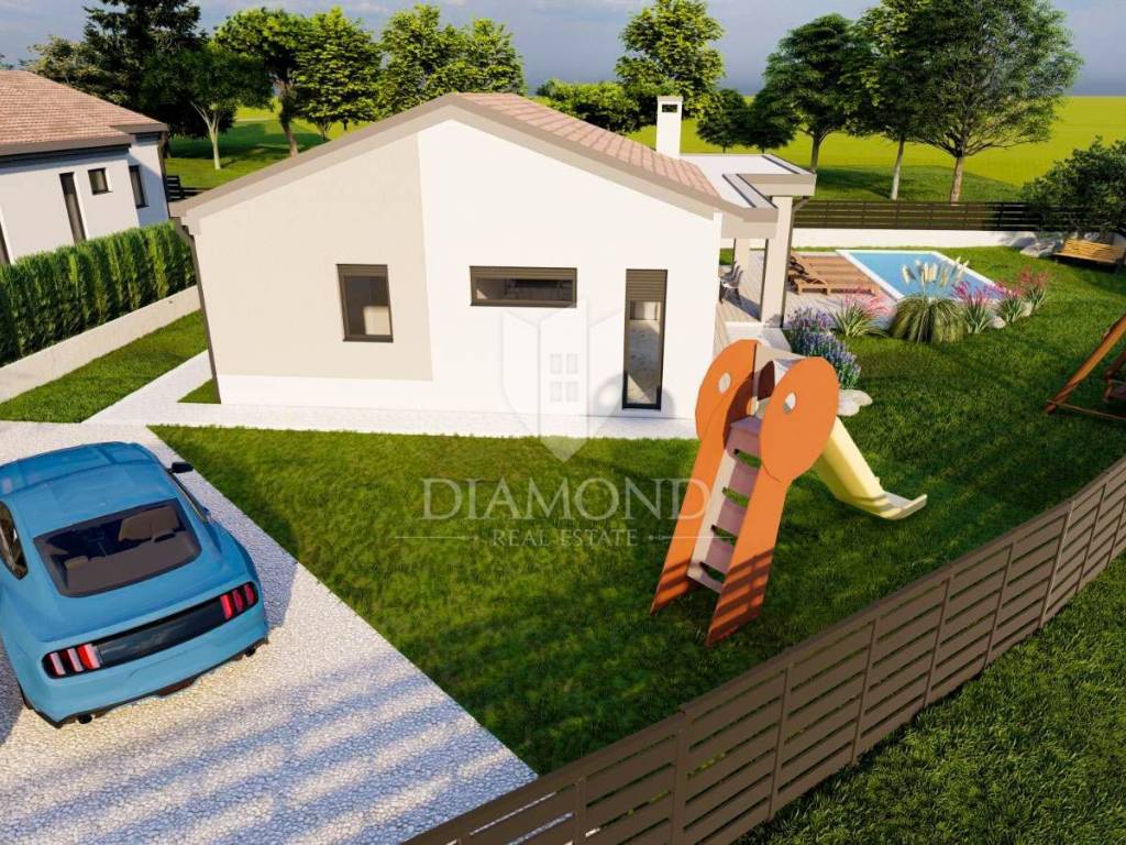 Situated on a 550 m² plot, this modern single-story house offers a well-thought-out layout that ensures comfort and functionality. Surrounded by family homes and a few holiday residences, it provides a sense of security and privacy. The total area of the house is 108 m², with 85 m² of living space designed for a comfortable and practical stay.