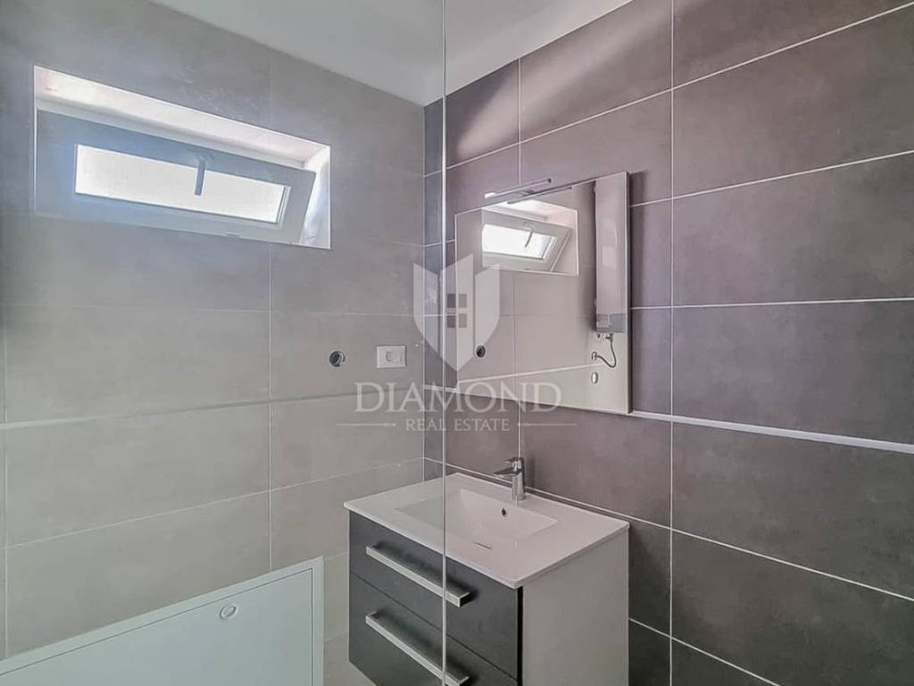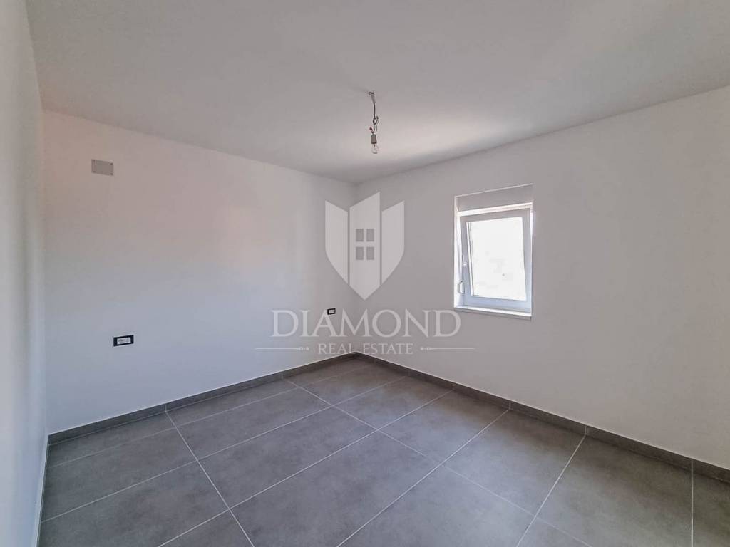 The apartment is located on the 1st floor of a modern building with a total of 8 apartments. The total area of the apartment is 68 m2. It consists of a living room with kitchen and dining room, 2 bedrooms, bathroom and terrace. The apartment also has a garage, one parking space and a storage room in the basement. It is of high-quality construction with heating and cooling by air conditioning.