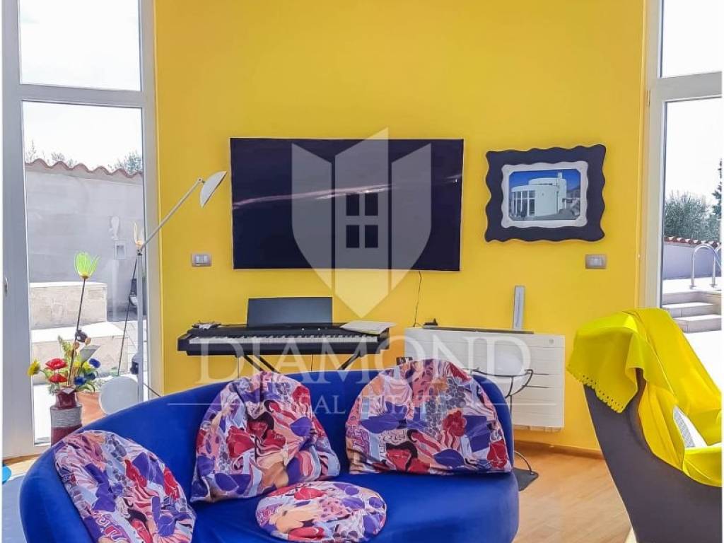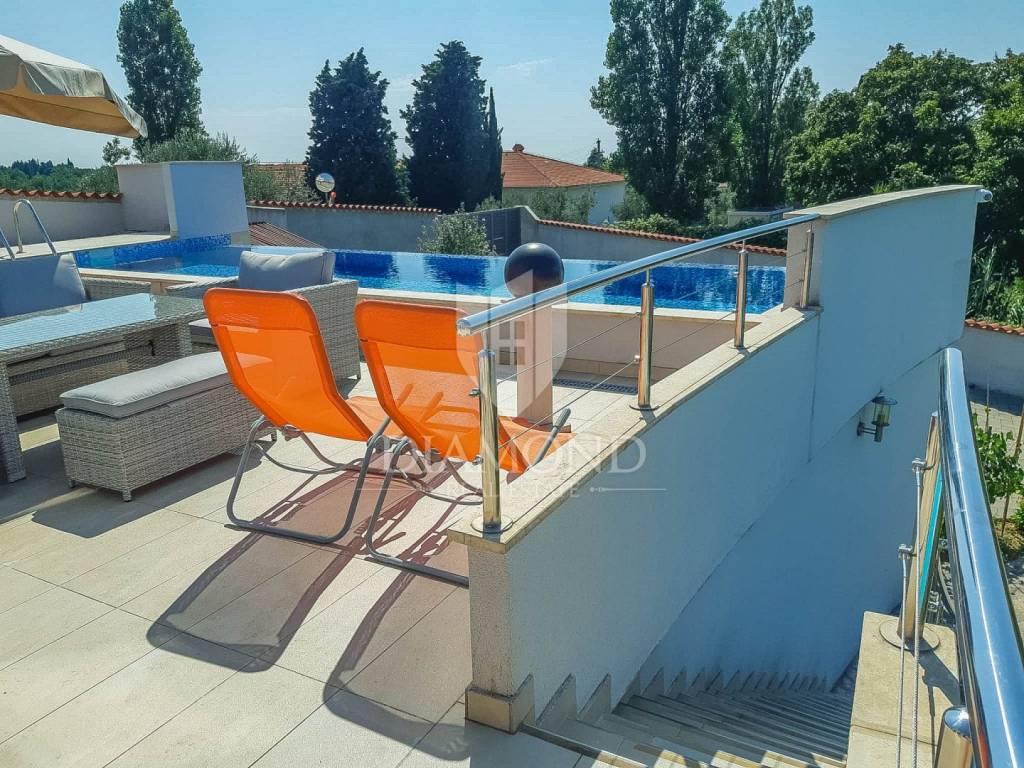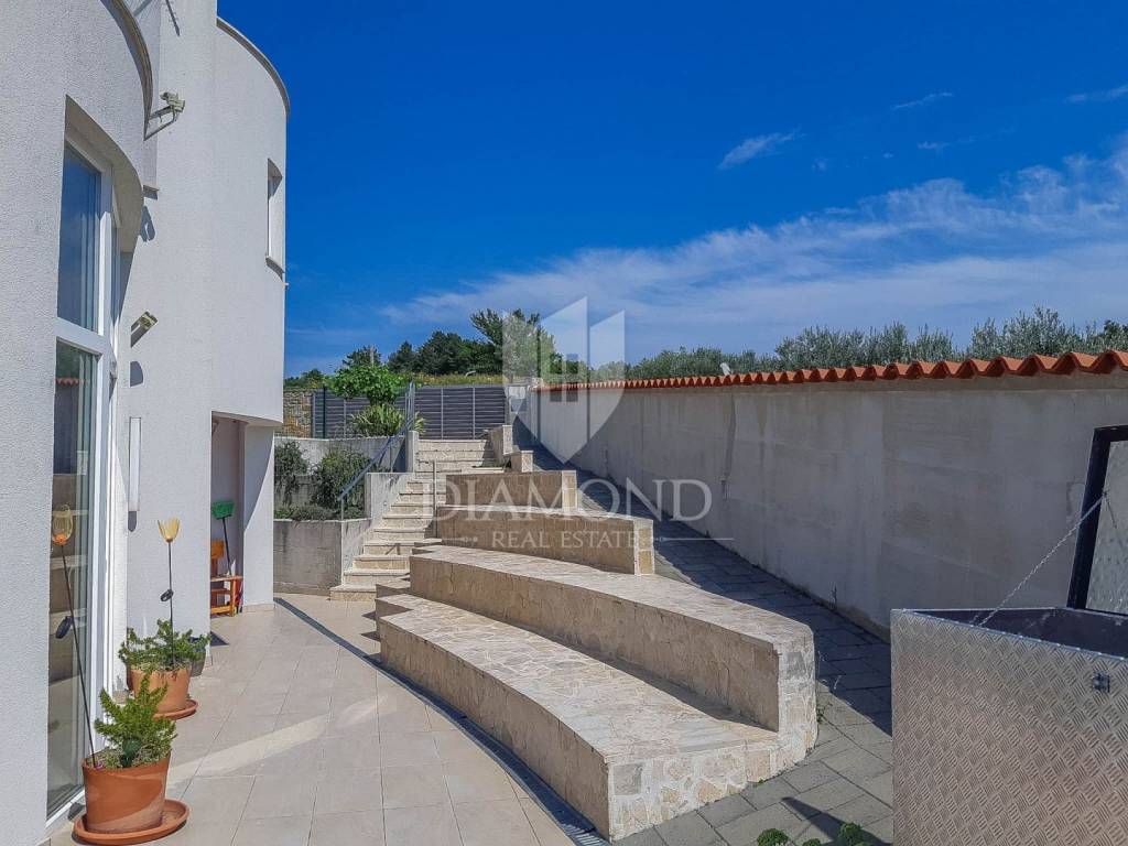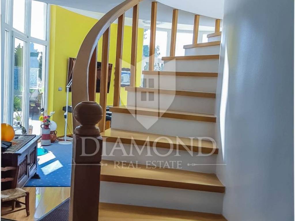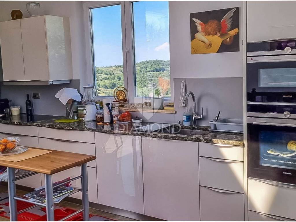 The property has an area of ​​317m2 and spreads over 3 floors. The ground floor of the villa is 168 m2 and consists of a living room with kitchen and dining room, 3 bedrooms, 2 bathrooms and three additional rooms. The living room opens onto a terrace with a beautiful view and a garden. In addition to the apartment on the ground floor there is a large garage. On the next floor, which is 105 m2 in size, there is an entrance hall, a spacious living room, a modern kitchen with a dining area and a beautiful terrace. Next to the terrace there is a swimming pool. An internal staircase leads to the next floor with an area of ​​44 m2 and there is a bedroom with bathroom that contains a modern shower with massage, sauna and a terrace with a beautiful view. The property is heated by air conditioning, wood stove and heat pumps. The house has a surveillance system and alarm. There is a possibility of building an elevator in the house.