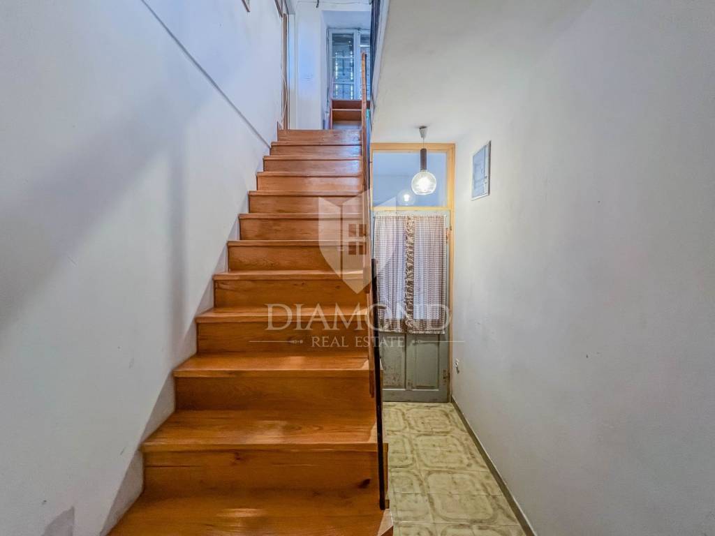 It is a terraced house with an area of ​​250 m2. The house extends over 5 floors, i.e. basement, ground floor, 1st floor, 2nd floor and attic. The house consists of a living room, a kitchen with a dining room, 4 bedrooms, 2 bathrooms, a storage room, a spacious tavern covered with stone in the basement and a space in the attic that can be used for multiple purposes. From the tavern there is a 40 m2 garden. Heating is via a wood stove. The house requires adaptation. There is a public parking lot for use near the house.