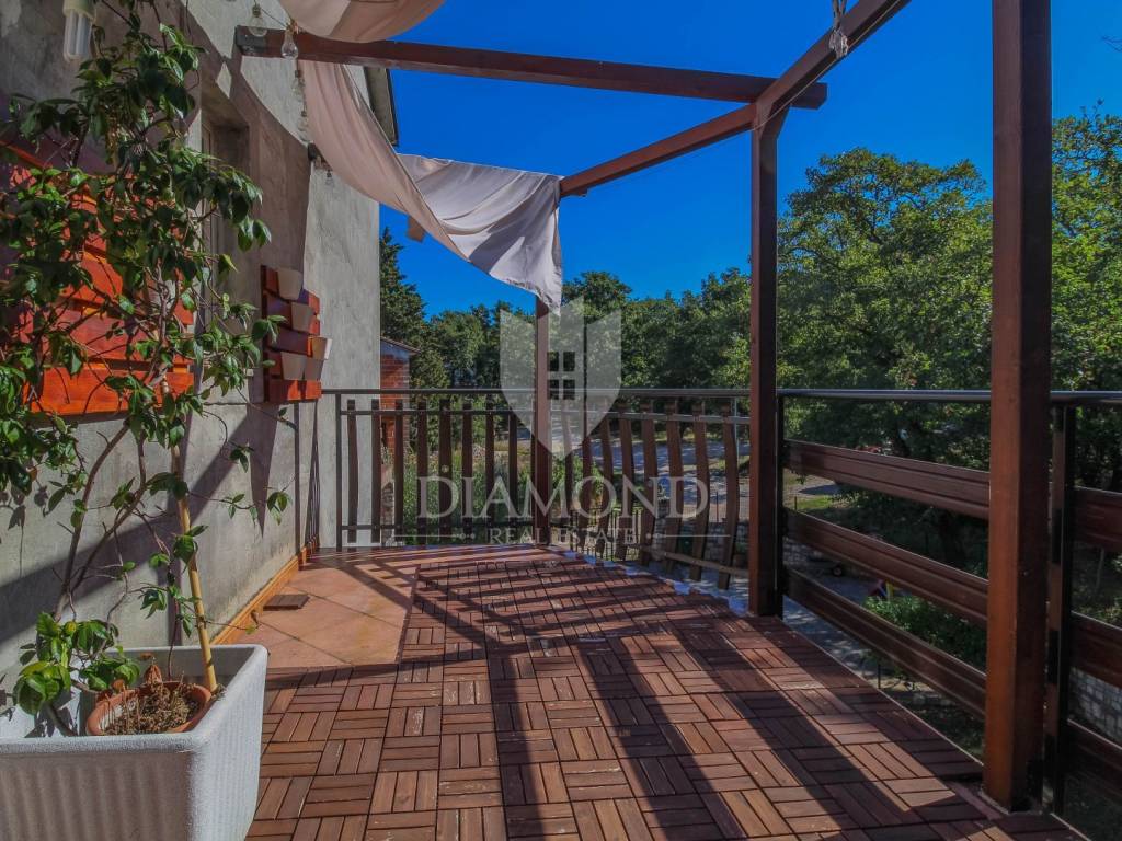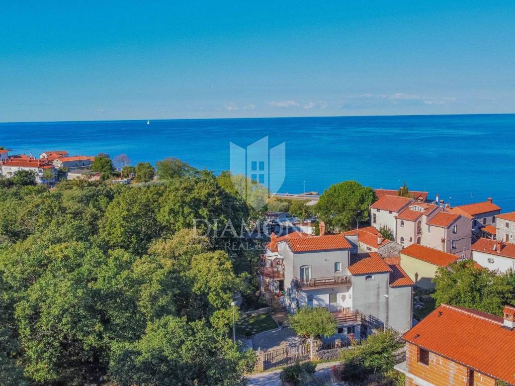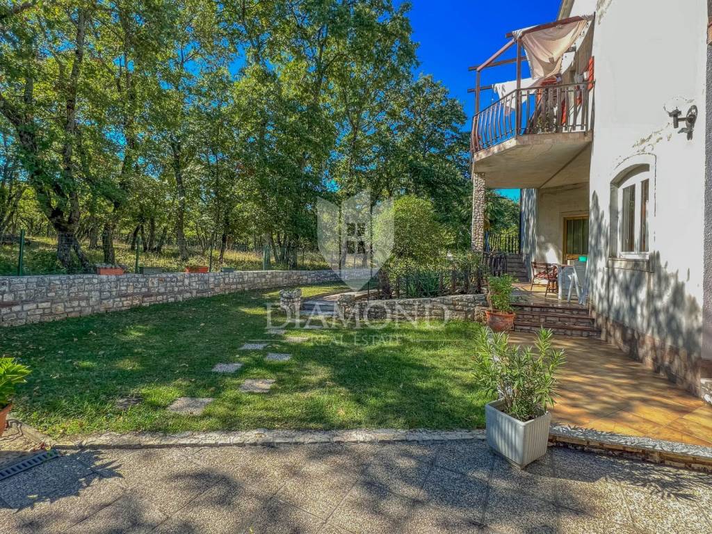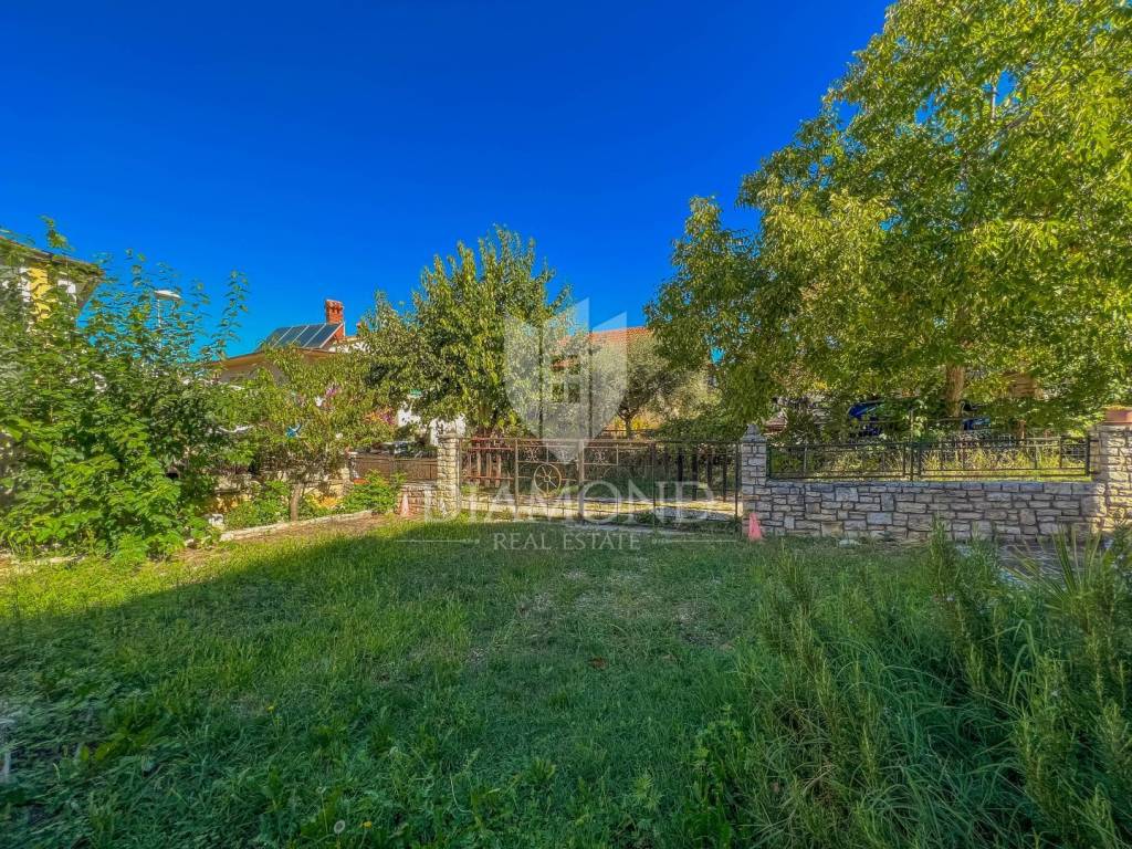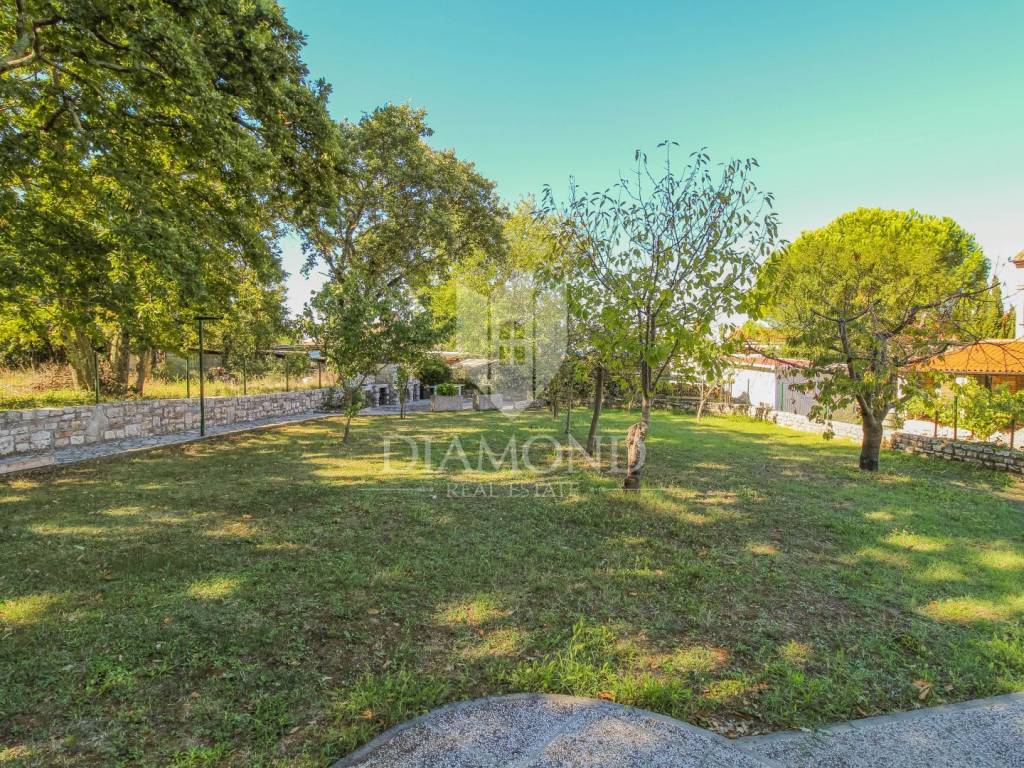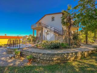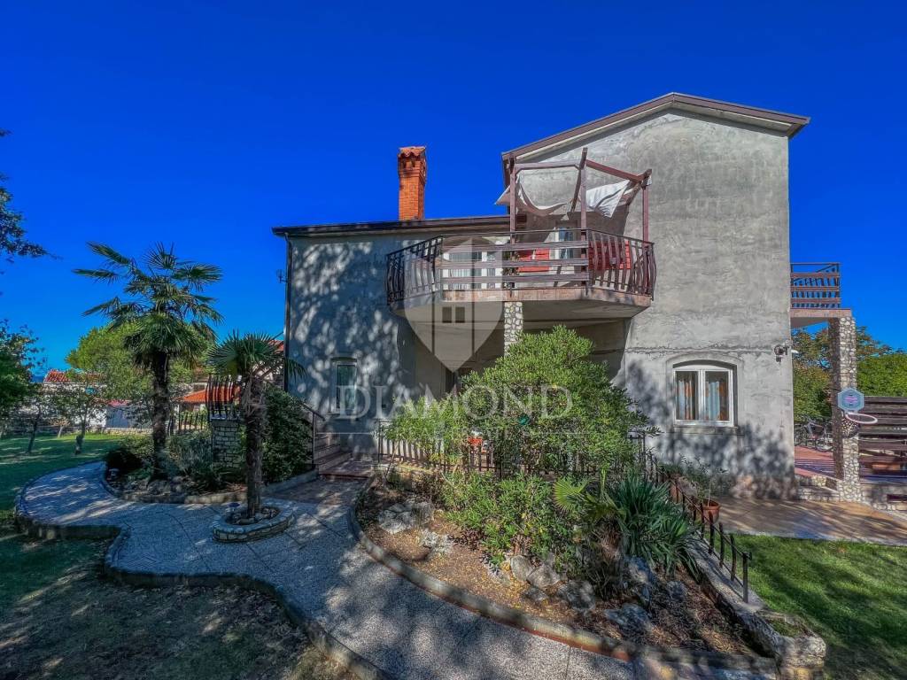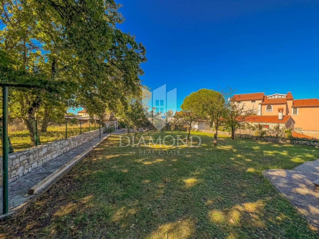 A detached house for sale with a large garden and a view of the sea in an attractive location near Umag.