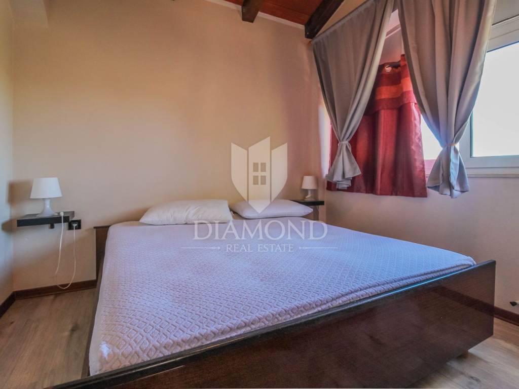 The house is located in an extremely attractive location, just a few steps away from beautiful and well-kept beaches. Near the house there are restaurants, cafes, shops, promenades, bicycle paths and various other amenities. Umag is only a few minutes' drive away.