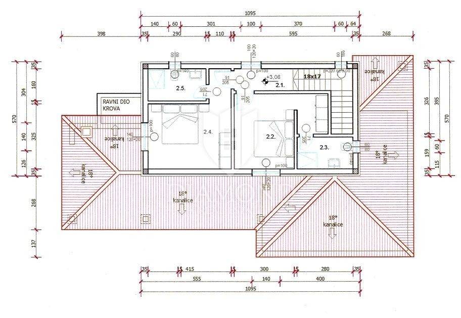 The house is designed as a two-story building. The ground floor will have a net area of 98 m2. It will consist of a covered entrance, hallway, pantry, bedroom with bathroom and spacious living room with kitchen and dining room. The living room will open onto a large covered terrace with an 8x4 meters big swimming pool. On the upper floor, there will be two bedrooms, each with its own bathroom, with a total net area of 48m2. Parquet will be laid in the bedrooms and living room, and ceramic tiles in the rest of the house. Cooling is provided by four air conditioners. Underfloor heating and pool heating will be installed through heat pumps throughout the house. The house will also be equipped with flues for solid fuels. The external carpentry will be made of PVC, glazed with thermal glass and electric shutters for protection from the sun. There will be two parking spaces next to the house.
