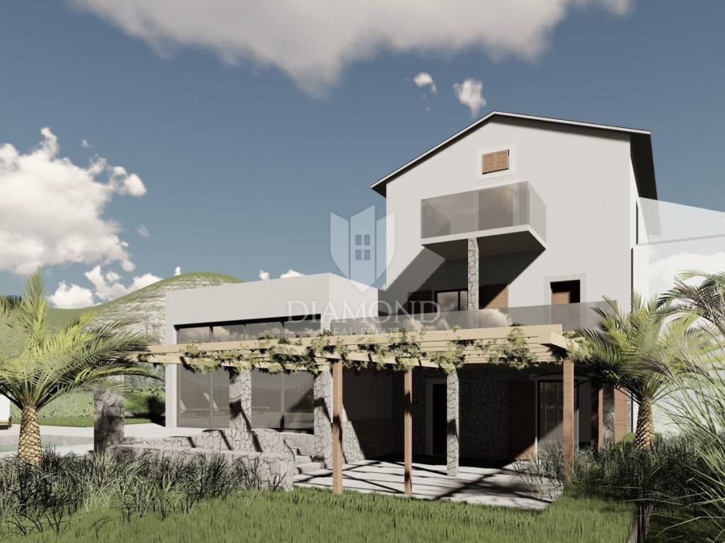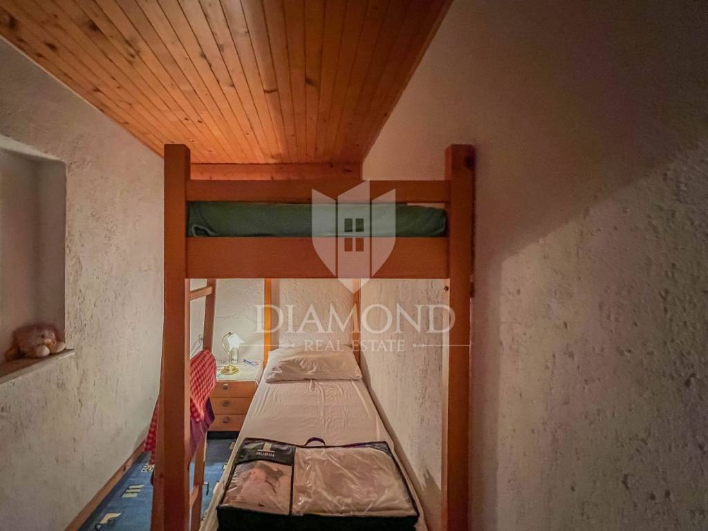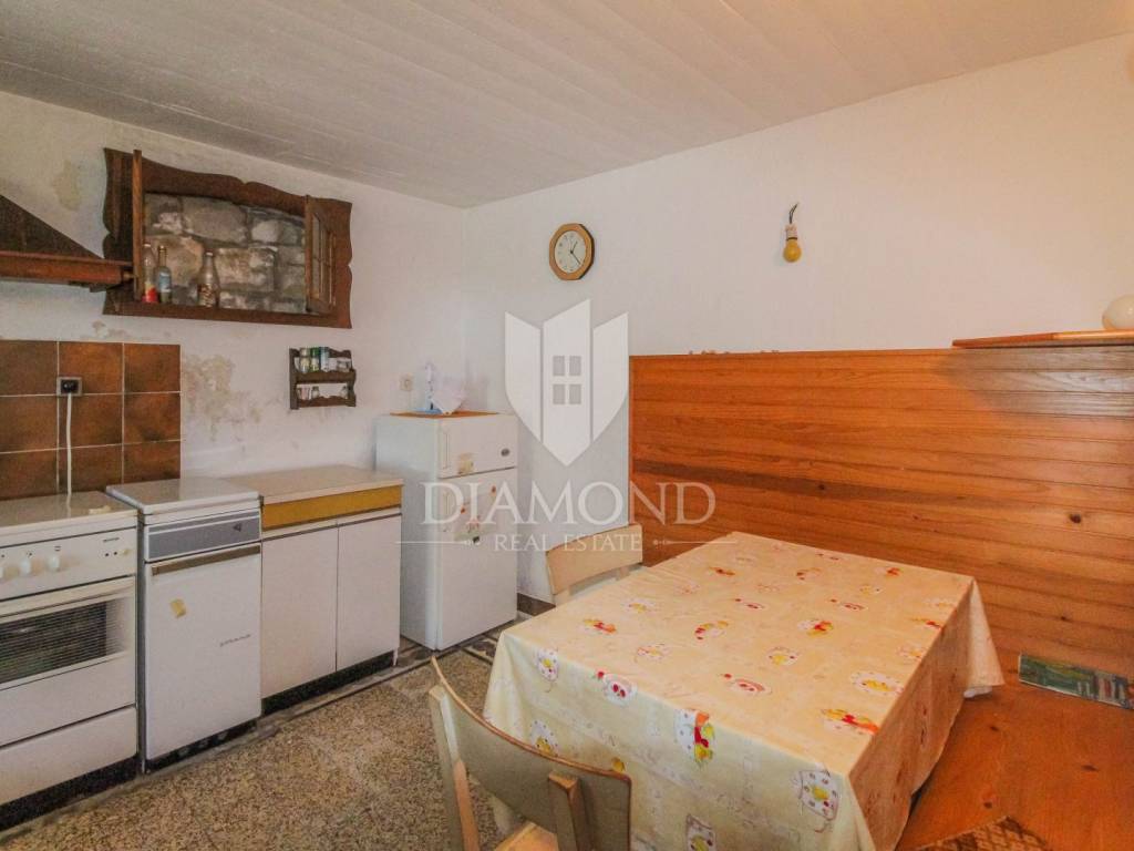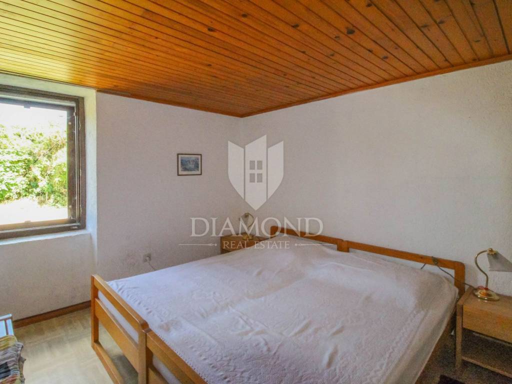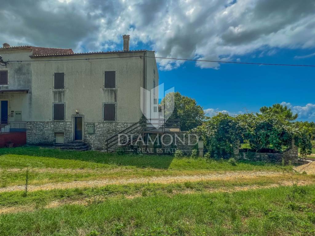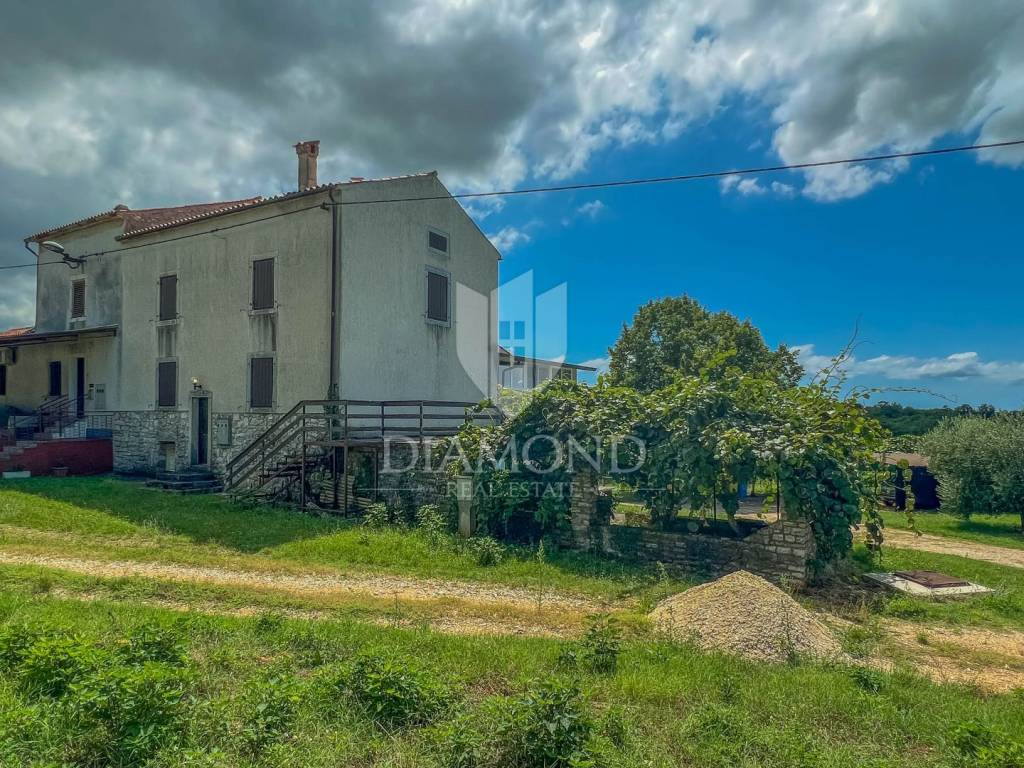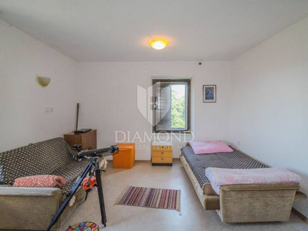 The surface of the house is 150 m2, and the house itself extends through the ground floor, 1st floor and 2nd floor. On the ground floor there is a living room, a kitchen with a dining room, a corridor and a terrace. Internal stairs lead to the 1st floor where there are 3 bedrooms and a bathroom, while on the 2nd floor there are 2 more bedrooms and a bathroom. From the floors there is a view of the sea and the beautiful Istrian landscape. The house has a spacious garden that offers the new owner numerous possibilities, such as the construction of a swimming pool. There is a conceptual project for the renovation of the house.