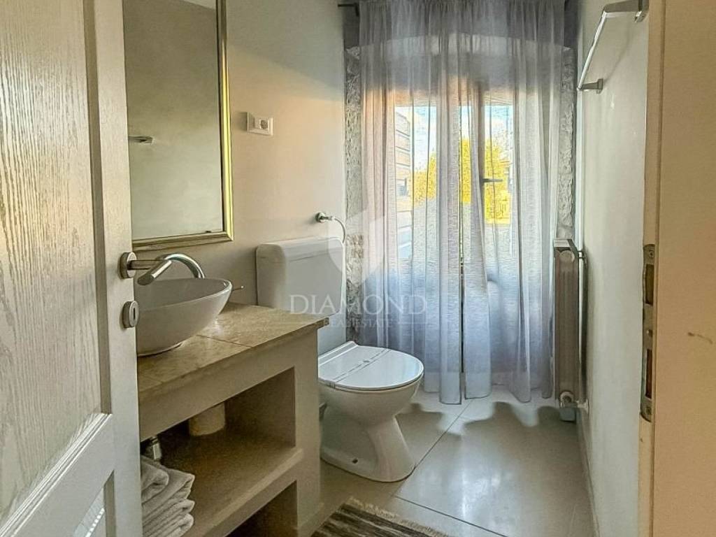 The house has a total area of 116m2 and consists of a ground floor and one floor. On the first floor of the house there are 2 fully equipped bedrooms, each with its own bathroom. On the ground floor of the house there is a separate toilet, kitchen and living room designed according to the open space principle, from which there is access to a spacious yard with a total area of 954m2 with a swimming pool. The yard is surrounded by greenery. Outside the fenced yard there is a private parking lot for several vehicles. The heating is on floor central heating on radiators and air conditioning, which is well used to cool down on summer days. The house also has a relaxation room with a jacuzzi with a breathtaking view of nature.