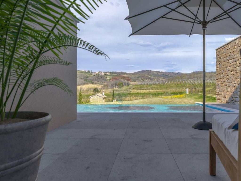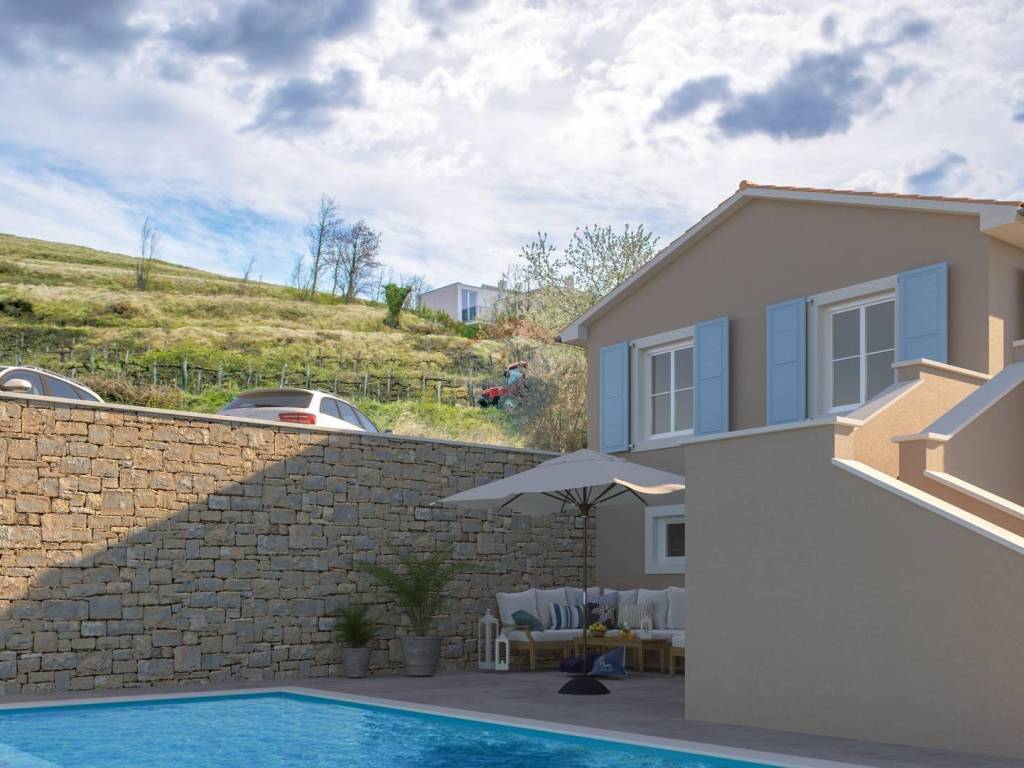 On the outskirts of beautiful Momjan, a villa with a swimming pool with a total area of 140m2 with a private pool is being built. The villa has a ground floor kitchen with dining area, living room, additional guest toilet and 2 uncovered terraces. Upstairs are 3 bedrooms, 2 bathrooms and a storage room. All materials used in the construction are of top quality. The planned completion of the construction of this beautiful villa is the middle of 2021. Beautiful property in one of the most beautiful places in Istria, known for its indigenous beauty, fine wines and famous restaurants. Ideal for living or as an investment for tourism.
