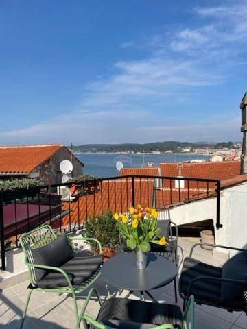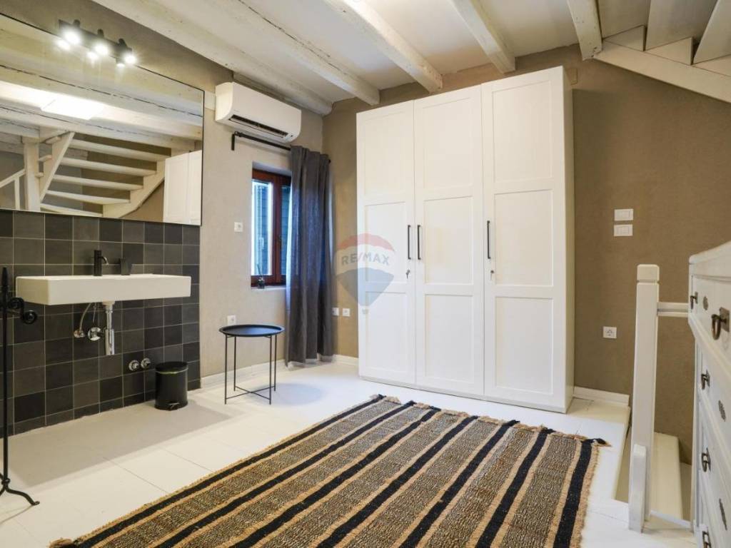 The house has four floors, each 29 m2 - on the ground floor, in the nature of the first floor, there is a kitchen and dining room and a guest toilet, on the second floor there is a living room, while on the third floor there is a bedroom with its own bathroom, and in the attic there is another one smaller bedroom with access to the terrace with a beautiful view of the sea, the bell tower of Saint Euphemia and the red roofs.