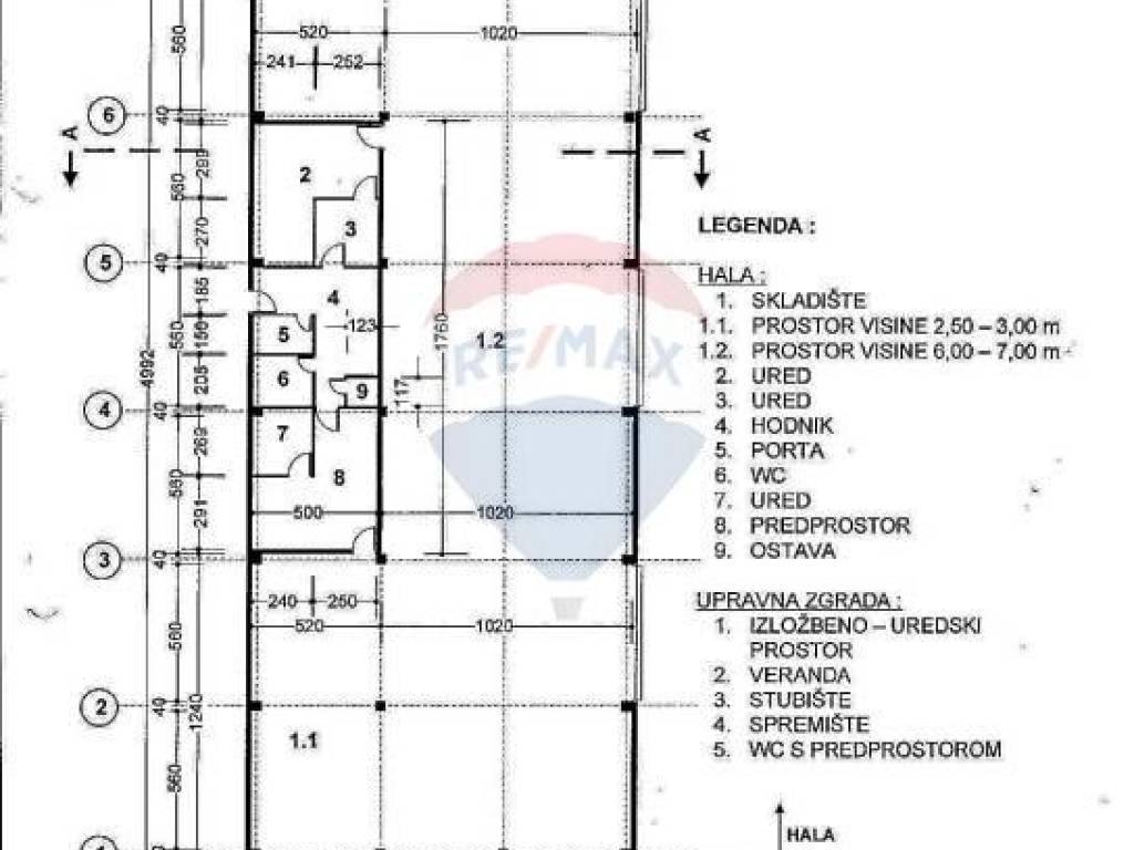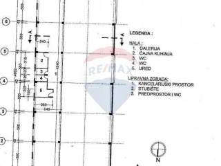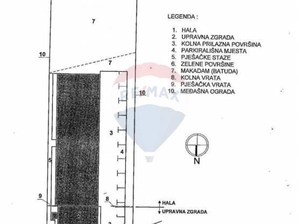 Poslovni objekt se sastoji od hale površine 1000m2 visine 7m i odvojenog dijela s uredima površine 400m2.