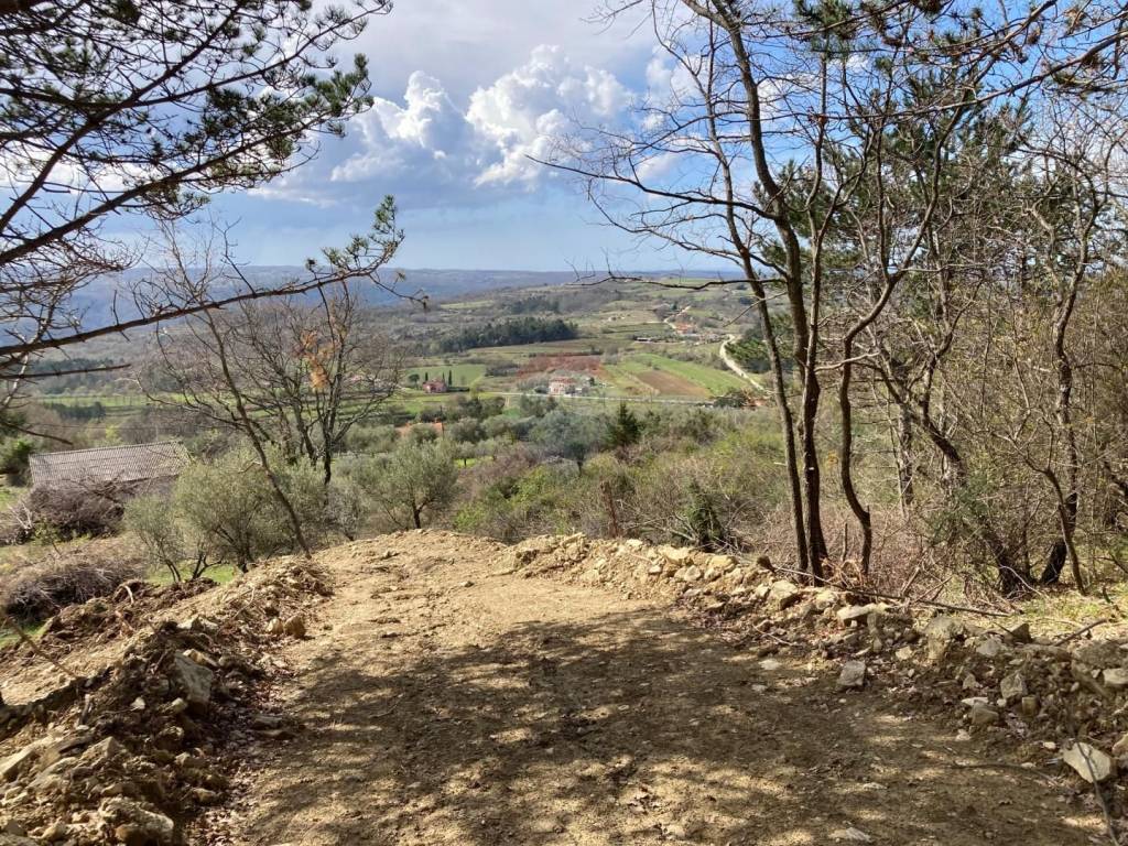 Prodaje se 1200 m2 građevinskog i 322 m2 poljoprivrednog zemljišta , parcela se nalazi na brežuljku s kojeg se pruža prekrasan pogled na more. Na tom zemljištu dozvoljena je gradnja obiteljskih kuća ili vila s bazenom za turistički najam ili miran obiteljski život. Na parceli je reguliran pristupni put i sva infrastruktura je do terena. Do građevinske zemlje dolazi se asfaltiranom lokalnom cestom, koja je od glavne državne ceste udaljena 500 metara.