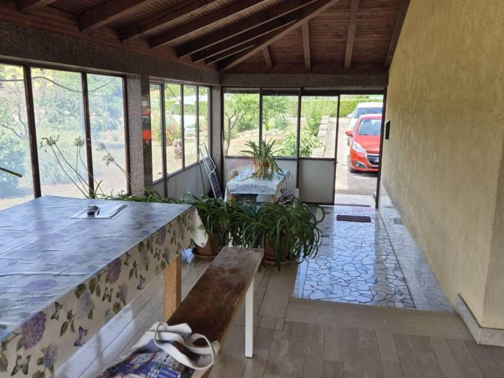 RE/MAX Centar nekretnine highlights this detached house from its offer. The house consists of a closed entrance veranda that forms the entrance to the house. Then we enter the kitchen and dining room through the hallway. On the ground floor we also have a living room, bedroom, bathroom, storage room through which we enter the garage. On the first floor we have three spacious rooms and a passage to the attic. The house is located in a quiet village with a lot of potential. It takes you a few minutes to get to the shops and 25 minutes to the sea. The house is ideal for family life and also has great potential for tourism. We invite you to take a look!