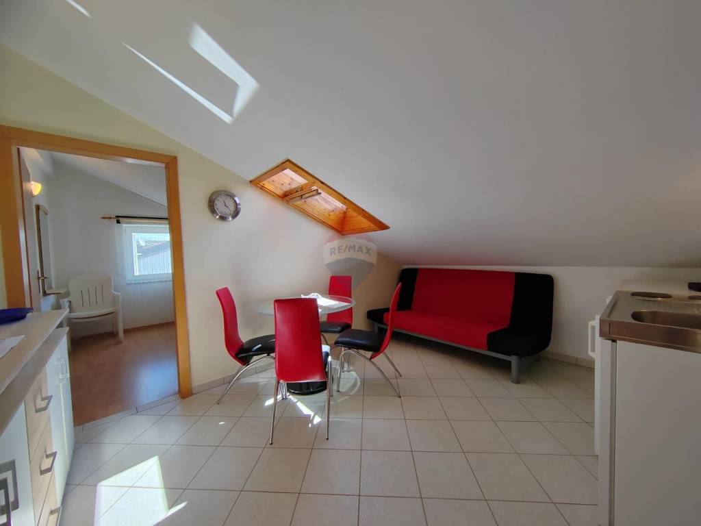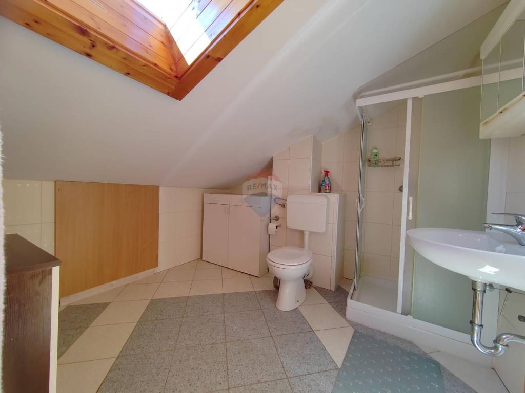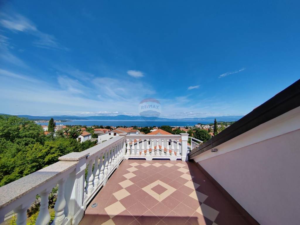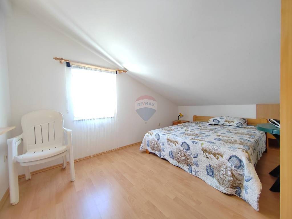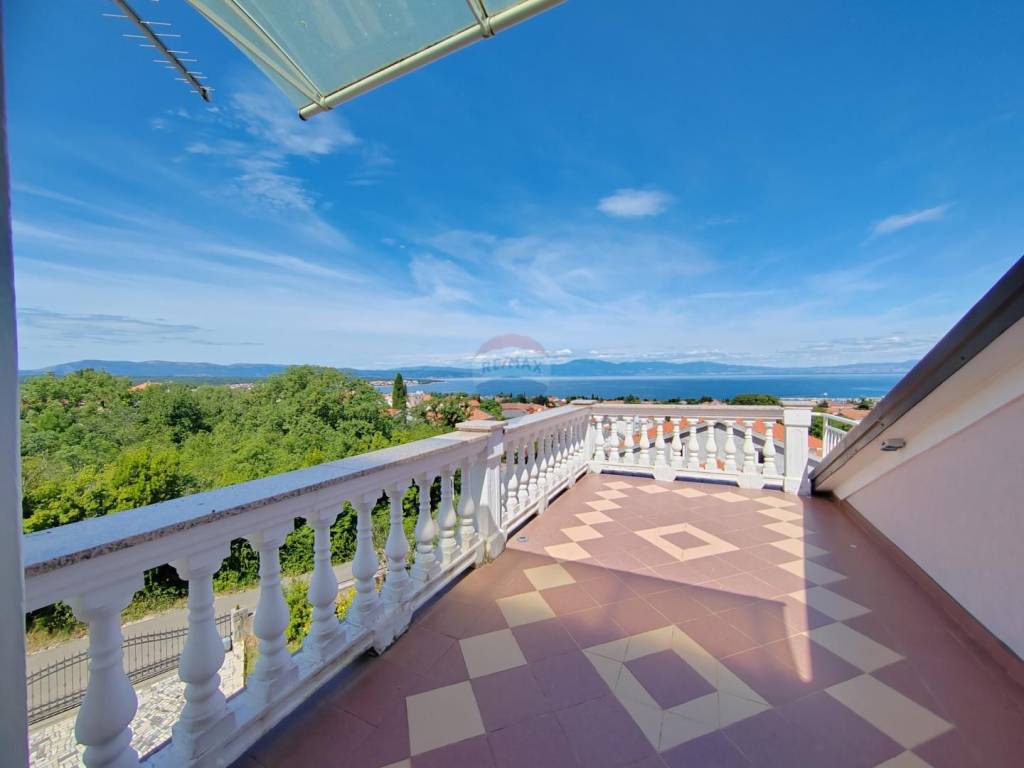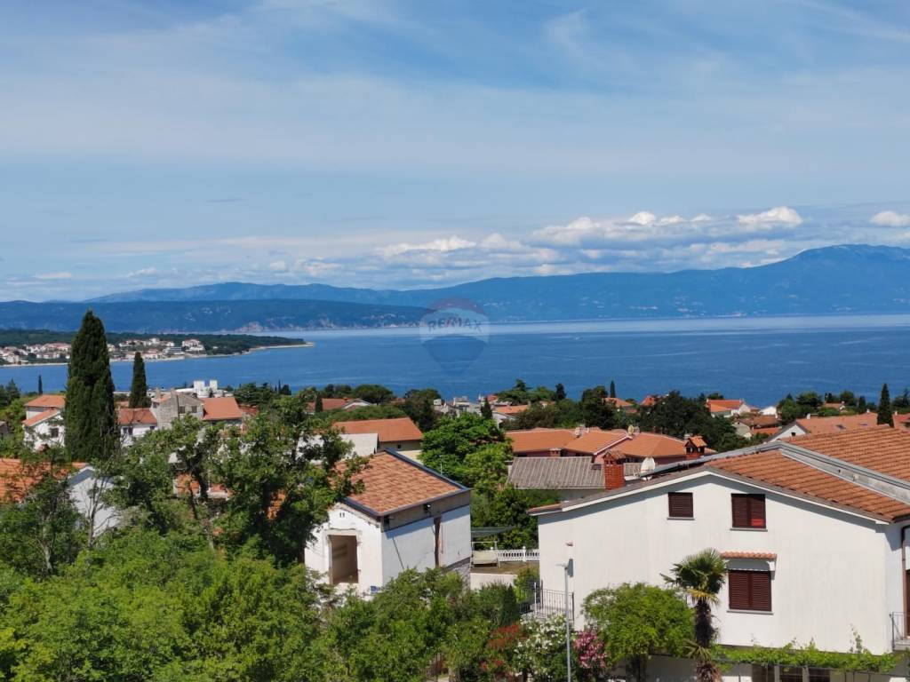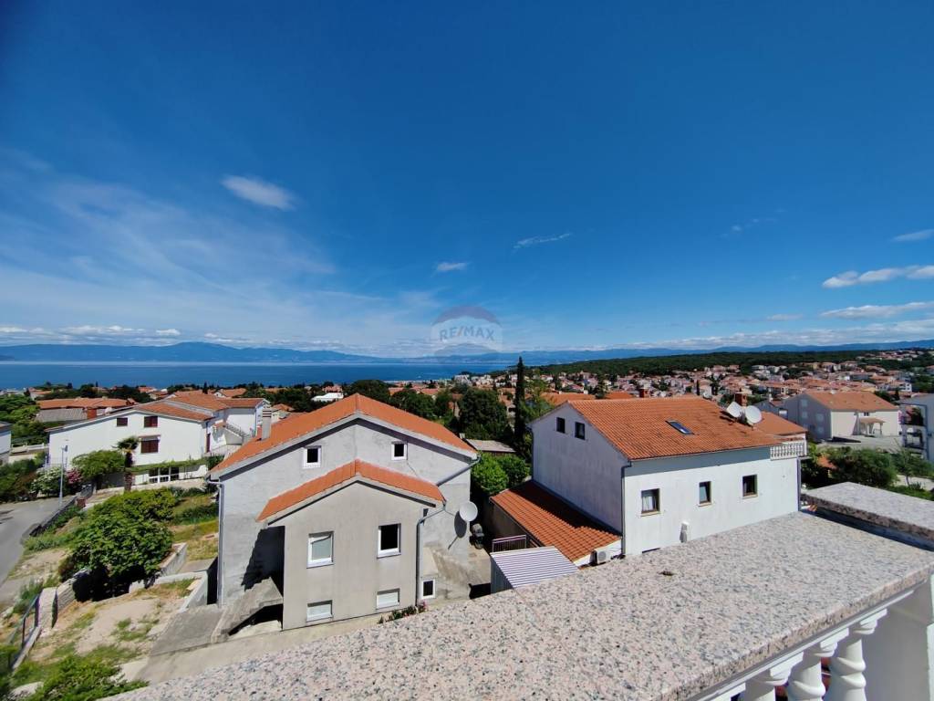 Apartment is sold in the attic of the family house in Malinska, which contains a total of three residential units. Apartment with a net area of 64 m ² consists of entrance space, storage room, two bedrooms, two bathrooms, living room, kitchen with dining room and exit to a spacious terrace. The terrace offers a panoramic view of the sea and the Kvarner Bay.