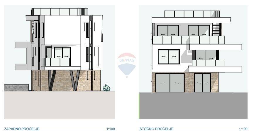 Na svakom zemljištu predviđena je gradnja objekta sa četiri stambene jedinice: - **Prizemlje**: Apartman površine 80 m² s okućnicom, bazenom i dva parkirna mjesta. - **Prvi kat**: Dva apartmana, jedan površine 50 m² i drugi 70 m², svaki s okućnicom i dva parkirna mjesta. - **Drugi kat**: Prostrani apartman površine 110 m² s krovnom terasom od 60 m² i dva parkirna mjesta.