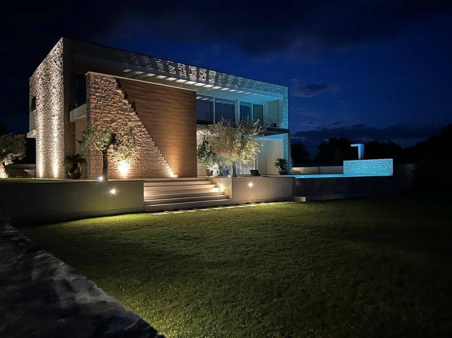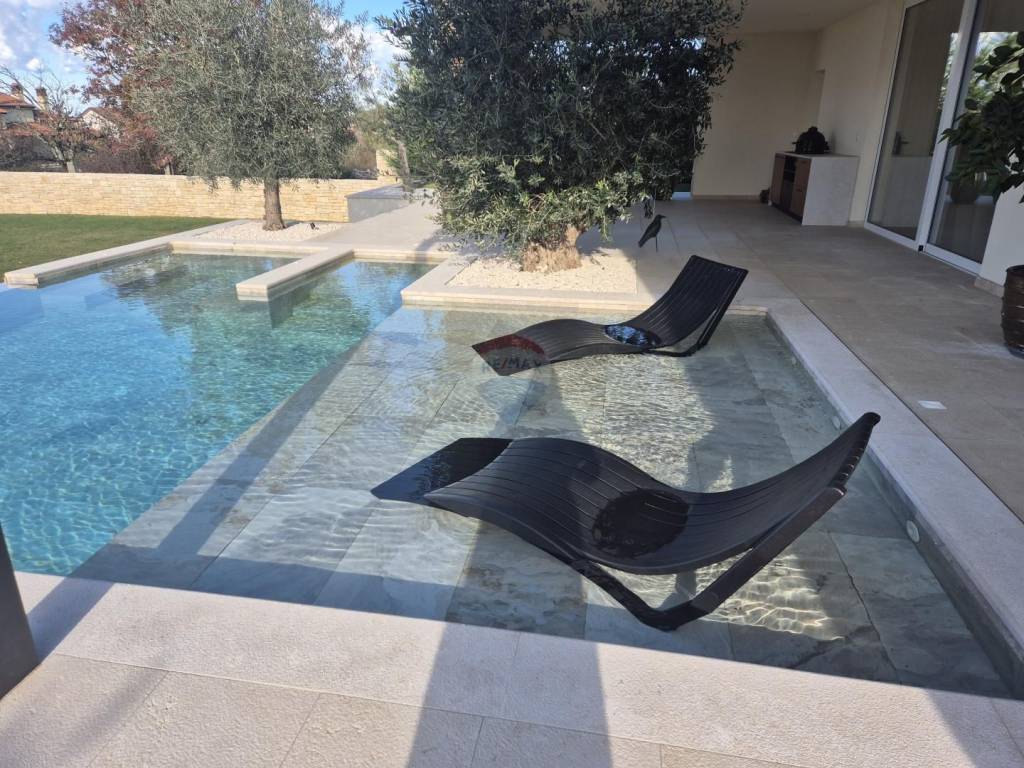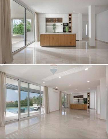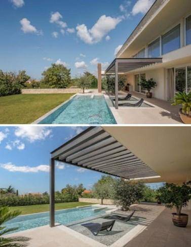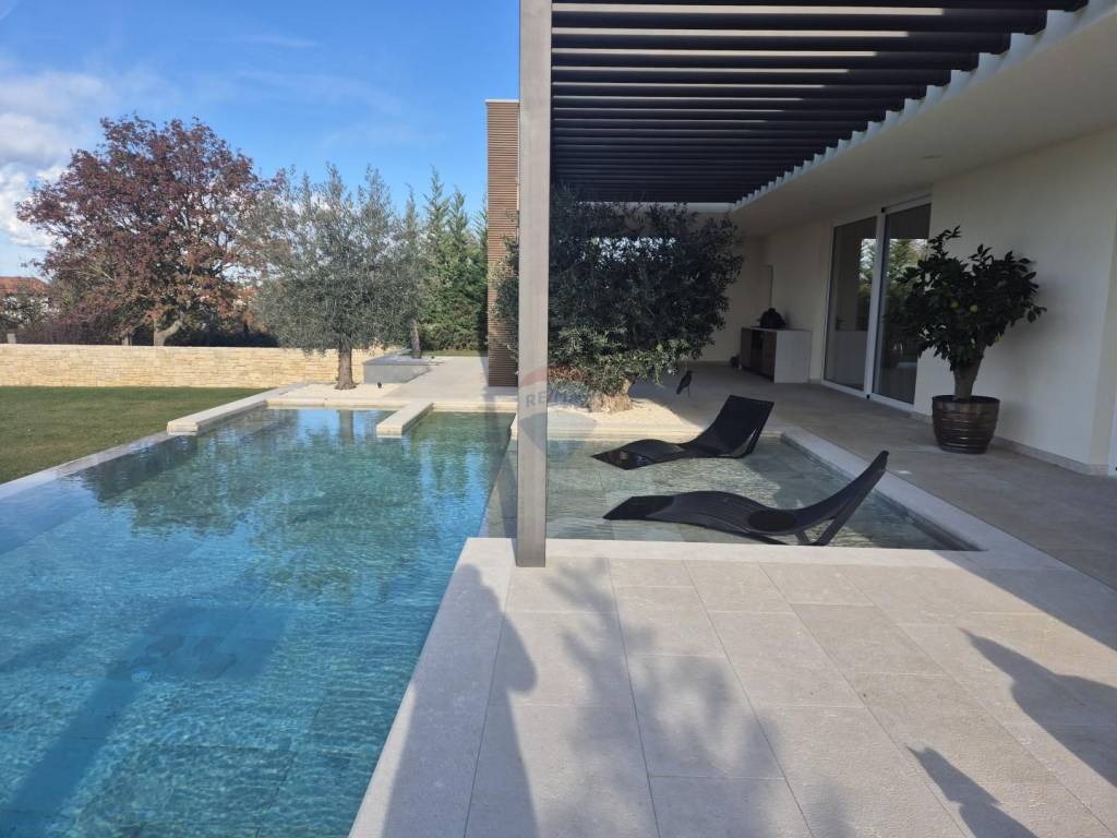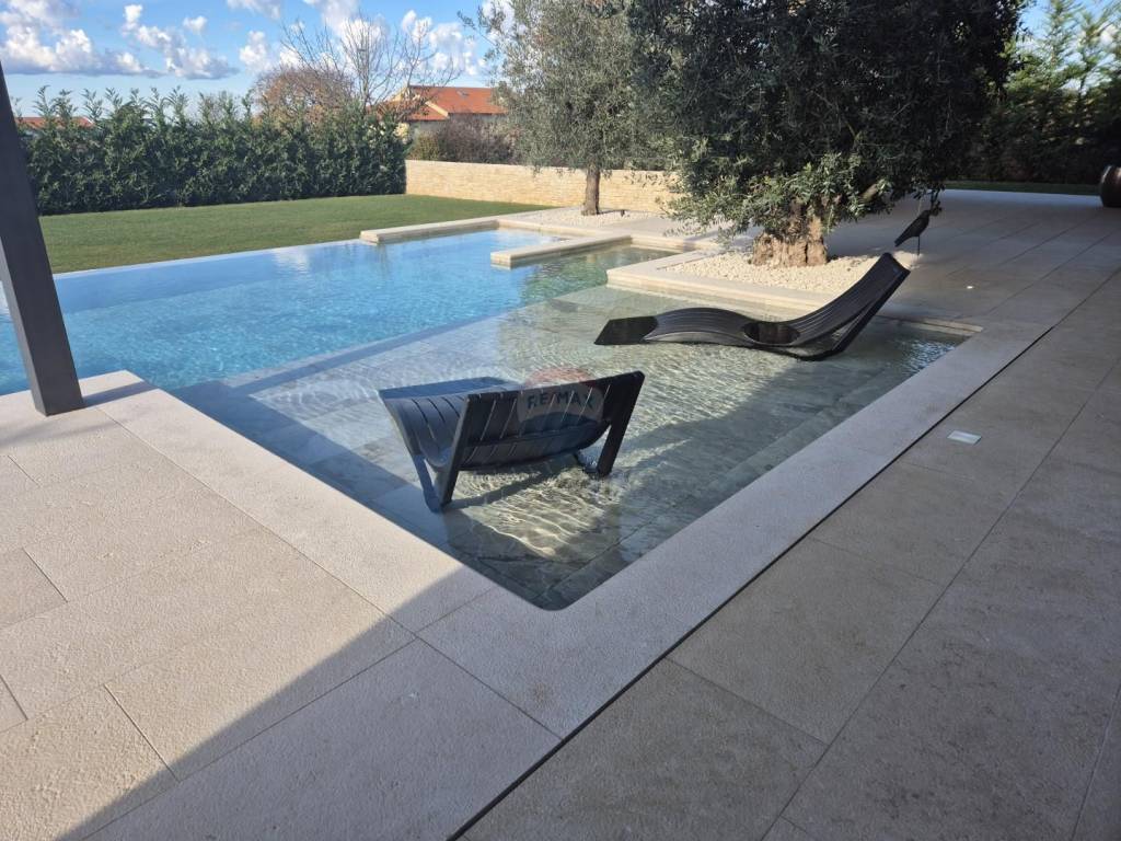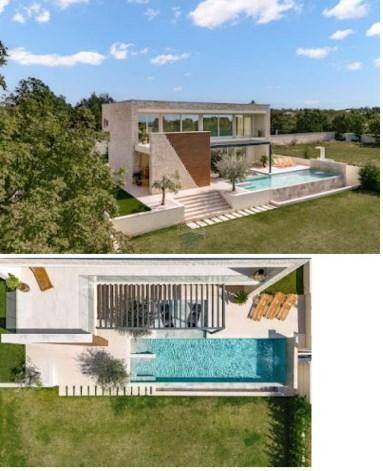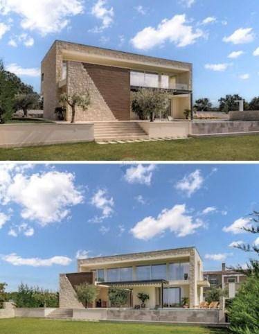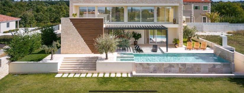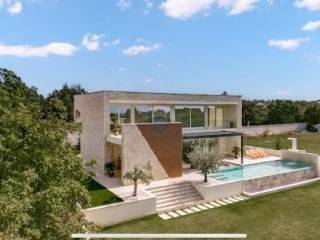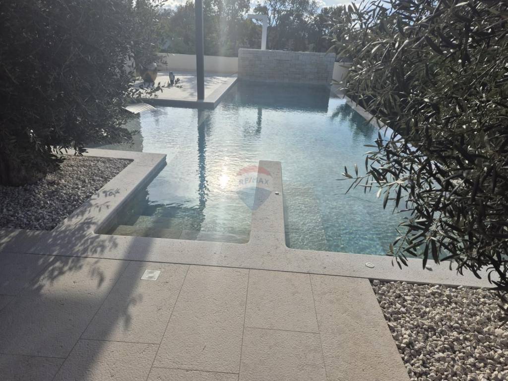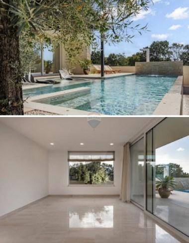 RE/MAX Centar nekretnina invites you to view this luxury villa that extends over 276 m2 and is located on a plot of 794 m2. This prestigious villa stands out for its attractive design and top-quality equipment. It extends over two floors. On the ground floor there is a kitchen, living room and dining room and a toilet. The sea can be seen from the living area and from the pool. The living area is connected to the outdoor terrace and heated pool, all on the same level. On the outdoor terrace by the pool, there is a fully equipped summer kitchen and toilets on the outside of the house. There is a modern engine room next to the pool. On the first floor there are 4 spacious bedrooms with bathrooms and all have access to a spacious balcony from which you can see the sea. The villa offers great comfort and functionality for both a family and an investment/rental. The garden is equipped with a lawn irrigation system and provides complete privacy. The entire villa has underfloor heating and air conditioning. Only top quality materials and equipment were used in the construction of this villa. This villa is a perfect blend of modern and indigenous style. We invite you to come and see and experience this unique property.