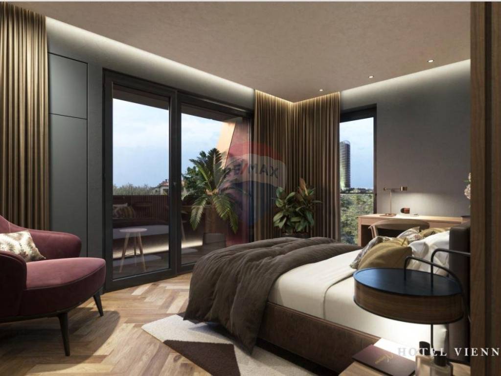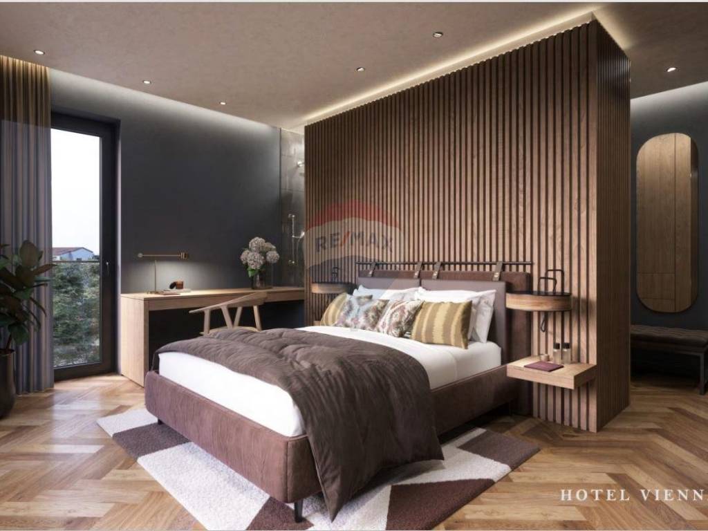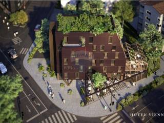 Das Hotel Vienna besteht aus drei Einheiten – Restaurant, Hotel und Bar (Gastronomiefläche derzeit vermietet) – auf insgesamt sechs Etagen mit einer Gesamtnettonutzfläche von 1.211,50 m². Das Hotelrestaurant, das derzeit als Speisesaal zum Servieren des Frühstücks dient, erstreckt sich über zwei Etagen, eine mit einer professionellen Küche und einem Speisesaal mit Bar und im Erdgeschoss mit einer Bar und einem Servicebereich . Auf beiden Etagen gibt es Sanitäranlagen für Gäste, auf der ersten Etage gibt es außerdem eine Garderobe und ein Badezimmer für das Küchenpersonal. In den höheren Etagen über dem Restaurant befinden sich Hotelzimmer. Der zentrale Teil des Anwesens ist das Hotel, im Erdgeschoss befindet sich die Hotelrezeption mit einer Innentreppe, die zu allen Etagen führt, und einem Aufzug für Hotelgäste, der über die Etagen 0-3 verfügt. Im ersten Stock des Hotels befinden sich 7 Zimmer (4 Doppelzimmer, 3 Dreibettzimmer), im zweiten Stock des Hotels befinden sich 4 Zimmer (2 Doppel- und 2 Dreibettzimmer) und ein Apartment mit zwei Schlafzimmern. Im dritten Stock des Hotels befinden sich drei Zimmer (2 Dreibettzimmer, 1 Doppelzimmer). Insgesamt sind 15 Einheiten kategorisiert (14 Zimmer und eine Wohnung), auf jeder Etage gibt es einen Abstellraum für die Raumpflege.