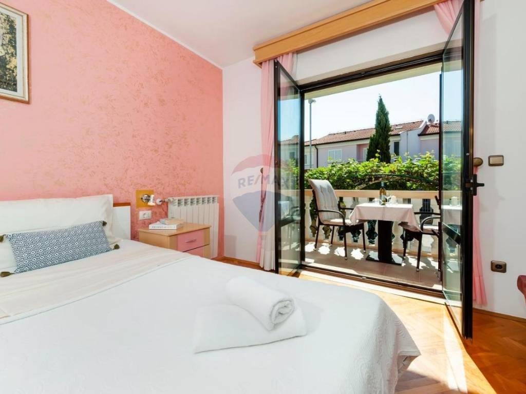 In Rovinj, we are selling a spacious house of quality construction that spreads over 4 floors, 400 m2 on a plot of 300 m2 where the pool with the beach is located. On the ground floor there is one apartment of 120 m2 and consists of a living room with kitchen, 2 bedrooms, bathroom, cellar with fireplace and boiler room.