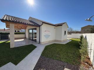 Detached single-storey house newly built in 2024, located in the center of Bale on a one-way street with no traffic. The house is in a quiet neighborhood, surrounded by a garden and greenery. It is surrounded by a wall that provides privacy.