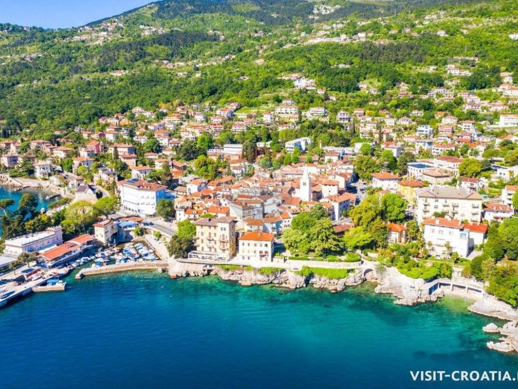 Zemljište je udaljeno 4 km od Lovrana, more i plaže odnosno 15 minuta autom do centra Opatije.