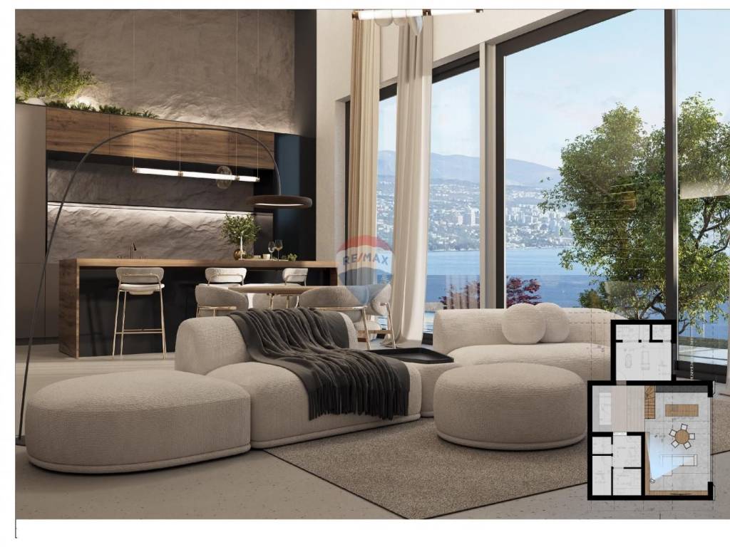 A luxurious detached villa with a gross area of 319.55 m2 with a heated infinity pool and a beautiful sea view is for sale, in a quiet location, in a dead-end street, near the center of Opatija.