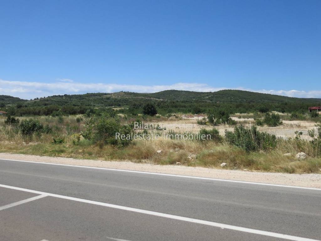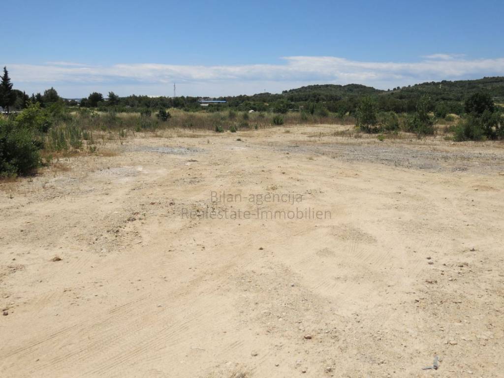 Super prilika. Vodice, Dalmacija, prodaje se građevinsko zemljište u poslovno-prizvodnoj zoni. Atraktivna lokacija, ulaz-izlaz iz grada, blizina zaobilaznice Zadar-Split i prometnice prema autocesti. Idealne dimenzije, strana do prometnice je duga 120 m. Zemljište je očišćeno, nasuto i poravnano. Samo 1300 m do centra grada, 1500 m do mora i plaže. Pogodno za gradnju poslovno-trgovačkog centra, suhe marine i drugih sadržaja.