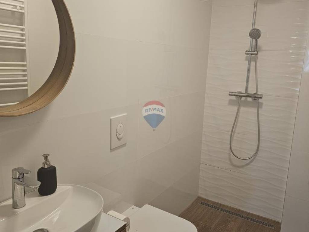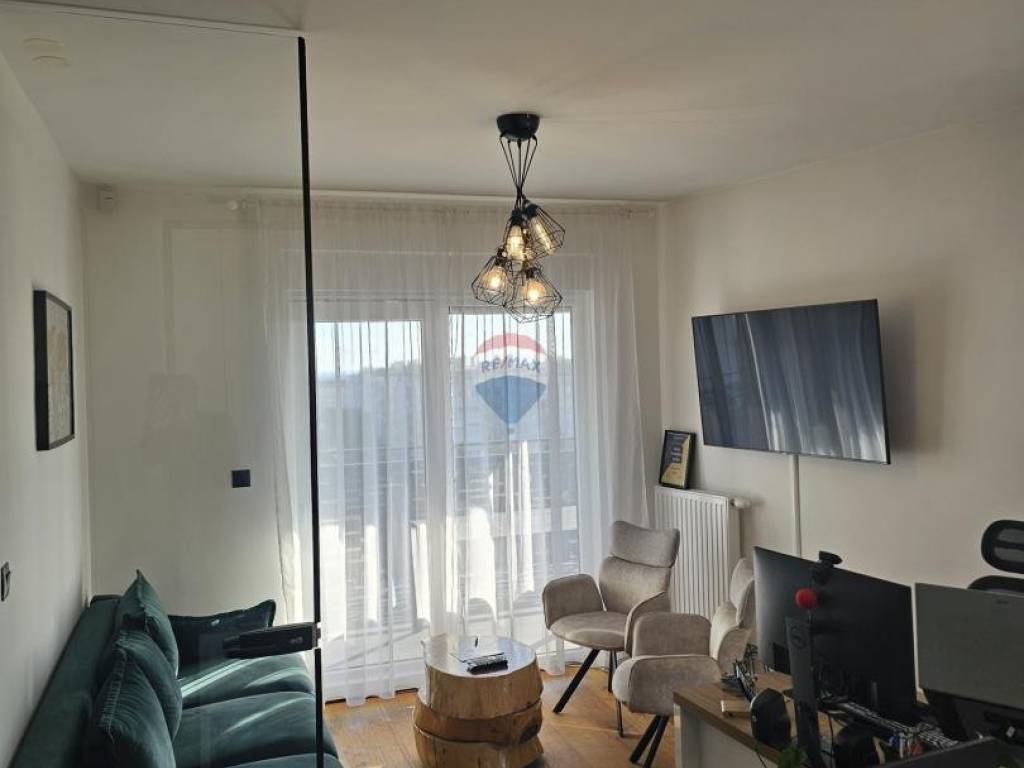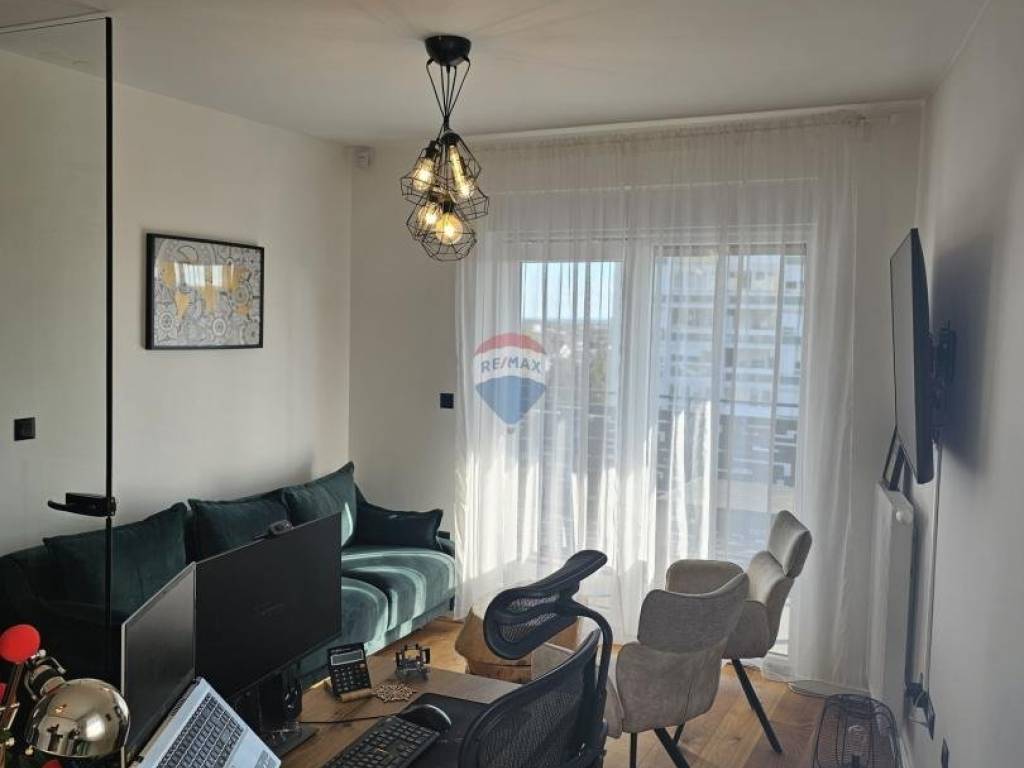 Opremljen je protuprovalnim vratima, alarmnim sustavom i portafonom te se nalazi na 6. katu novogradnje s liftom. U neposrednoj blizini nalaze se tržnica, pošta, trgovine, javni prijevoz, restorani te ostali sadržaji.