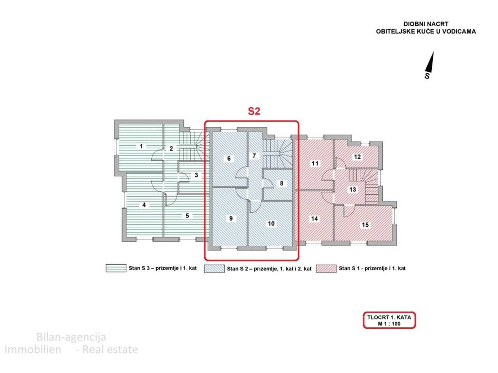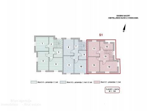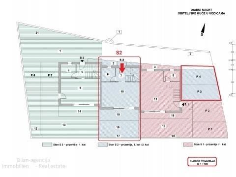On the ground floor of apartment S2 there is a bathroom, living room, dining room, kitchen, stairs to the upper floor.