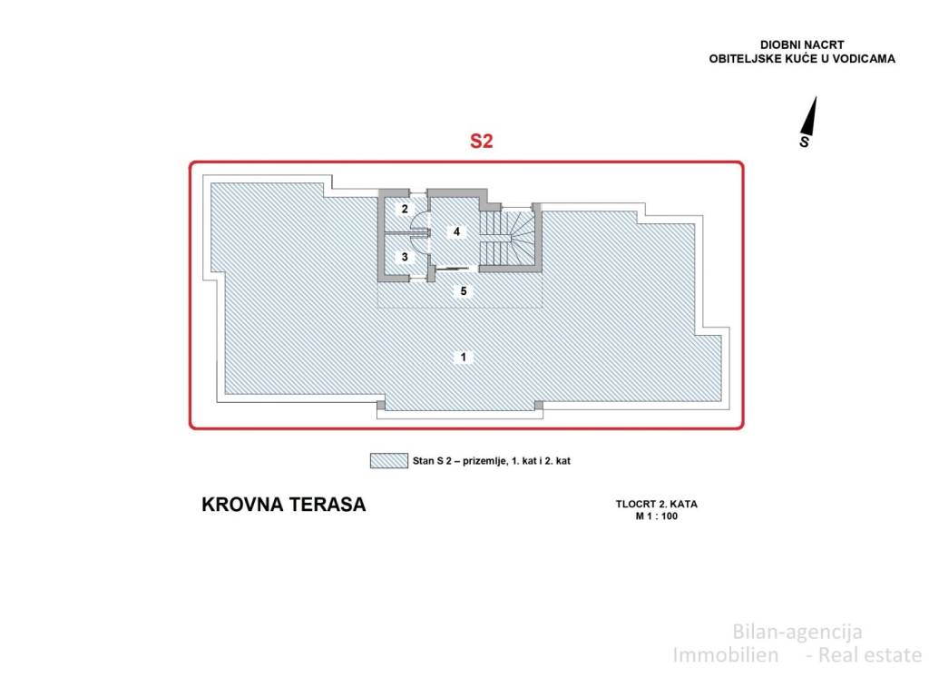 On the second floor there is a spacious terrace with a summer kitchen, bathroom, storage room and a beautiful view of the city, sea and islands.