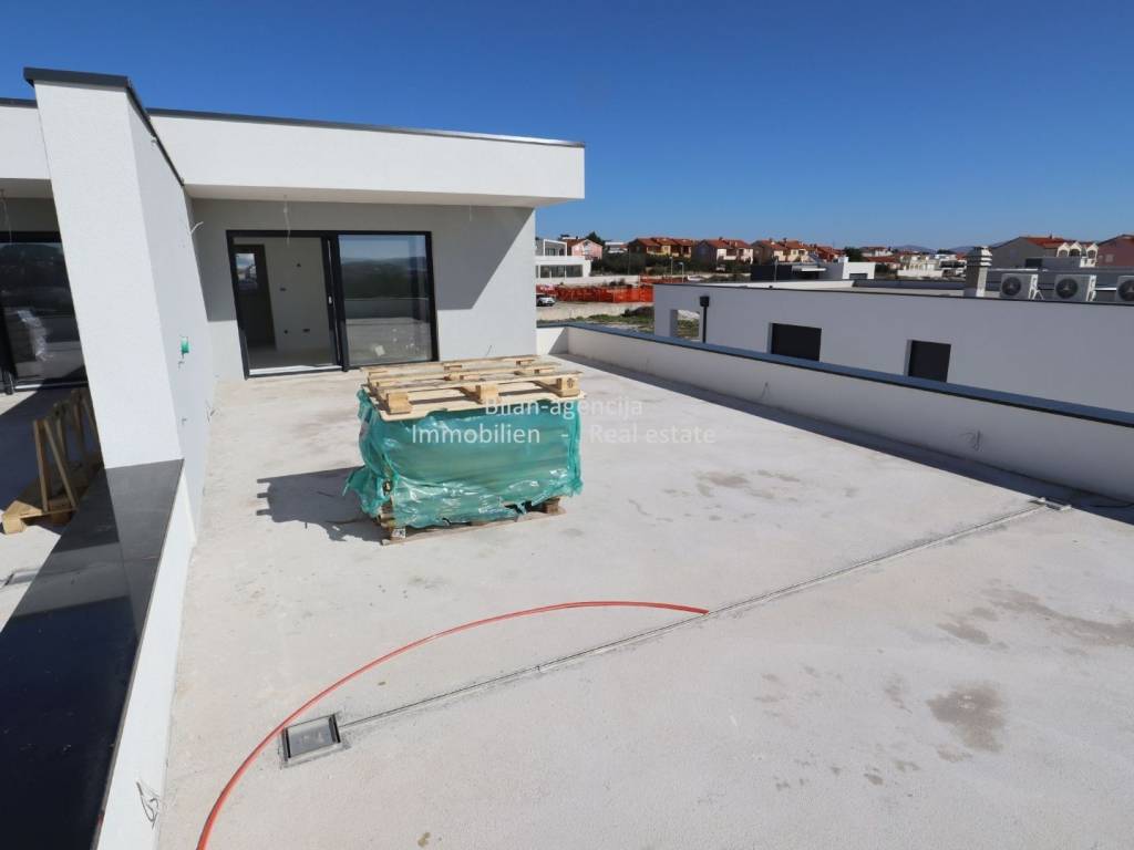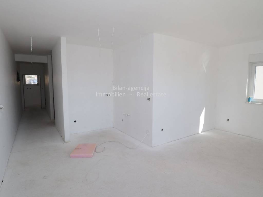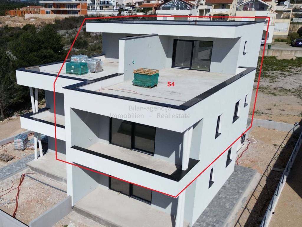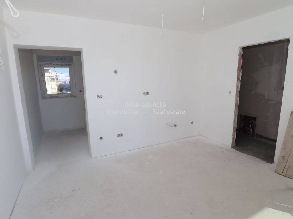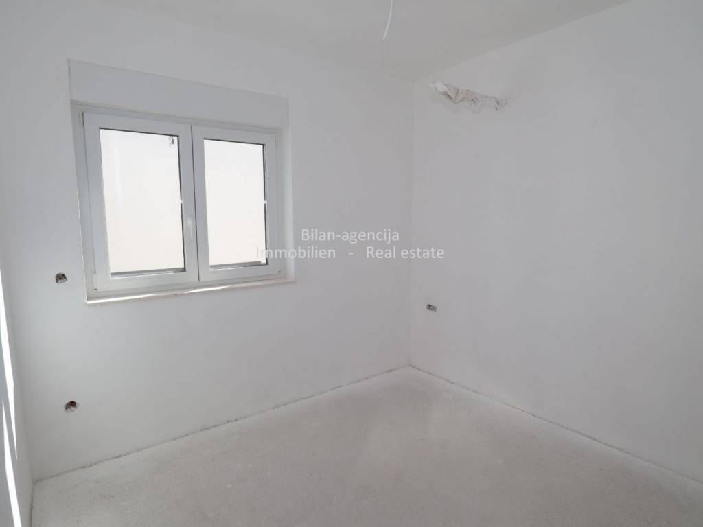 The apartment consists of a kitchen-dining room-living room, bathroom, additional toilet, 2 bedrooms, one covered terrace and stairs. On the flat roof there is a summer kitchen and dining room, toilet, covered and uncovered terrace with a view of the city of Vodice, the sea and the islands.