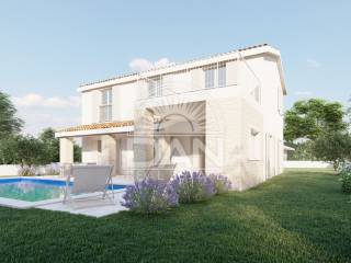 In a quiet village, just a ten-minute drive from Vrsar and its beautiful beaches, this house with a total living area of 140 m² is for sale, set on a 600 m² plot. It is important to note that the property is sold in the roh-bau (unfinished) phase, with all remaining works to be completed by the buyer.