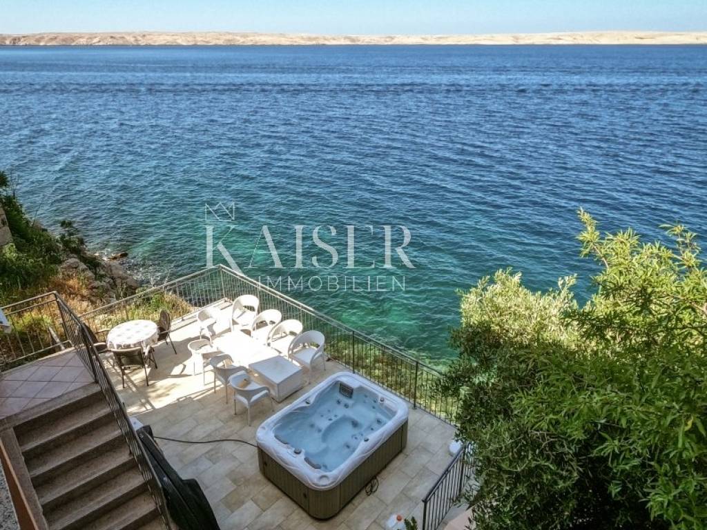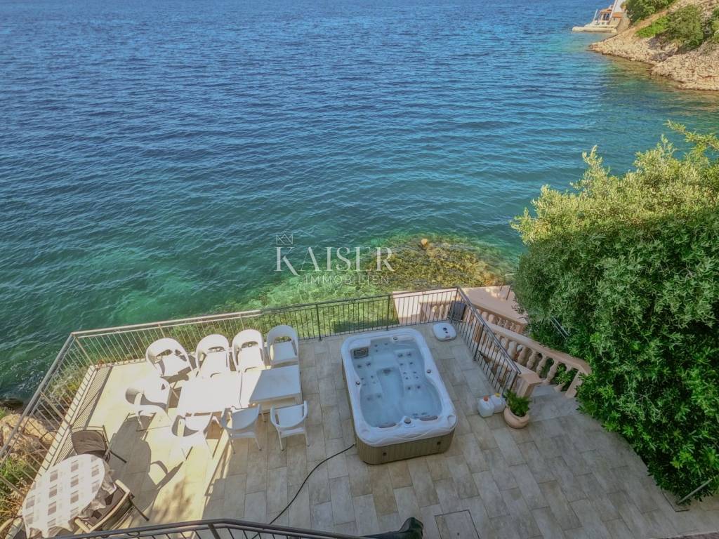 Kaiser Immobilien puts on the market a unique house with private access to the sea. Sitting on the terrace on a nice sunny day and listening to the sound of the waves is something you can afford in this house. This house of 155m2 on two floors has a large terrace on which there is a jacuzzi with a beautiful view of the sea, the interior consists of 5 bedrooms, with balconies that also overlook the sea, and 2 bathrooms. It has a large driveway with 4 private parking spaces. Located in a quiet environment. The house is truly unique and a huge opportunity for an investment or a quiet life by the sea itself.