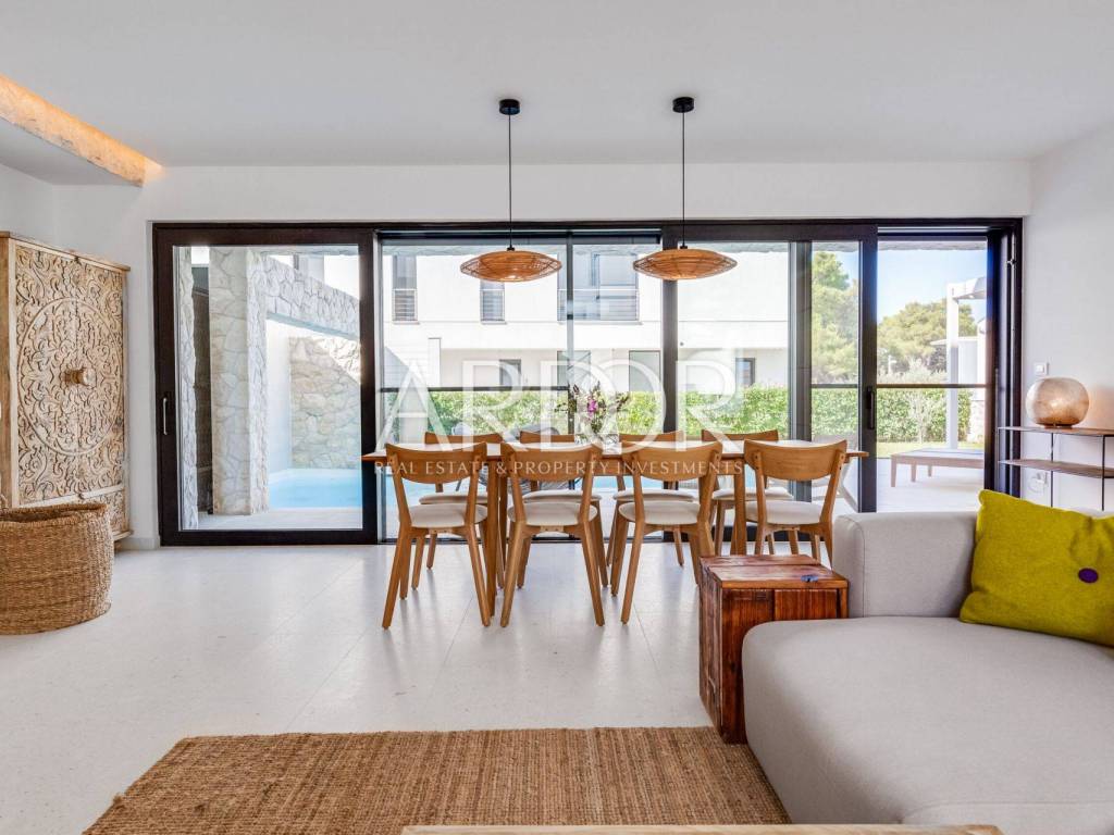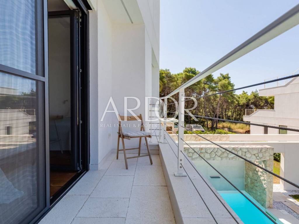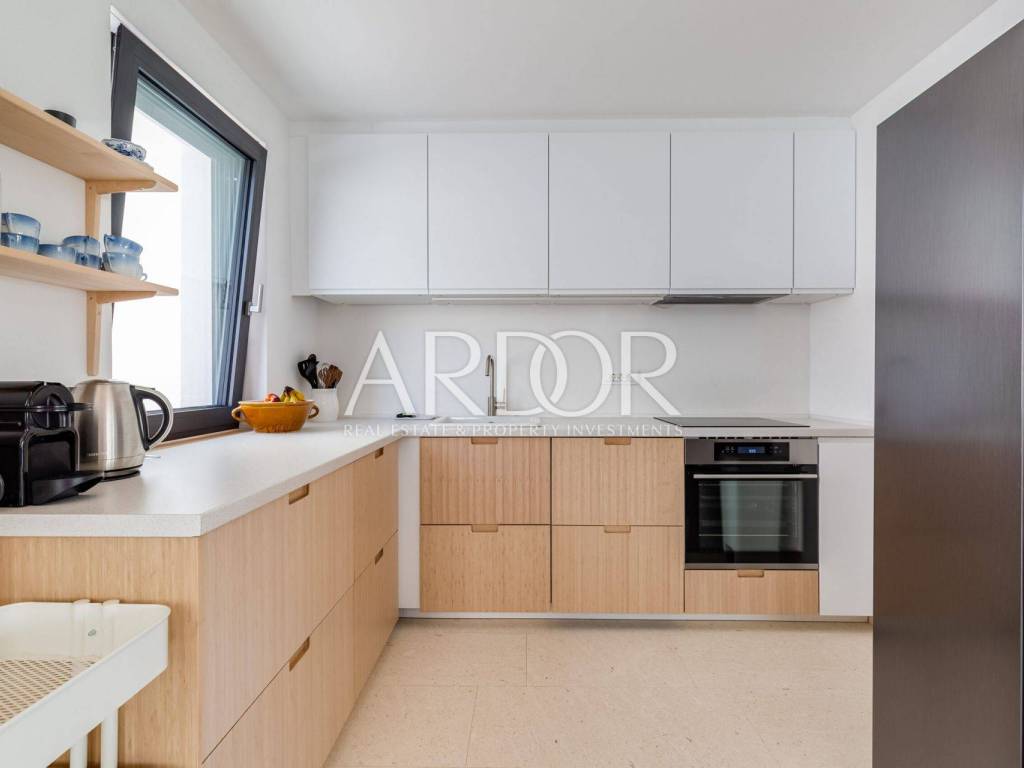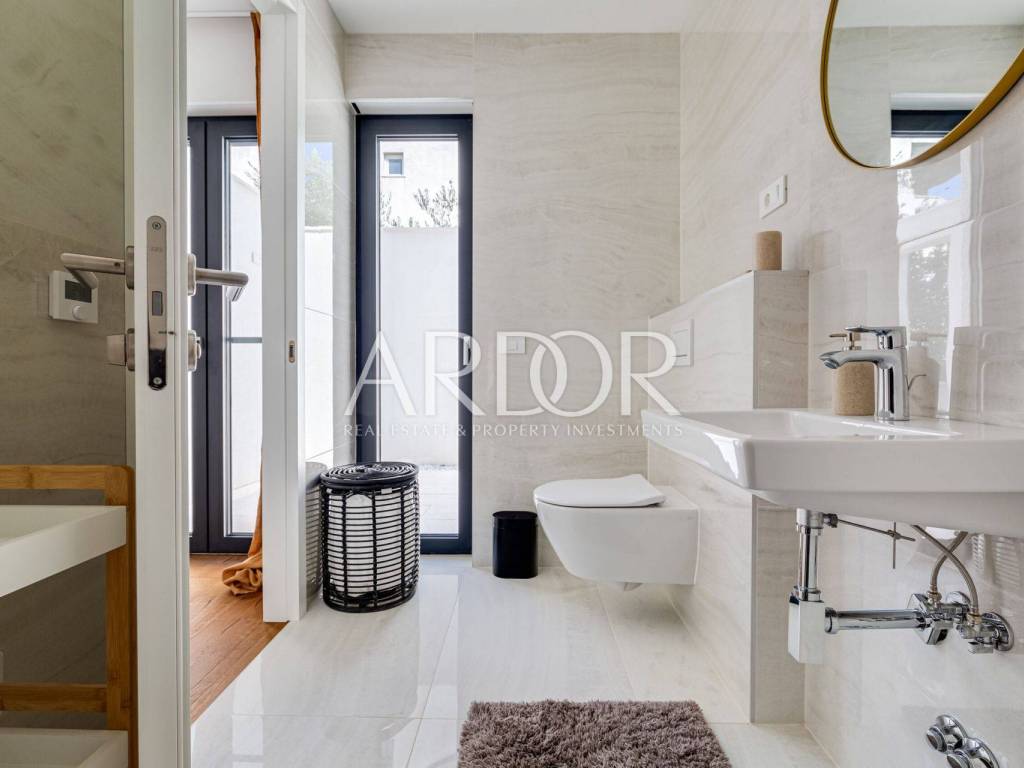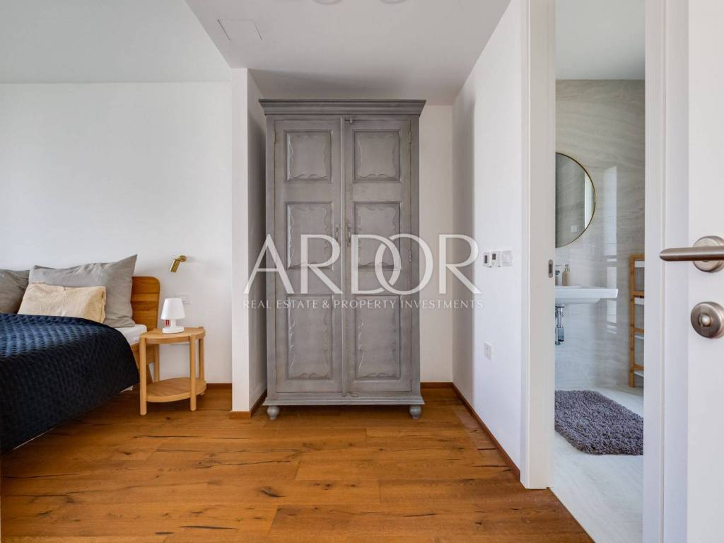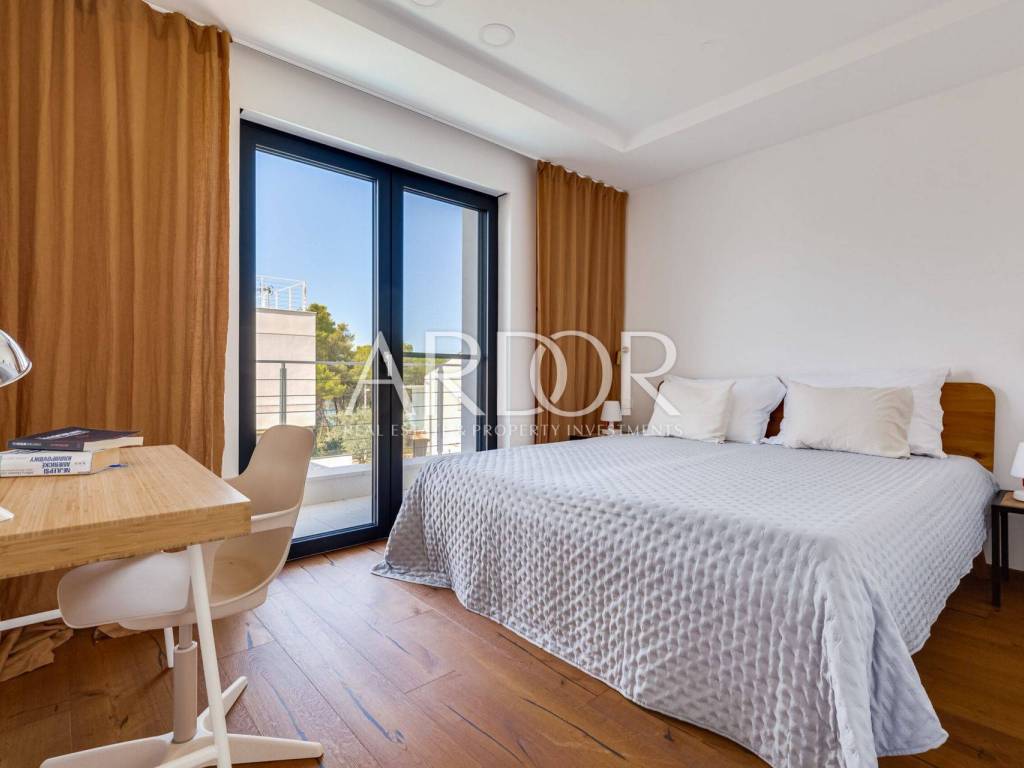 This exclusive, newly built luxury apartment with a private saltwater swimming pool and landscaped garden is located only 170 meters from the sea, in a quiet and peaceful residential area of Zadar.