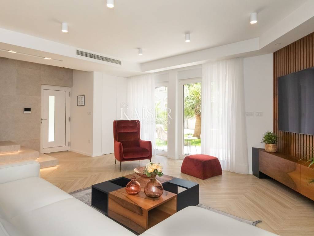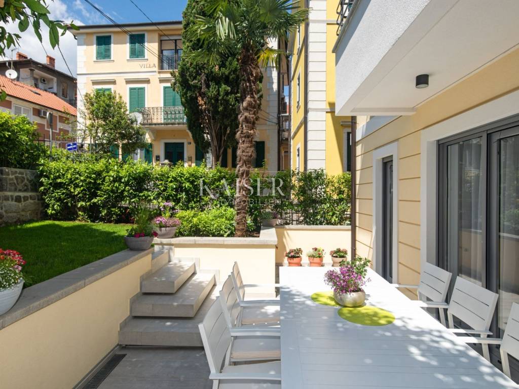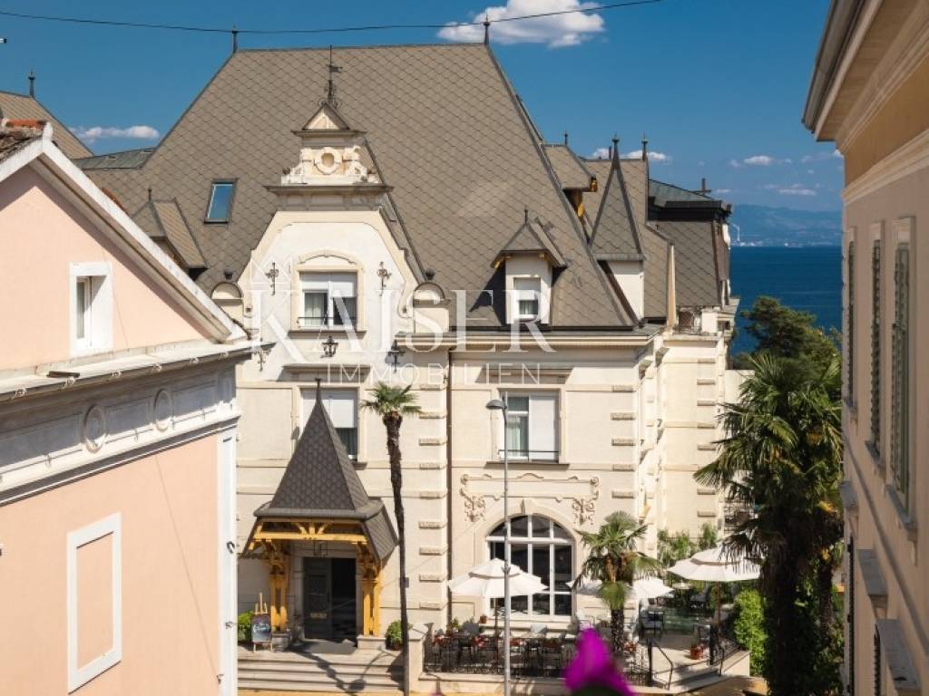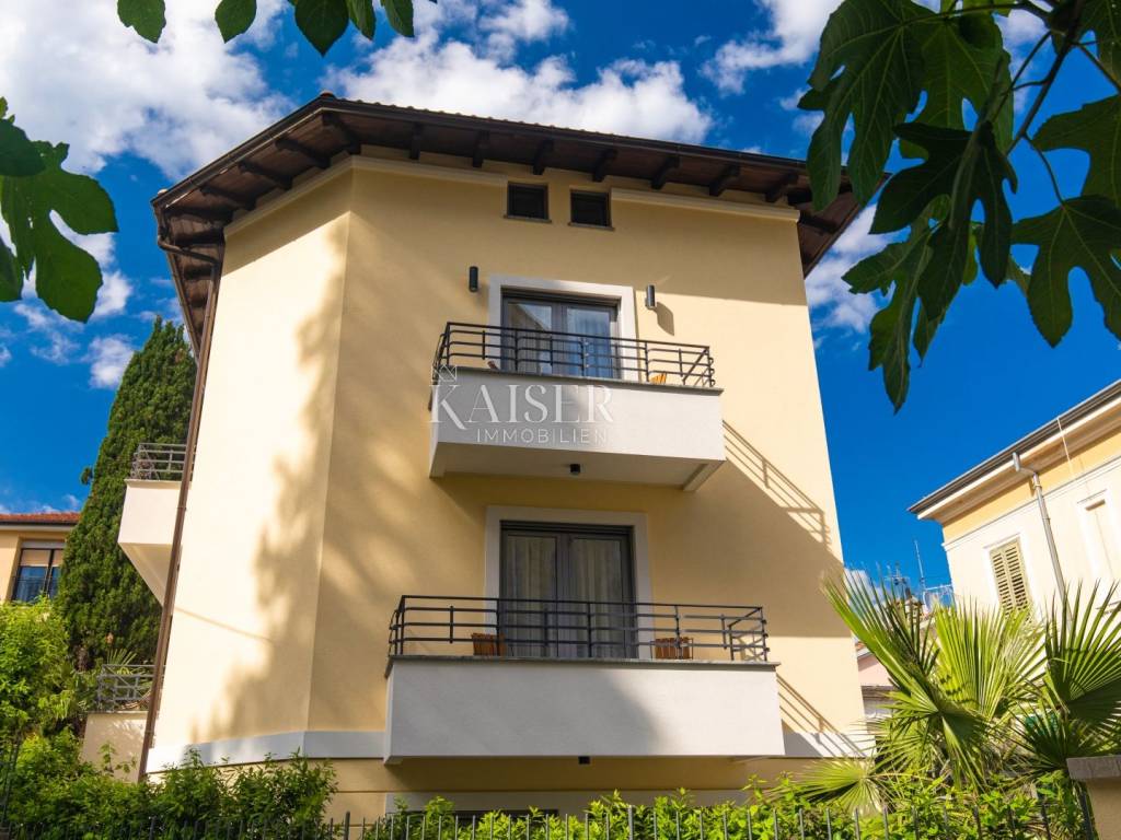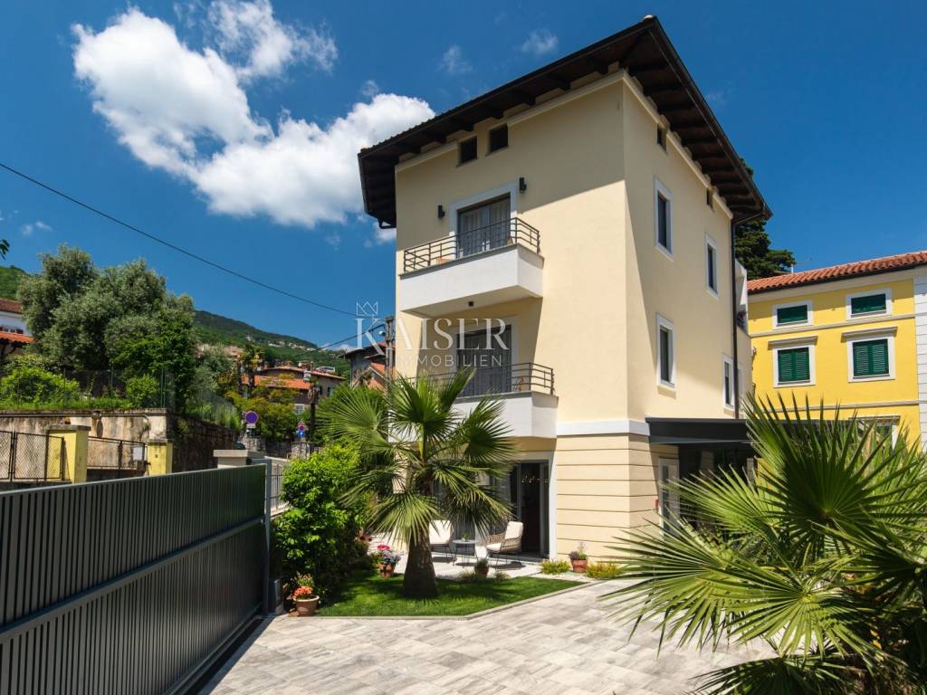 Kaiser Immobilien presents a luxurious villa in an excellent location in the very center of Opatija. Located in picturesque Opatija, this extraordinary villa redefines the art of coastal living. With a living area of 196 square meters and an additional 20 square meters of glass-enclosed conservatory with private jacuzzi, it offers an unparalleled paradise for relaxation and enjoyment. The villa provides an exclusive oasis of refreshment, allowing you to relax in style at any time. Inside the villa, you will be greeted by an interior that radiates light and airy elegance. The use of wood brings a feeling of warmth and comfort, creating a luxurious atmosphere. Every inch of this villa reflects meticulous attention to detail and every element has been carefully selected, which is a testament to the commitment to excellence. As you explore the four bedrooms, you'll notice a charming touch – each with its own unique color palette, which adds a sense of liveliness and playfulness to the entire interior. This thoughtful design choice gives the villa freshness and makes it the perfect villa for those looking for peace and uniqueness. Whether you are relaxing in the sumptuous living room, enjoying the soothing waters of the jacuzzi in the conservatory or simply enjoying the coastal breeze from the terrace, this villa is the perfect blend of modern and traditional.