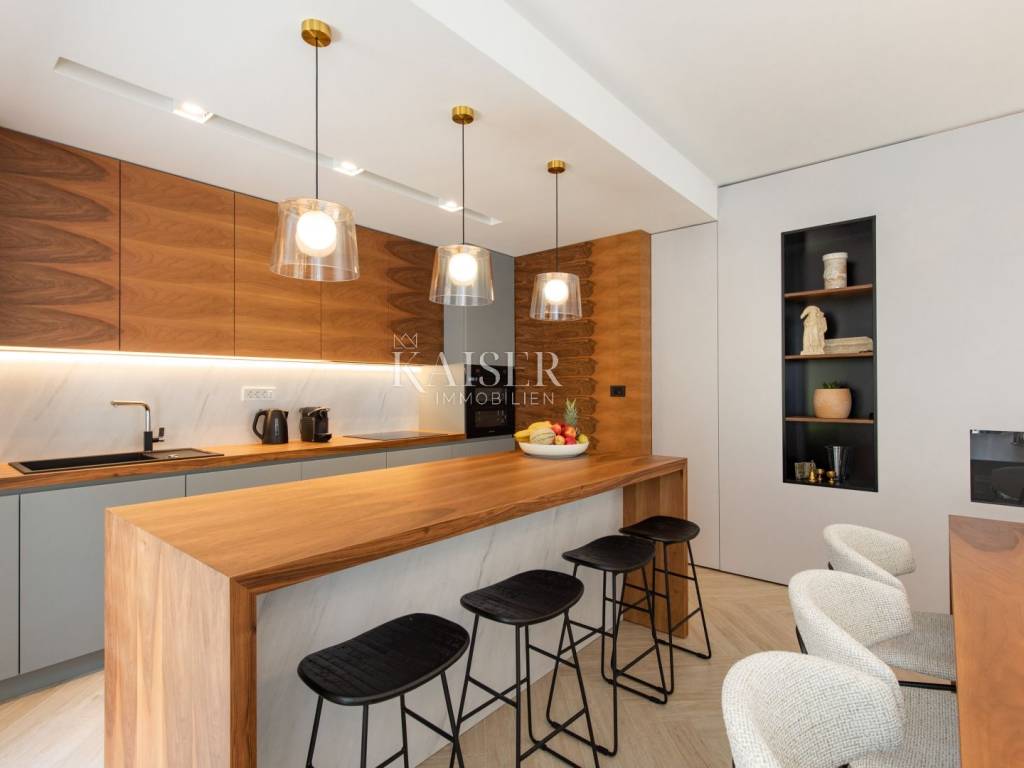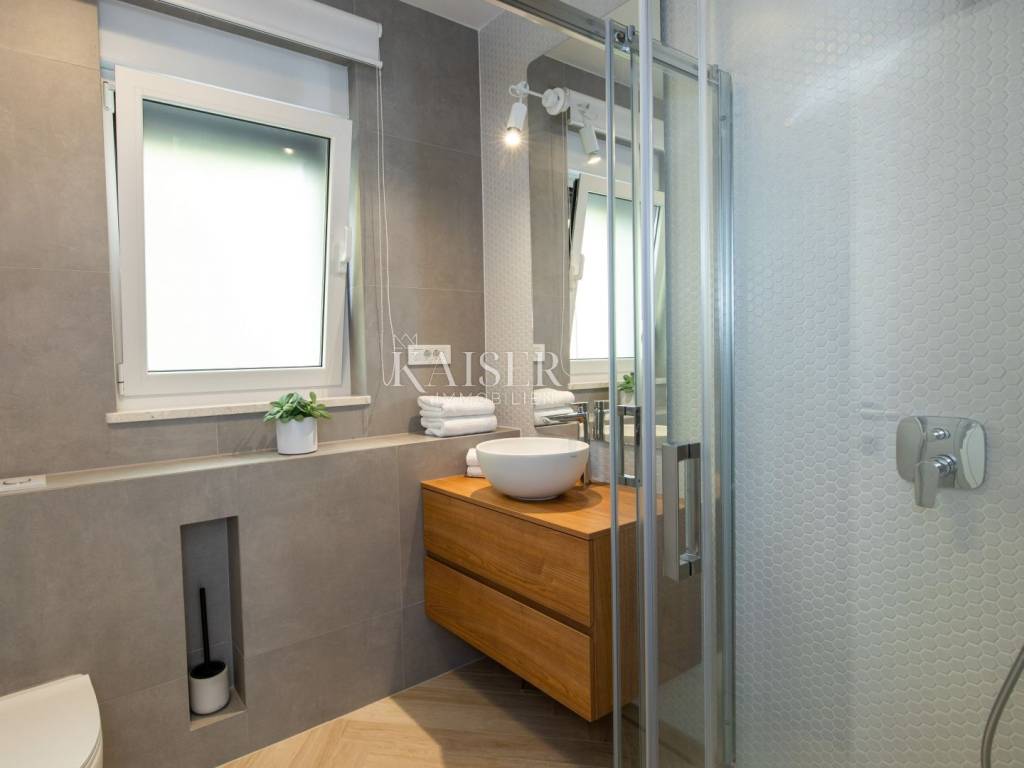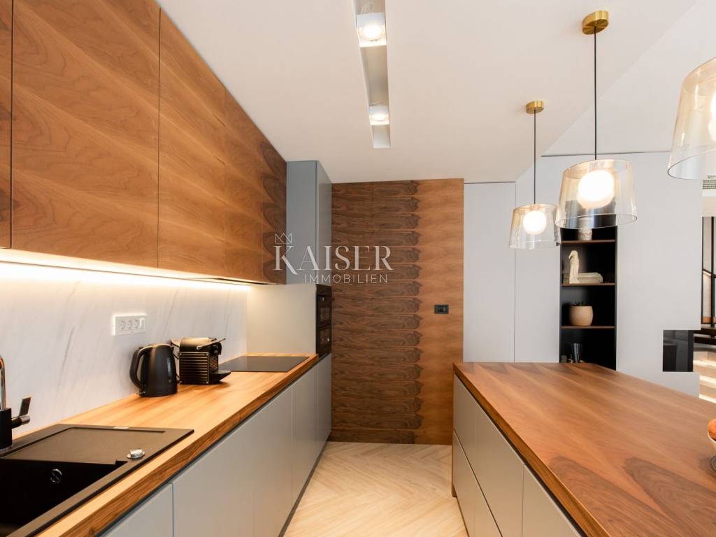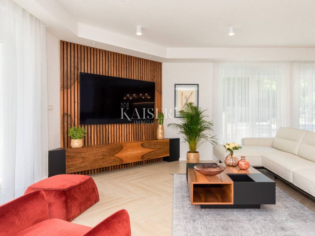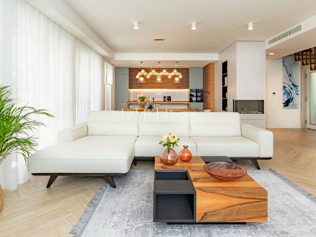 Kaiser Immobilien presents a luxurious villa in an excellent location in the very center of Opatija. Located in picturesque Opatija, this extraordinary villa redefines the art of coastal living. With a living area of 196 square meters and an additional 20 square meters of glass-enclosed conservatory with private jacuzzi, it offers an unparalleled paradise for relaxation and enjoyment. The villa provides an exclusive oasis of refreshment, allowing you to relax in style at any time. Inside the villa, you will be greeted by an interior that radiates light and airy elegance. The use of wood brings a feeling of warmth and comfort, creating a luxurious atmosphere. Every inch of this villa reflects meticulous attention to detail and every element has been carefully selected, which is a testament to the commitment to excellence. As you explore the four bedrooms, you'll notice a charming touch – each with its own unique color palette, which adds a sense of liveliness and playfulness to the entire interior. This thoughtful design choice gives the villa freshness and makes it the perfect villa for those looking for peace and uniqueness. Whether you are relaxing in the sumptuous living room, enjoying the soothing waters of the jacuzzi in the conservatory or simply enjoying the coastal breeze from the terrace, this villa is the perfect blend of modern and traditional.