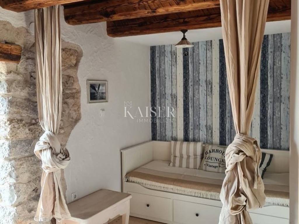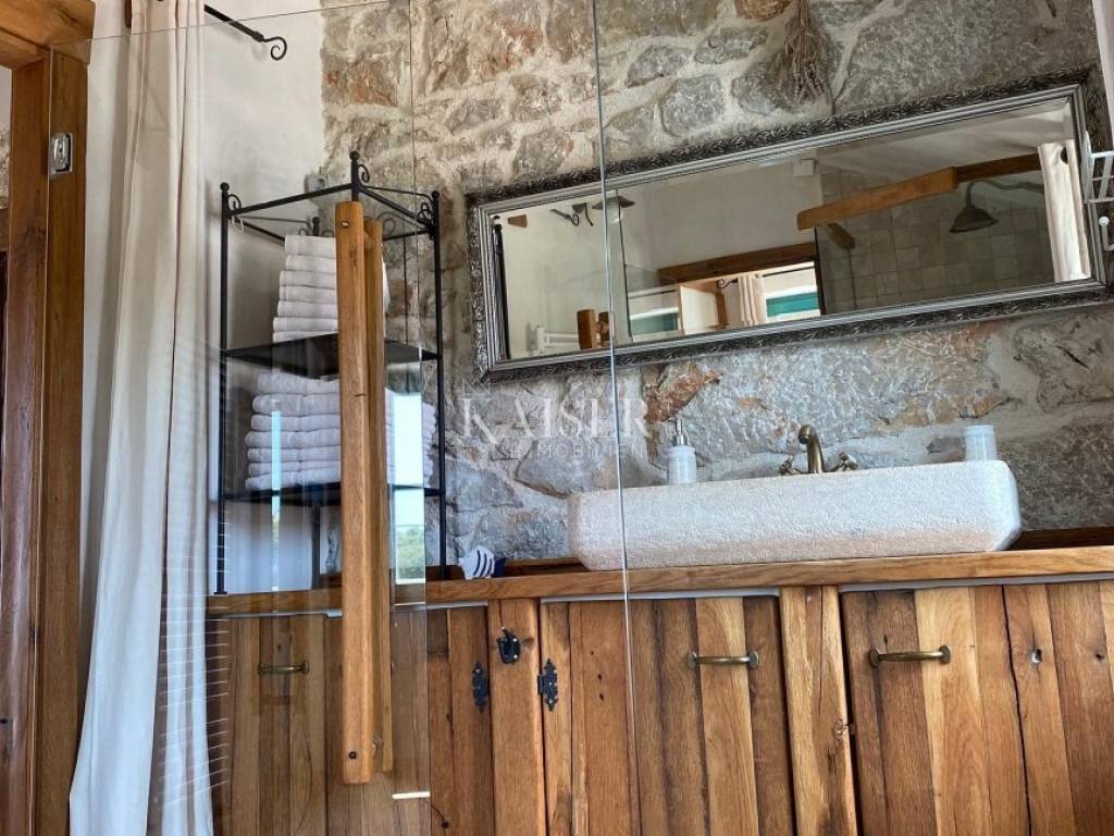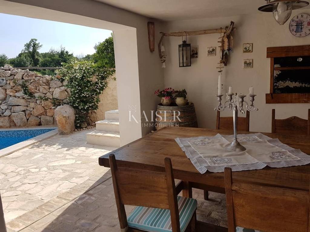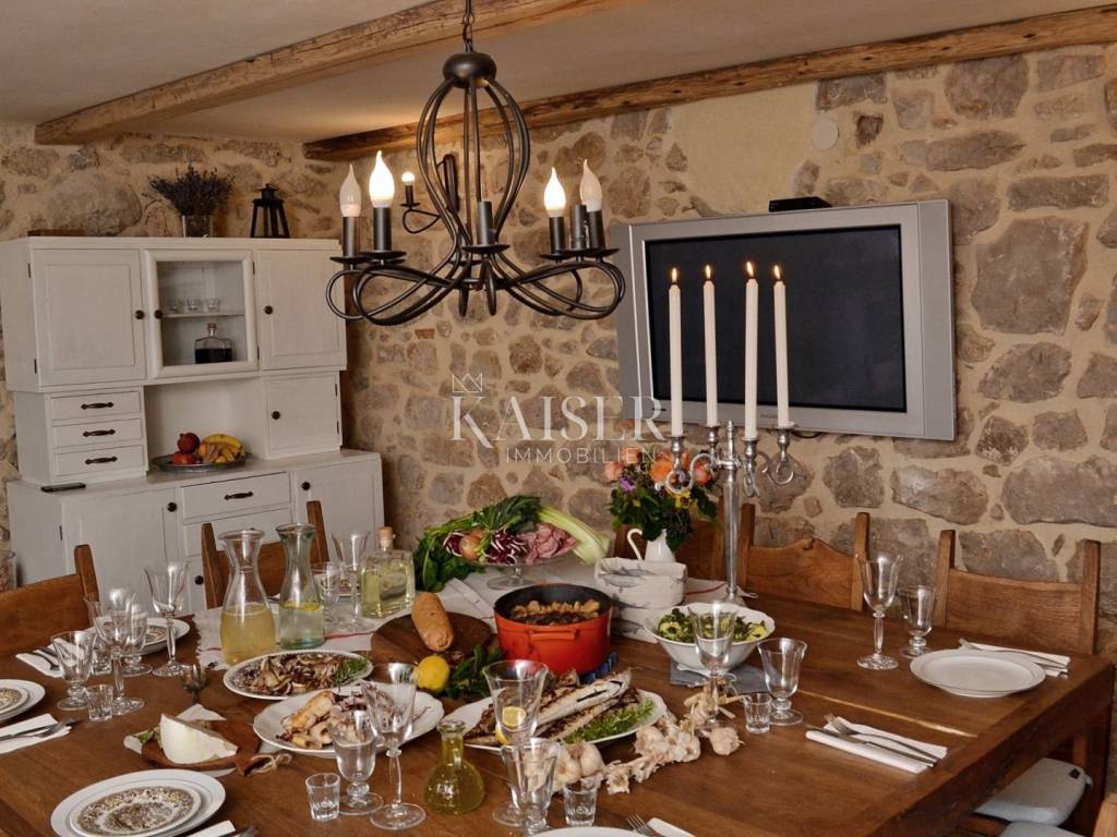 Malinska is located in a bay on the west coast of the island, in an area called Dubašnica, together with 19 smaller settlements. Beaches and small coves with a variety of amenities stretch along the entire Malinska Riviera. Malinska is a great place to live because of its natural beauty, rich cultural heritage, good connections to the mainland and essential amenities. Kaiser Immobilien presents this authentic, completely renovated stone house located in a quiet village near Malinska. With a total area of 120 m², this property perfectly combines traditional construction and rustic comfort, providing an ideal place to relax or live on the island of Krk. Spacious Interior Spaces The house is carefully designed and functionally arranged over several floors. It includes three closed bedrooms, with additional options for accommodating two double beds in spacious hallways. There are a total of two bathrooms and an additional toilet on the ground floor. Stone as the main building element, along with natural materials such as oak, has been preserved in order to maintain the authentic island charm. The ground floor is equipped with a fully functional kitchen with professional appliances and a dining room, decorated in the style of a traditional tavern with a fireplace and a large dining table, making it the perfect space for socializing with friends. External stairs connect the first floor, which has a bedroom with an additional double bed, sofa, TV and bathroom, and access to a spacious terrace of approx. 15m2. On the second floor there is another bedroom with its own bathroom and living room, while in the high attic there are two additional bedrooms. The entire interior is exceptionally well maintained and equipped with luxurious and high-quality furniture. Heating and cooling are provided by a heat pump, underfloor heating in the tavern and bathrooms, and air conditioning on all floors. The stone fireplace in the tavern brings a special ambiance, while the space below allows for additional conversion into a wine cellar or sauna. Exterior Amenities The 140m2 courtyard is fenced and decorated with Mediterranean plants, including a magnificent 350-year-old olive tree. In the corner of the garden is a 5x3.5 meter swimming pool with an automated maintenance system. The spacious terrace is ideal for socializing and relaxing. Although the parking space was converted into a garden during the renovation, the buyer will receive the right to use two parking spaces located directly across the entrance with the house. Special Advantages The house has proper ownership documentation, a use permit and a class B energy certificate. It is fully connected to the infrastructure that is currently available (electricity, water and telecommunications), while the construction of the sewage system is underway. With no encumbrances or mortgages, the property offers an opportunity for immediate use, whether for personal needs or tourist rental. It is rented to tourists and there is a possibility of continuing the business by taking over clients, even with the help of the current owners. Thanks to its charm, quality equipment and quiet location, the house has already gained excellent reviews. View and Location Located in a row, the house offers a view of beautiful arable land and nature, while the attic offers a view of the sea. Its quiet location near the center of Malinska allows quick access to all important amenities, while ensuring privacy and safety for children and pets. This property represents the perfect blend of tradition and practicality, providing a unique opportunity for living or investing in one of the most peaceful places on the island of Krk. Proximity to amenities: Restaurant: 950 m Shop: 2 km Bakery: 2.7 km Beach: 2.7 km Center of Malinska: 2.8 km Doctor: 2 km Bank: 2 km Bus station: 900 m Gas station: 1.7 km Distance to major cities: Malinska-> Ljubljana: 150 km Malinska-> Budapest: 500 km Malinska-> Munich: 550 km Malinska-> Vienna: 520 km Malinska-> Prague: 850 km The agency commission for the buyer is 3% + VAT and is paid in the case of purchasing a property, upon conclusion of the first legal act. ID-CODE: 127-053 If you would like to visit the property in person, please contact: Jennifer Hofmann E-mail: jennifer@kaiser-immobilien.hr Tel: +385-91-515-0887 http://kaiser-immobilien.hr/