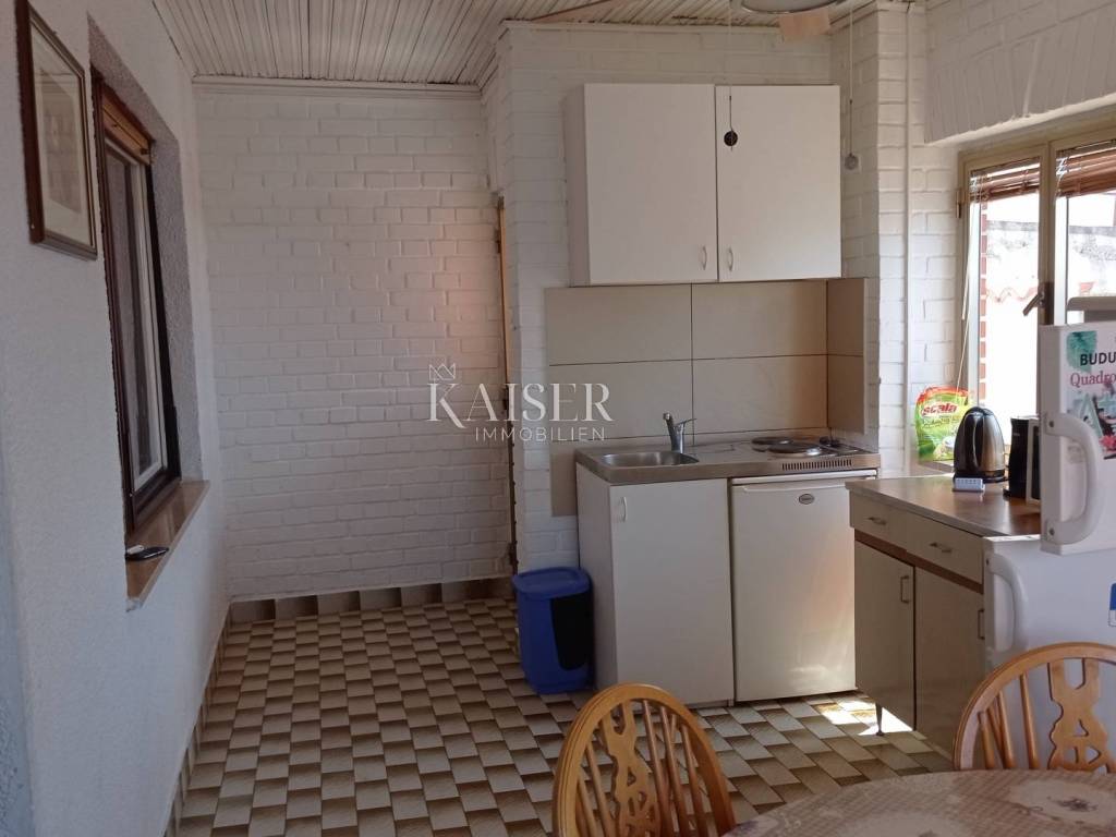 Kaiser Immobilien presents a house with three apartments and a beautiful panoramic view in Senj. The house is located in a beautiful and quiet location, and consists of three residential units. The basement consists of a hallway, a room, a kitchen, a dining room, a bathroom and a toilet, as well as a veranda and a garden of 10 m2. On the ground floor there are three rooms, living room, kitchen, dining room, two bathrooms and two terraces of 6 and 8 m2. The first floor is unfurnished, has 50 m2, and a large terrace of 30 m2, so the buyer has the option to arrange the floor according to his wishes. A property worthy of attention. The documentation is in order. Feel free to contact me.