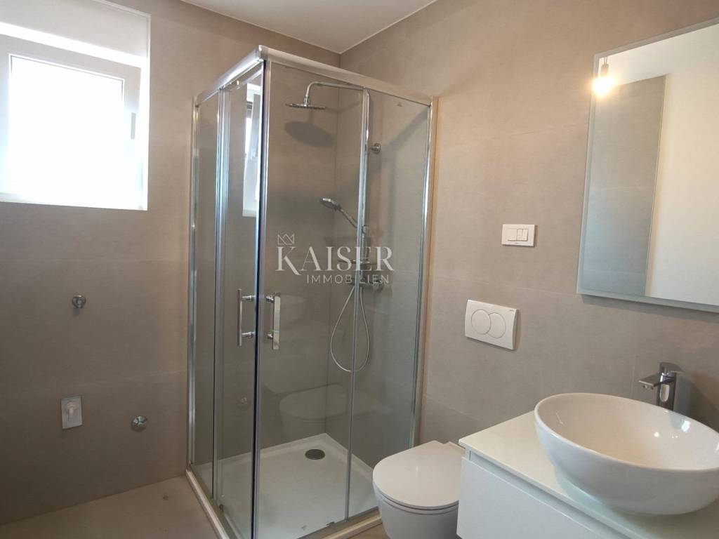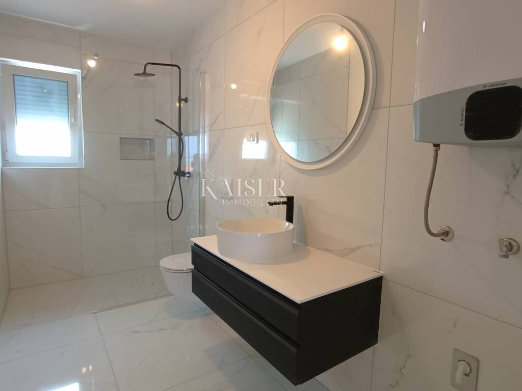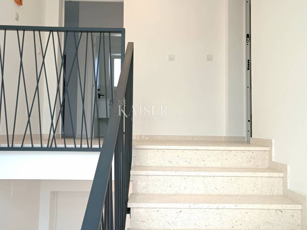 Malinska is located in the bay of the west coast of the island, in the area called Dubašnica, together with 19 smaller settlements. Beaches and small bays with a variety of facilities stretch along the entire Malinska Riviera. Malinska is a great place to live because of its natural beauty, rich cultural heritage, good connection with the mainland and essential life amenities. The real estate agency Kaiser Immobilien presents you with a unique opportunity to purchase two separate apartments, located in a multi-family building, which are sold together. The apartment consists of one smaller and one larger apartment spread over two floors. A smaller apartment, 36 m², is located on the ground floor. This apartment includes a bathroom with toilet and shower, one bedroom of 11 m², open living room with kitchen and dining room and access to the terrace and garden of 35 m². This is the only apartment in the building that has a storage room. The larger apartment, with an area of 71 m², is located on the second floor and is connected to the smaller apartment by an internal staircase. This apartment consists of a spacious and bright living room, kitchen and dining room in one room with access to a covered terrace of 7 m² with a view of the sea. In addition, the apartment has two bedrooms, a bathroom with shower and toilet, and another separate toilet. It should be noted that the building, i.e. the apartment, was built in 2024, which means that it is equipped with the latest standards of construction and technology, such as air conditioners in every room, heat pumps, i.e. electric underfloor heating that ensures an optimal temperature throughout the year, anti-burglary doors, contact facade, electric blinds, etc...In addition, each apartment is equipped with mosquito nets, which further increases comfort and practicality. The owner of these apartments has two parking spaces, providing security and ease of parking, and a 35m² garden with access to the parking lot. This property is a perfect offer for multi-member families looking for a modern and comfortable living space in a quiet location not far from the sea, but also for people who want to rent one of the apartments, offering a great investment opportunity. Proximity to amenities: Restaurant: 450m Shop: 450m Bakery: 500m Beach: 1km Center of Malinska: 2km Doctor: 1.3 km Bank: 1.5 km Distance between major cities: Malinska- Ljubljana: 150 km Malinska- Budapest: 500 km Malinska- Munich : 550 km Malinska- Vienna: 520 km Malinska- Prague: 850 km Agency commission for the buyer is 3% + VAT and is paid in case of real estate purchase, at the conclusion of the first legal act. ID-CODE: 127-009 If you want to visit the property in person, please contact: Jennifer Hofmann E-mail: jennifer@kaiser-immobilien.hr Tel: +385-91-515-0887 http://kaiser-immobilien.hr/