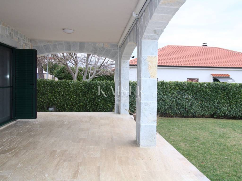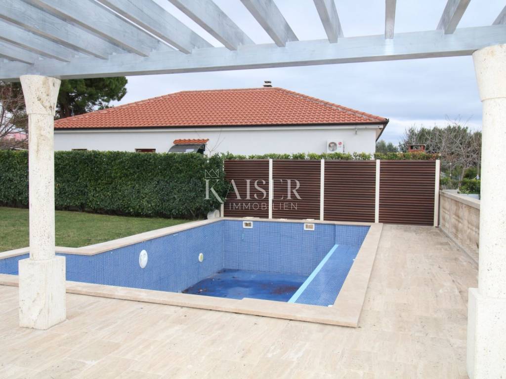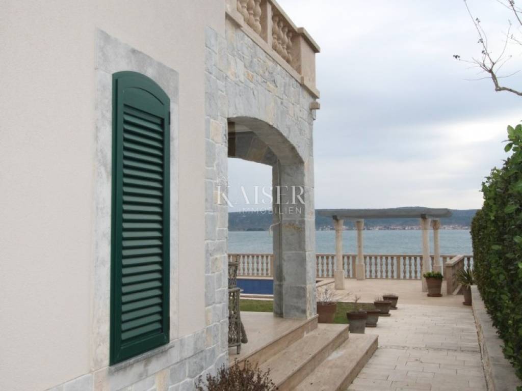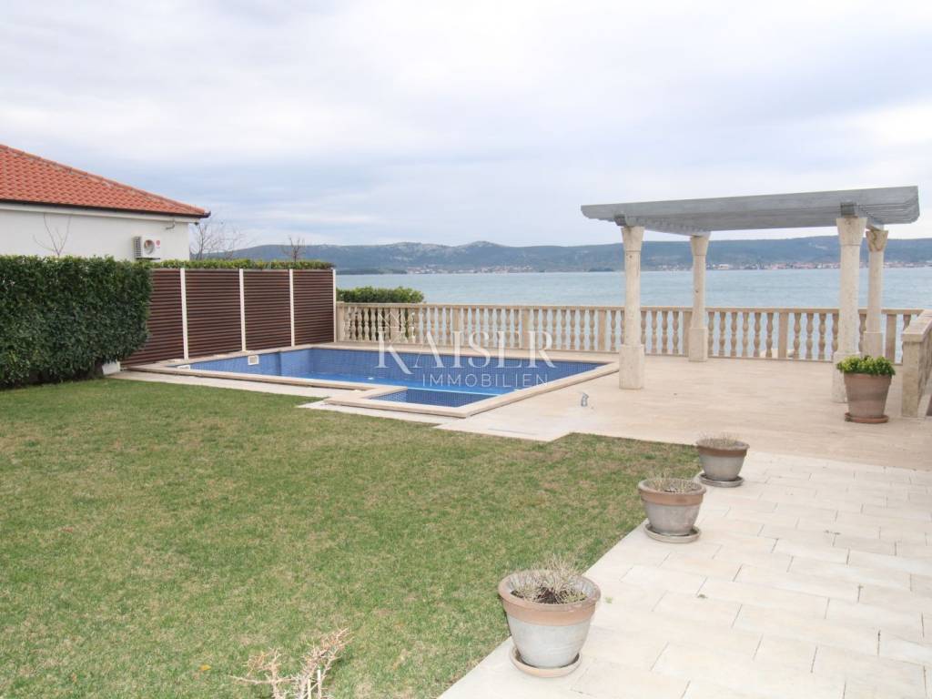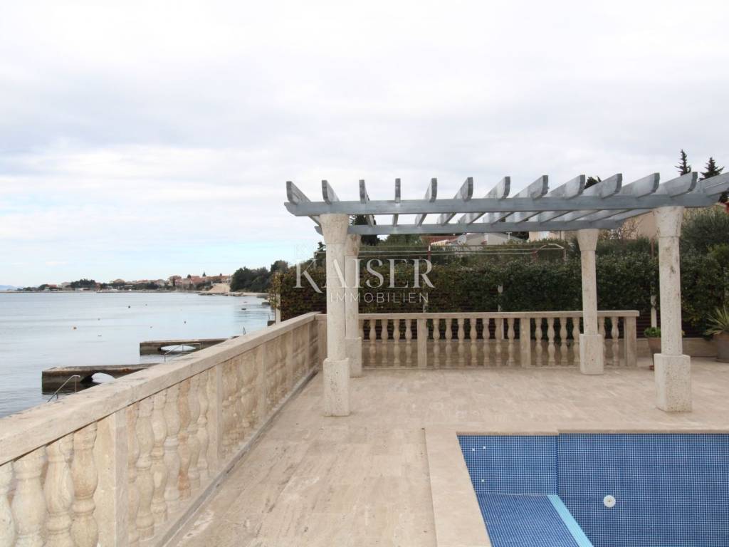 Kaiser Immobilien presents: Exclusive villa on the beach with swimming pool and olive grove Hidden from the hustle and bustle of everyday life, in the first row to the sea, lies this beautiful villa - a combination of luxury, intimacy and Mediterranean charm. Surrounded by lush greenery, olive trees, fruit trees and a fragrant lawn, this luxurious and spacious property offers a peaceful living space, far from the hustle and bustle of the city. Upon arrival, automated wrought iron gates open up a view of the paved stone path, which winds through a carefully landscaped garden with century-old olive trees. At the entrance to the property there are two parking spaces and a spacious garage with a remote-controlled door. The covered entrance of the villa leads to a spacious hallway, where top-quality construction details have been carefully incorporated, such as furniture made of quality materials, PVC joinery for sound and heat insulation, heated floors made of top-quality shiny ceramics. This two-story beauty has been carefully designed to provide maximum comfort and elegance. Upstairs there are two spacious master bedrooms with private bathrooms, each with access to a terrace. It offers a mesmerizing view of the open sea, nearby islands and the promenade that follows the coast. There is also a laundry room on the first floor. Stairs lined with real parquet lead down to the ground floor. Here is another spacious master bedroom with its own bathroom, a toilet in the hallway, while the heart of the home is the kitchen with an island and a dining room, connected to a luxurious living room. A large wood-burning fireplace dominates here, creating a special atmosphere, while the entire space opens to the garden through imposing glass walls, revealing a spectacular view of the sea. The garden is a true masterpiece - a carefully maintained lawn surrounds a spacious swimming pool with a shallow and deep part of 1.5 m, the pool area is 12.40 m², located at the very edge of the property, from where there is an unobstructed view of the sea coast. Next to the pool is an elegant covered terrace with a pergola, perfect for relaxing in the shade with a light breeze and the sound of the waves. The garden also features a traditional stone fireplace, ideal for enjoying gastronomic moments under the open sky. Two functional basements give the property special value - one located under the garden with installations for the pool, and the other under the house itself, ideal for storage. The villa is completely surrounded by a high hedge, providing complete privacy, while direct access to the beach allows for unhindered enjoyment of the charms of the sea. Total square footage of the house: 257.55 m². The ground floor has a total closed area of 116.35 m². The first floor (attic) has a total closed area of 73.35 m². The terrace on the ground floor is 47.14 m². The terrace on the first floor: 20.71 m². Ground floor - 116.35 m² - closed space. Living room + dining room - 45.47 m². Kitchen - 9.10 m². Bedroom - 14.08 m². Bathroom in the bedroom - 4.21 m². Toilet in the hallway - 2.80 m². Hallway + staircase - 15.71 m². Technical room - 4.48 m². Garage - 22.79 m². Attic - 73.35 m² - closed space. Bedroom 1 - 25.21 m². Bedroom 2 - 26.38 m². Bathroom 1 - 6.90 m². Bathroom 2 - 4.10 m². Hallway - 3.56 m². Storage room / cloakroom - 2.90 m². Staircase - 4.30 m². Terraces - total 67.85 m² Ground floor terrace – 47.14 m² Mansard terrace – 20.71 m² Ownership and all documentation in order and free of encumbrances. Sveti Petar na Moru is a picturesque and peaceful tourist resort located between Zadar and Biograd na Moru, in Zadar County. The town was named after the 18th century church of St. Peter the Apostle, which dominates the view of the town. A special attraction is the village well from 1911, which still provides drinking water today. Pašman Island: about 4 km away Zadar: 20 km Zadar Airport: 15 km from Biograd na Moru: 10 km Split: 120 km Zagreb: 300 km A1 motorway (exit Zadar 2): 25 km For more information and to arrange a viewing, please contact the agent. Tel.: 00385992510230 Email: marijana.papic@kaiser-immobilien.hr