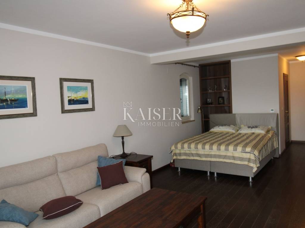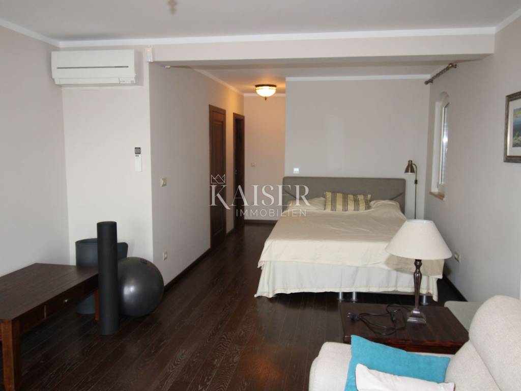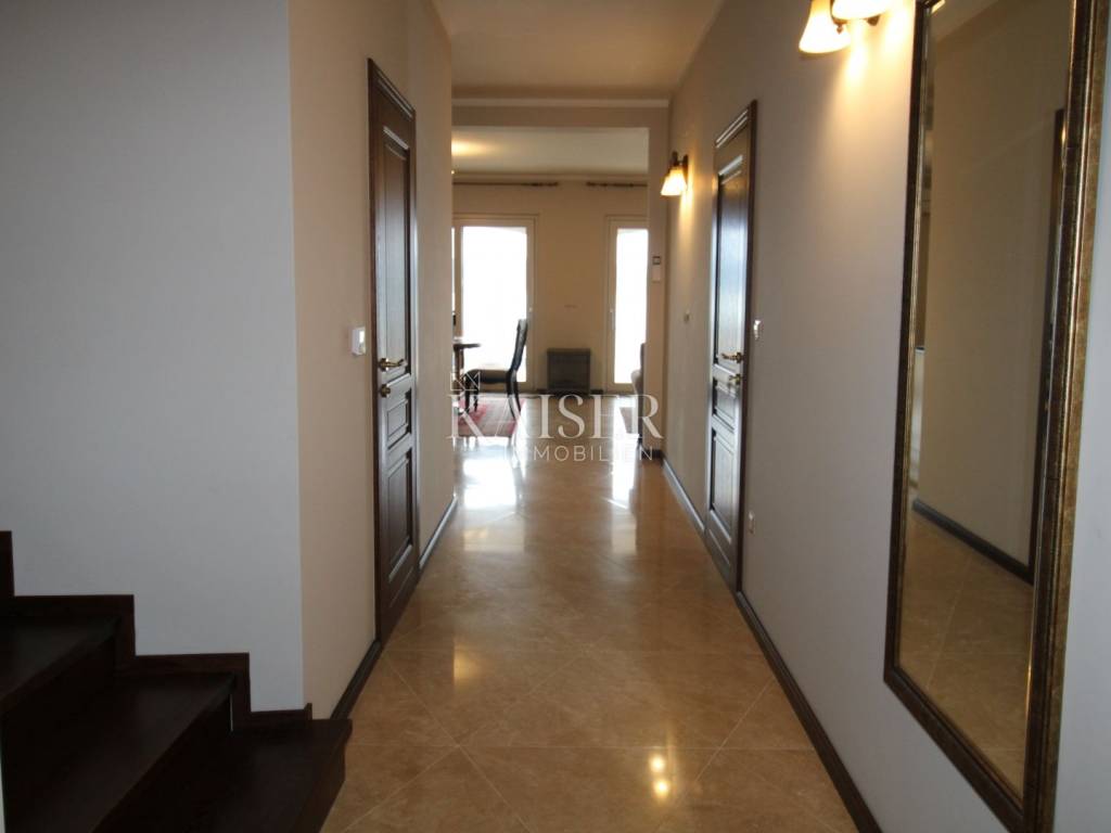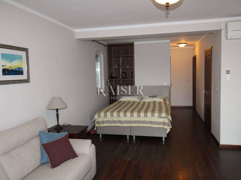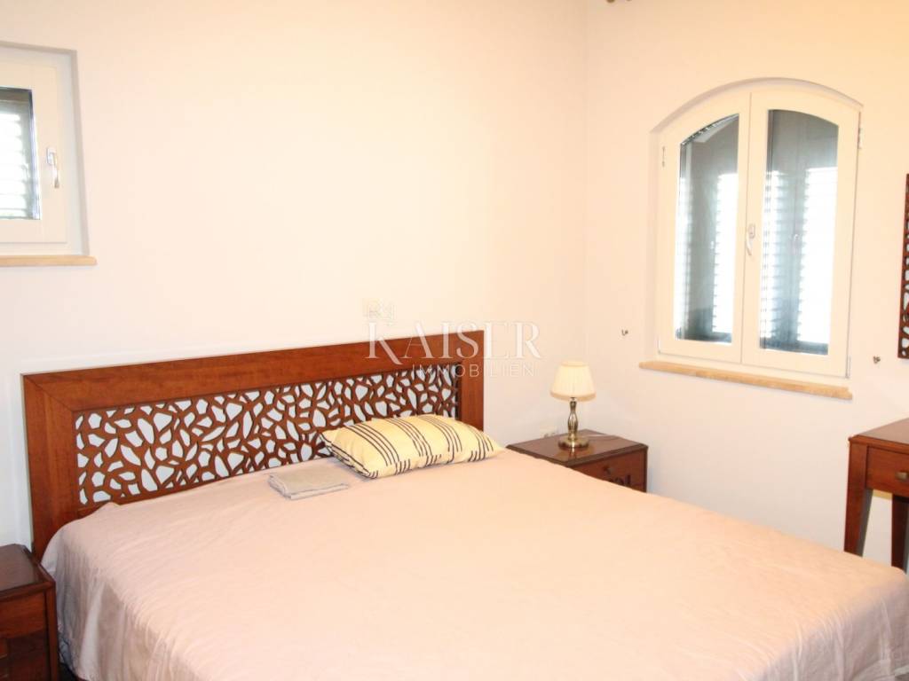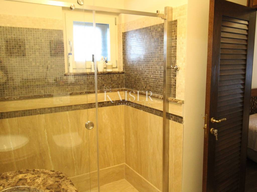 Kaiser Immobilien presents: Exclusive villa on the beach with swimming pool and olive grove Hidden from the hustle and bustle of everyday life, in the first row to the sea, lies this beautiful villa - a combination of luxury, intimacy and Mediterranean charm. Surrounded by lush greenery, olive trees, fruit trees and a fragrant lawn, this luxurious and spacious property offers a peaceful living space, far from the hustle and bustle of the city. Upon arrival, automated wrought iron gates open up a view of the paved stone path, which winds through a carefully landscaped garden with century-old olive trees. At the entrance to the property there are two parking spaces and a spacious garage with a remote-controlled door. The covered entrance of the villa leads to a spacious hallway, where top-quality construction details have been carefully incorporated, such as furniture made of quality materials, PVC joinery for sound and heat insulation, heated floors made of top-quality shiny ceramics. This two-story beauty has been carefully designed to provide maximum comfort and elegance. Upstairs there are two spacious master bedrooms with private bathrooms, each with access to a terrace. It offers a mesmerizing view of the open sea, nearby islands and the promenade that follows the coast. There is also a laundry room on the first floor. Stairs lined with real parquet lead down to the ground floor. Here is another spacious master bedroom with its own bathroom, a toilet in the hallway, while the heart of the home is the kitchen with an island and a dining room, connected to a luxurious living room. A large wood-burning fireplace dominates here, creating a special atmosphere, while the entire space opens to the garden through imposing glass walls, revealing a spectacular view of the sea. The garden is a true masterpiece - a carefully maintained lawn surrounds a spacious swimming pool with a shallow and deep part of 1.5 m, the pool area is 12.40 m², located at the very edge of the property, from where there is an unobstructed view of the sea coast. Next to the pool is an elegant covered terrace with a pergola, perfect for relaxing in the shade with a light breeze and the sound of the waves. The garden also features a traditional stone fireplace, ideal for enjoying gastronomic moments under the open sky. Two functional basements give the property special value - one located under the garden with installations for the pool, and the other under the house itself, ideal for storage. The villa is completely surrounded by a high hedge, providing complete privacy, while direct access to the beach allows for unhindered enjoyment of the charms of the sea. Total square footage of the house: 257.55 m². The ground floor has a total closed area of 116.35 m². The first floor (attic) has a total closed area of 73.35 m². The terrace on the ground floor is 47.14 m². The terrace on the first floor: 20.71 m². Ground floor - 116.35 m² - closed space. Living room + dining room - 45.47 m². Kitchen - 9.10 m². Bedroom - 14.08 m². Bathroom in the bedroom - 4.21 m². Toilet in the hallway - 2.80 m². Hallway + staircase - 15.71 m². Technical room - 4.48 m². Garage - 22.79 m². Attic - 73.35 m² - closed space. Bedroom 1 - 25.21 m². Bedroom 2 - 26.38 m². Bathroom 1 - 6.90 m². Bathroom 2 - 4.10 m². Hallway - 3.56 m². Storage room / cloakroom - 2.90 m². Staircase - 4.30 m². Terraces - total 67.85 m² Ground floor terrace – 47.14 m² Mansard terrace – 20.71 m² Ownership and all documentation in order and free of encumbrances. Sveti Petar na Moru is a picturesque and peaceful tourist resort located between Zadar and Biograd na Moru, in Zadar County. The town was named after the 18th century church of St. Peter the Apostle, which dominates the view of the town. A special attraction is the village well from 1911, which still provides drinking water today. Pašman Island: about 4 km away Zadar: 20 km Zadar Airport: 15 km from Biograd na Moru: 10 km Split: 120 km Zagreb: 300 km A1 motorway (exit Zadar 2): 25 km For more information and to arrange a viewing, please contact the agent. Tel.: 00385992510230 Email: marijana.papic@kaiser-immobilien.hr