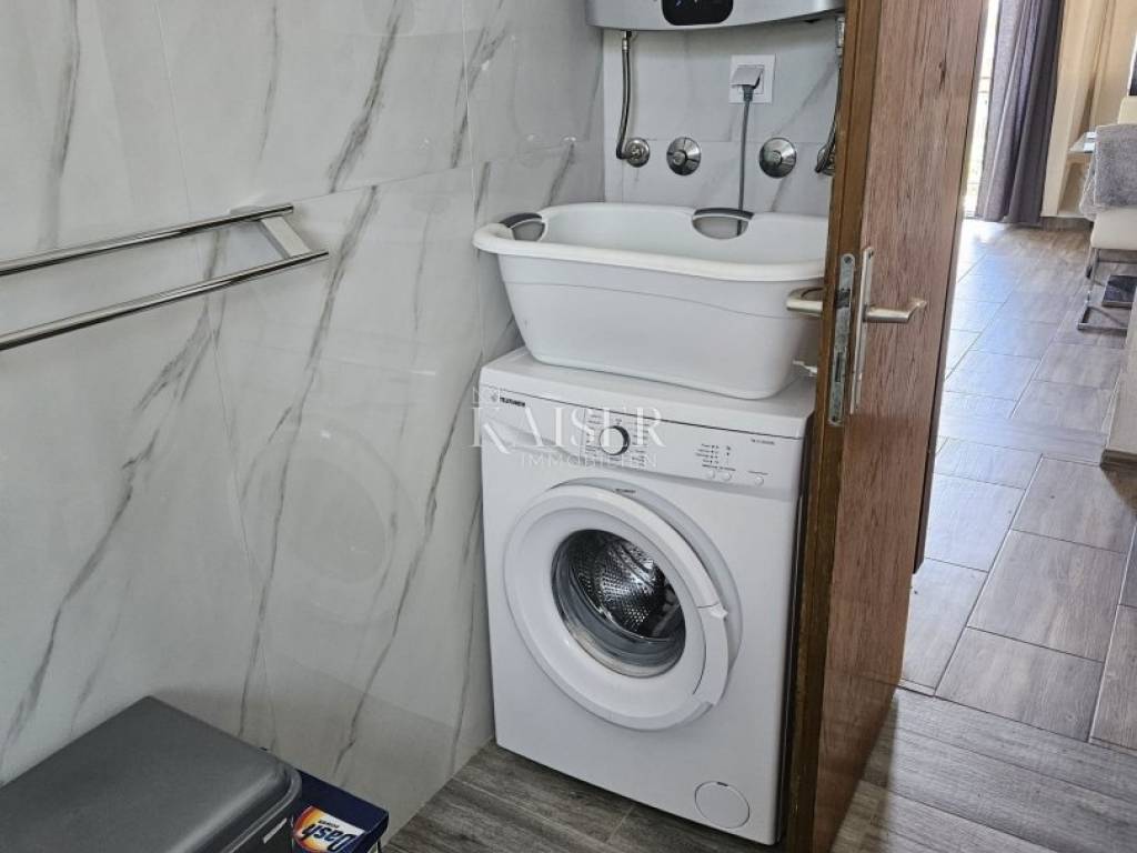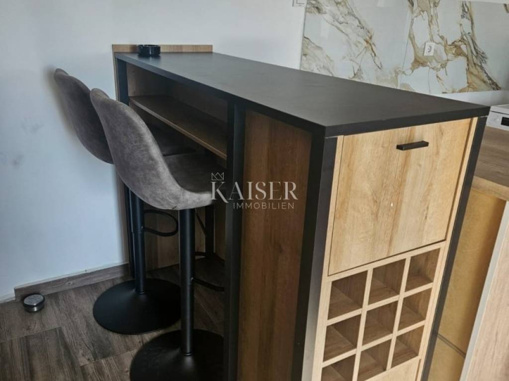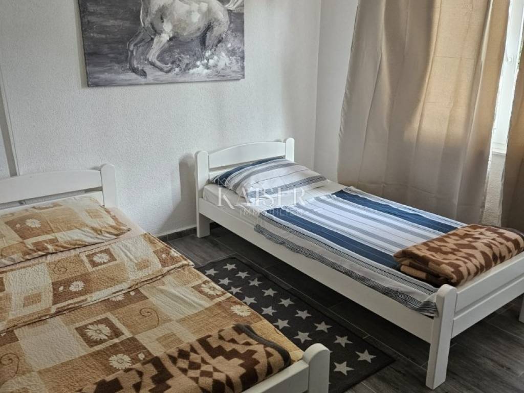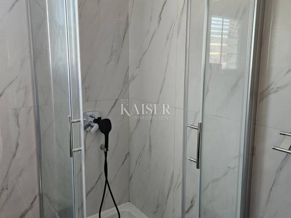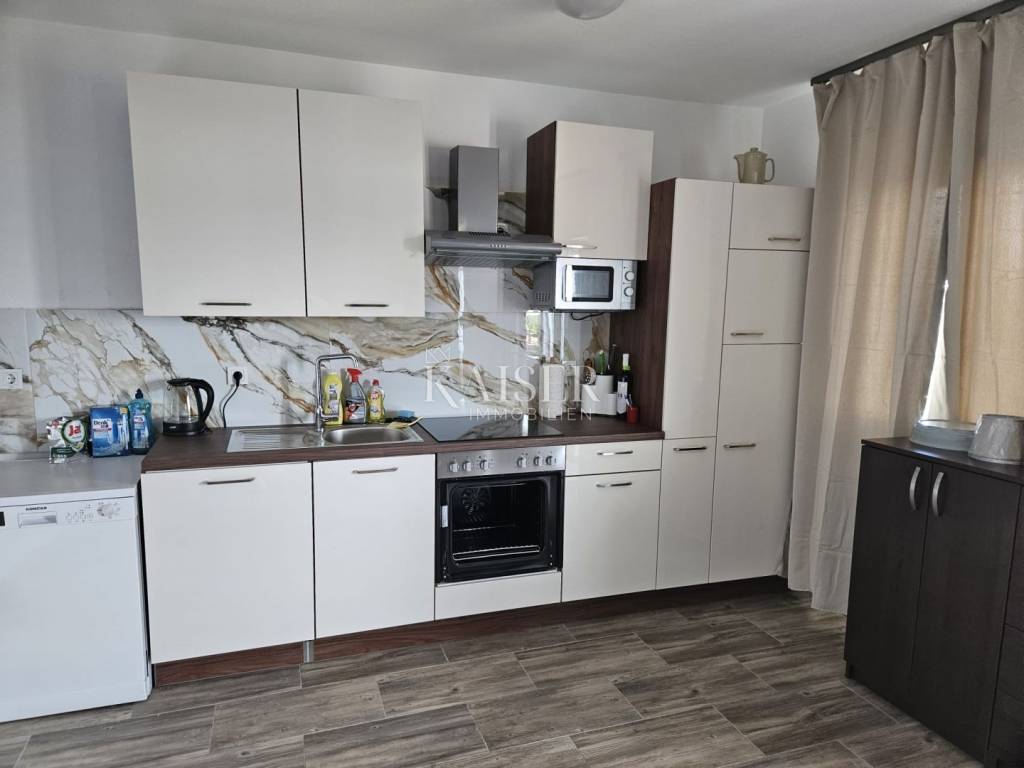 Kaiser Immobilien presents a beautiful two-bedroom apartment for monthly rent for a minimum period of one year. The apartment is located in the near center of Novi Vinodolski in a quiet street and is located on the second floor of the house. The apartment has 90m2 and consists of two bedrooms, a living room with kitchen and dining room, bathroom, and balcony. The apartment was completely renovated in 2024 and has air conditioning heating and cooling. From September of this year, it will also have wood-fired central heating, which will connect the entire house and all apartments from a common boiler room. The apartment is still undergoing some modifications to the furniture. The apartment has been briefly used as a tourist rental until now. For any questions, please feel free to contact the agent: Davor Piškulić davor@kaiser-immobilien.hr +00 385 95 583 8240 WhatsApp, Viber