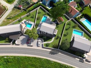 Kaiser Immobilien presents a new family house with a swimming pool under construction. The house is located not far from the small Istrian autochthonous town of Sveti Lovreč, only 14 km from the city of Poreč. The house is sold fully furnished, the house has a private yard, swimming pool and 2 parking spaces. It consists of ground and first floor. Within the house there will be 3 rooms with their 3 bathrooms, and other home facilities. If you also want this beautiful new property to become your new home, contact your agent