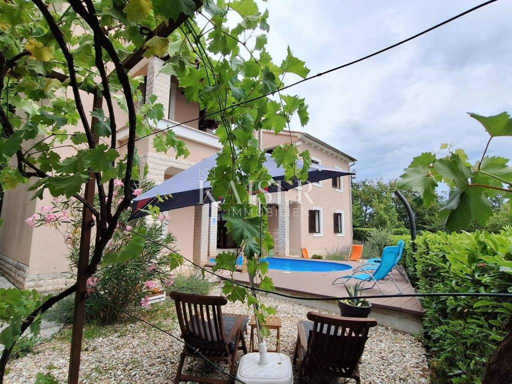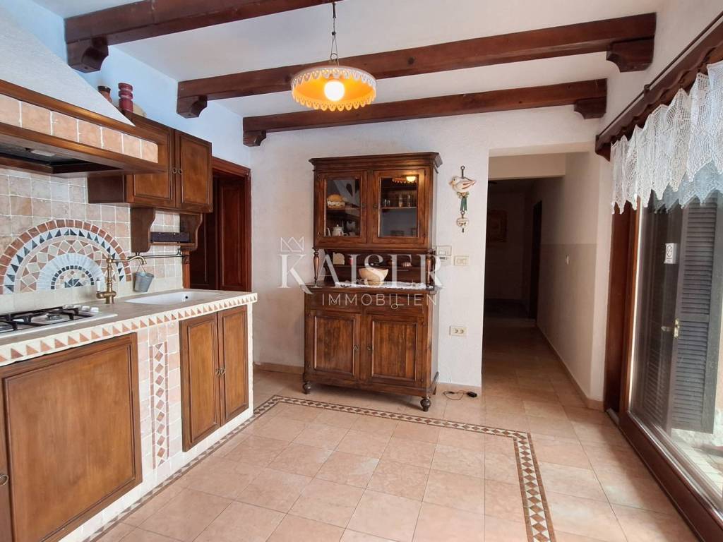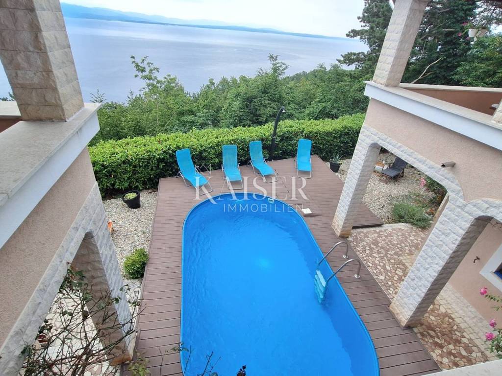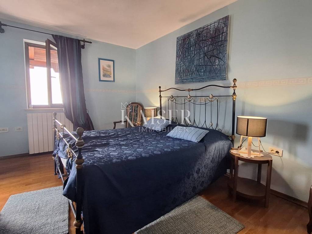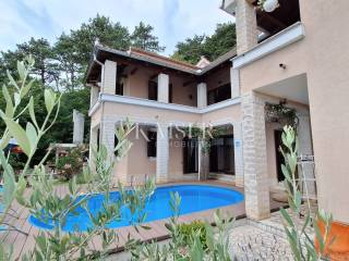 Kaiser-immobilie presents a family house near Opatija, in the town of Veprinac, with a beautiful view of the Kvarner Bay and the islands. The house consists of a ground floor and an upper floor. The ground floor has: 2 bedrooms, a kitchen with a dining room, 2 bathrooms, a Finnish sauna and a recreation room. The upper floor has 3 bedrooms, two bathrooms, a kitchen, a dining room with a living room and an exit to the terrace with a beautiful view of the sea and Rijeka with the islands. The heating of the building is central, using oil, on the ground floor there is a good and beautiful wood-burning stove, and in the living room on the upper floor there is an air conditioner for heating and cooling. From the dining room on the ground floor we exit to the garden where there is a swimming pool with an outdoor shower and a gazebo with a barbecue, surrounded by greenery and lavender, which is surrounded by plants of the Mediterranean climate. The house has 2 parking spaces. It is offered fully furnished. It is characterized by good and fast connections to Rijeka, and a pleasantly and functionally furnished interior of the house, as well as a lot of greenery and ornamental plants in the garden. Distance from cities: Opatija 15 minutes, Matulji 10 minutes, Rijeka 20 minutes, Zagreb 1h 40 minutes, Krk airport 40 minutes, Trieste 1h 30 min, Vienna 4h 30 min, Berlin 11 h, approximately drive by car. For viewing and information, call 0916133776 agent Eli Lovko. The agency fee is 3% + VAT and is paid upon the first money transaction.