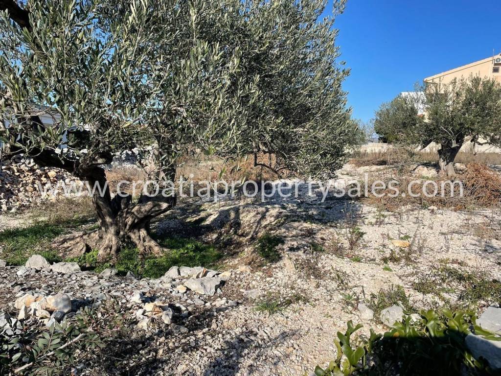 Veliko građevinsko zemljište nekoliko minuta hoda do mora u mirnom selu nedaleko od Rogoznice.Zemljište ima pristup cestom i komunalne priključke u blizini.Zemljište se sastoji od 5 parcela koje se mogu prenamijeniti u 1 ili 2 ovisno o potrebama graditelja.